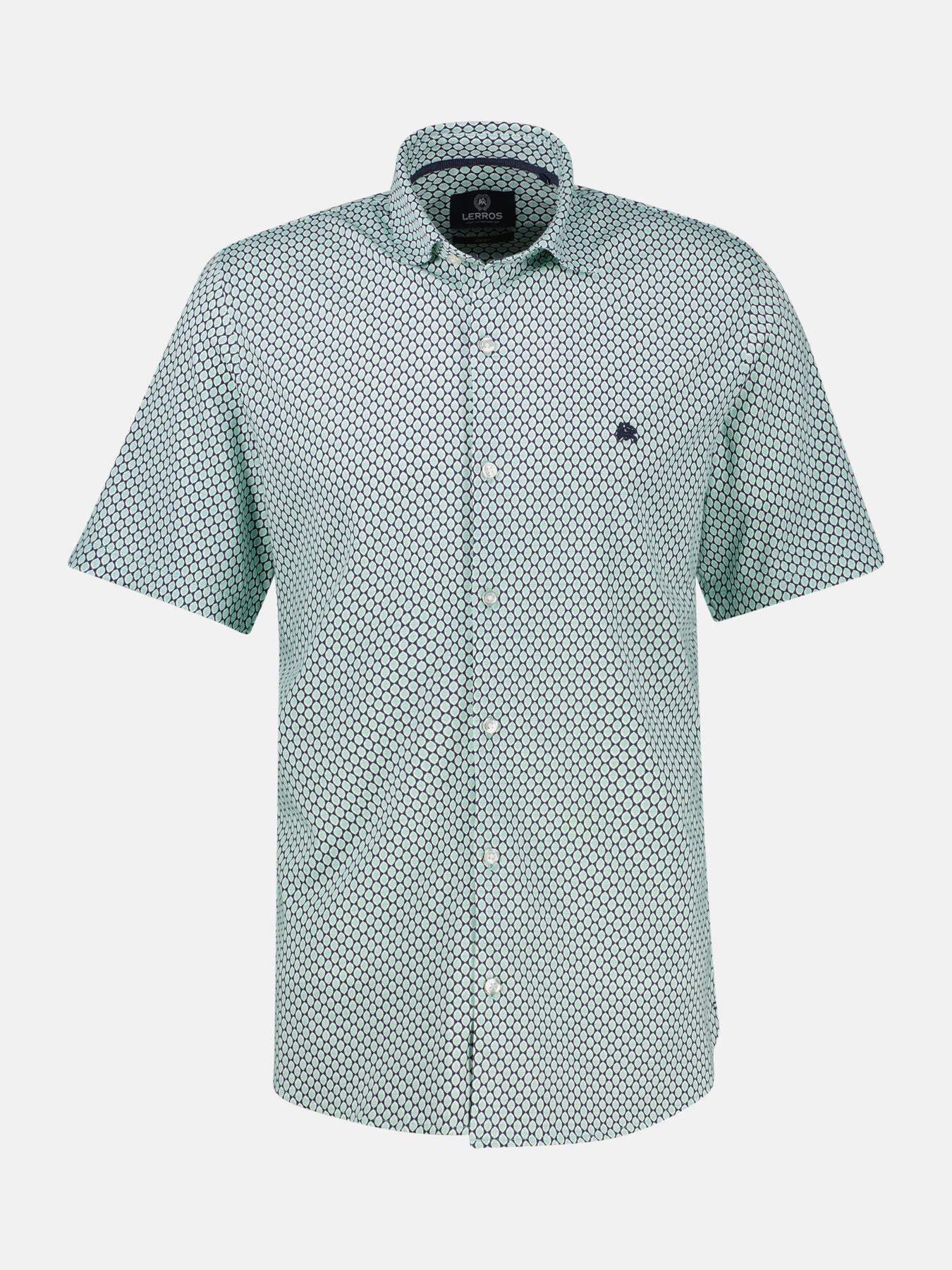 Halbarm-Hemd mit Minimalprint, grosse Größen von 3XL bis 6XL. Das LERROS Kurzarmhemd aus 100 % Baumwolle mit All-over-Print steht für Stil und Komfort. Ein Kurrarmhemd mit geometrischem Muster, das Frische und urbanen Lifestyle vereint. Das LERROS-Logo auf der Brust unterstreicht den hochwertigen Charakter. 100% Baumwolle in Jersey-Qualität garantiert höchsten Tragekomfort. Ein LERROS Halbarmhemd, das zu Chinos und Loungepants kombinierbar ist und den Look für den Sommer perfekt abrundet.
