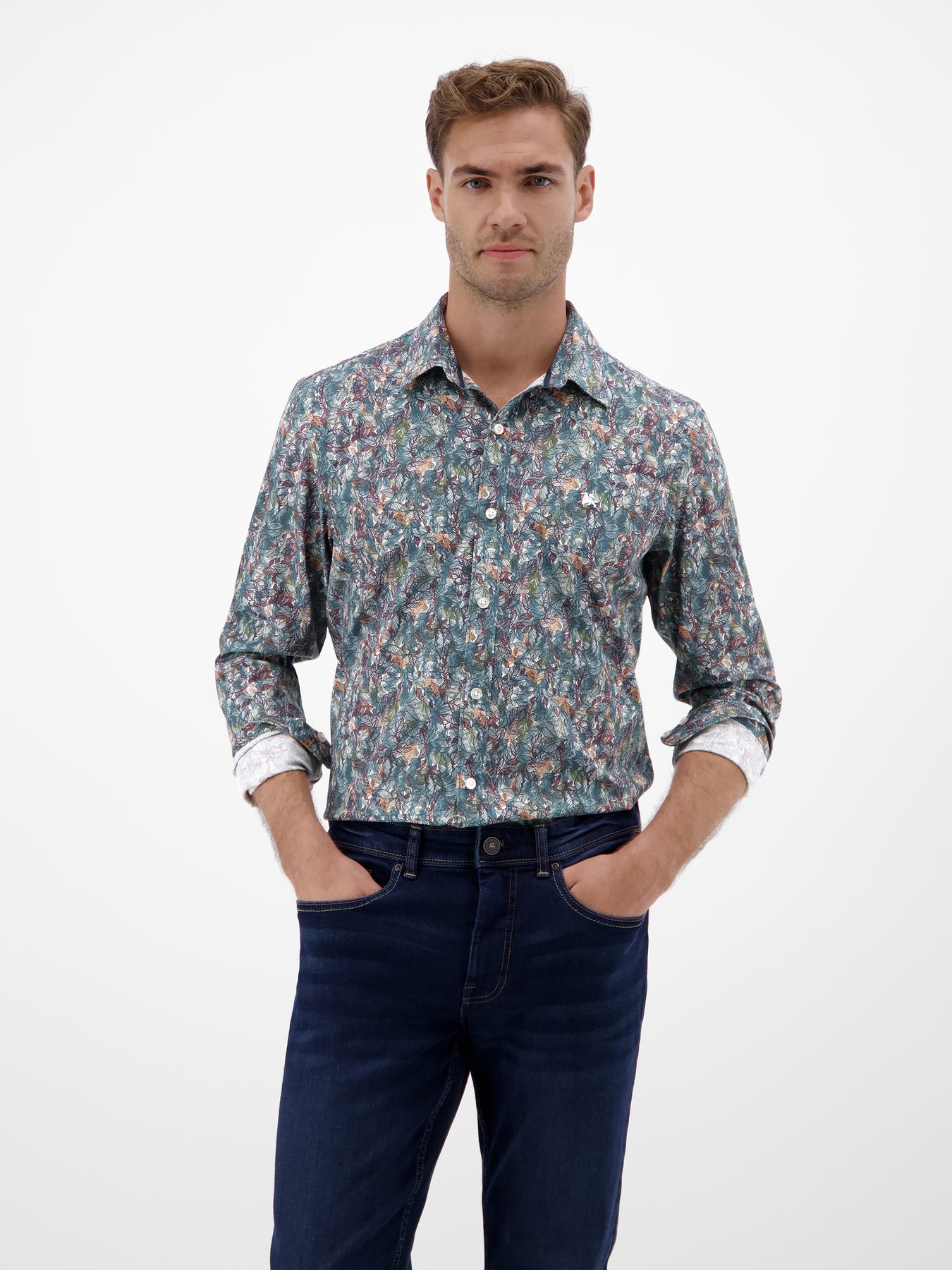 Der hochwertige Baumwollstoff mit Stretchanteil sorgt für ein angenehmes Tragegefühl und bleibt gleichzeitig formstabil - ideal für den Alltag wie auch besondere Anlässe. Das grafische Design dieses LERROS Herrenhemds zieht die Blicke auf sich, ohne zu überladen - perfekt für den stilbewussten Mann, der Wert auf Individualität legt. Der klassische Kent-Kragen unterstreicht die zeitlose Eleganz und bietet vielseitige Kombinationsmöglichkeiten - ob unter einem Blazer oder solo getragen.Pflege: