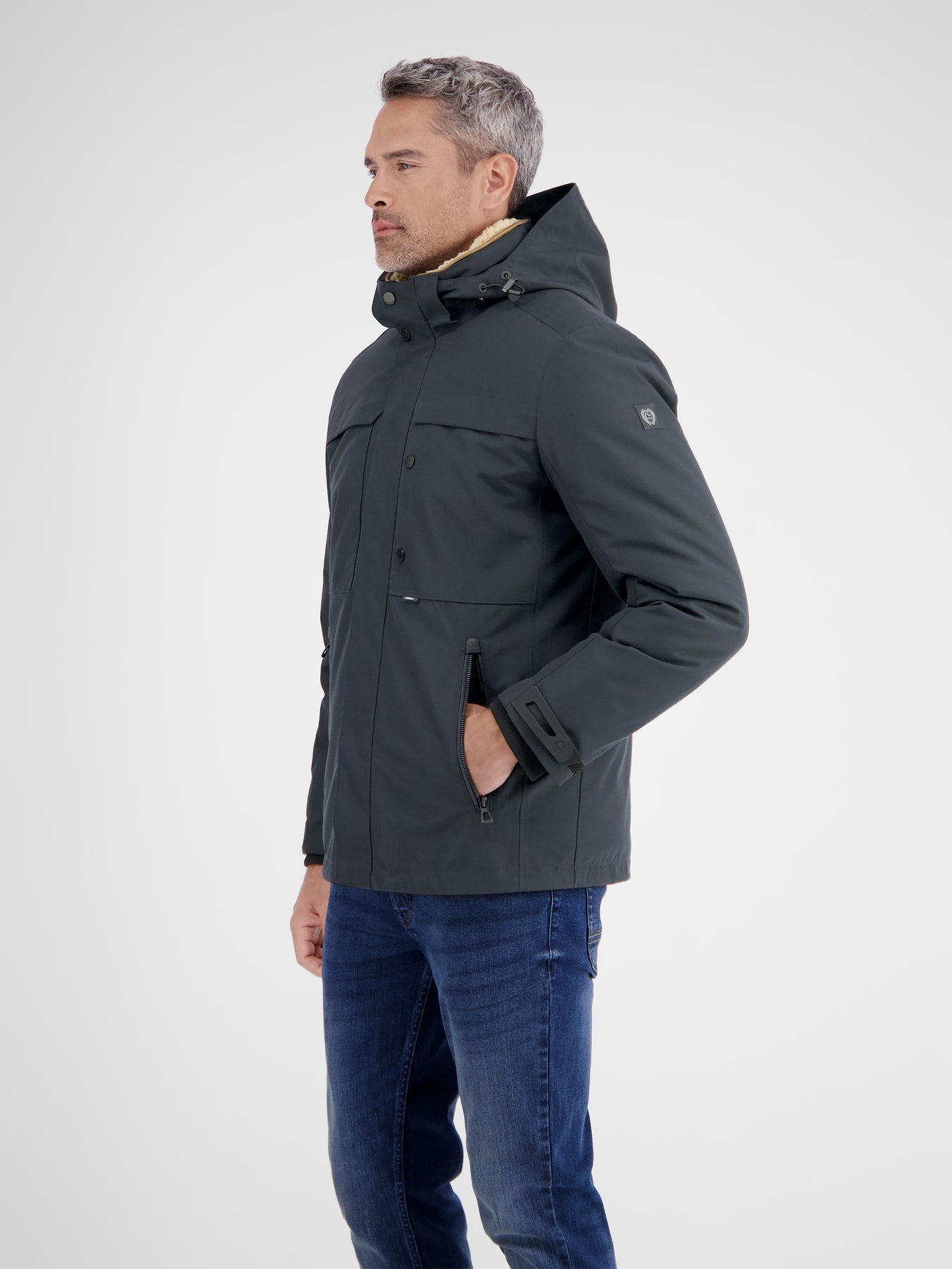 Die hochwertige Herrenjacke liefert nicht nur Stil, sondern bietet auch praktische Funktionen, die bei jedem Wetter unterstützen. Die Atmungskaktivität sorgt für ein angenehmes Tragegefühl, ohne ins Schwitzen zu geraten. Die wind- und wasserabweisenden Eigenschaften halten trocken und geschützt. Das wärmende Taschenfutter sorgt ebenso für den allgemeinen Tragekomfort, wie die großen Tascheneingriffe und die abnehmbare Kapuze dieser hochwertig verarbeiteten LERROS Jacke. Die wärmende Innenjacke ist herausnehmbar und so kann diese Jacke das ganze Jahr getragen werden.