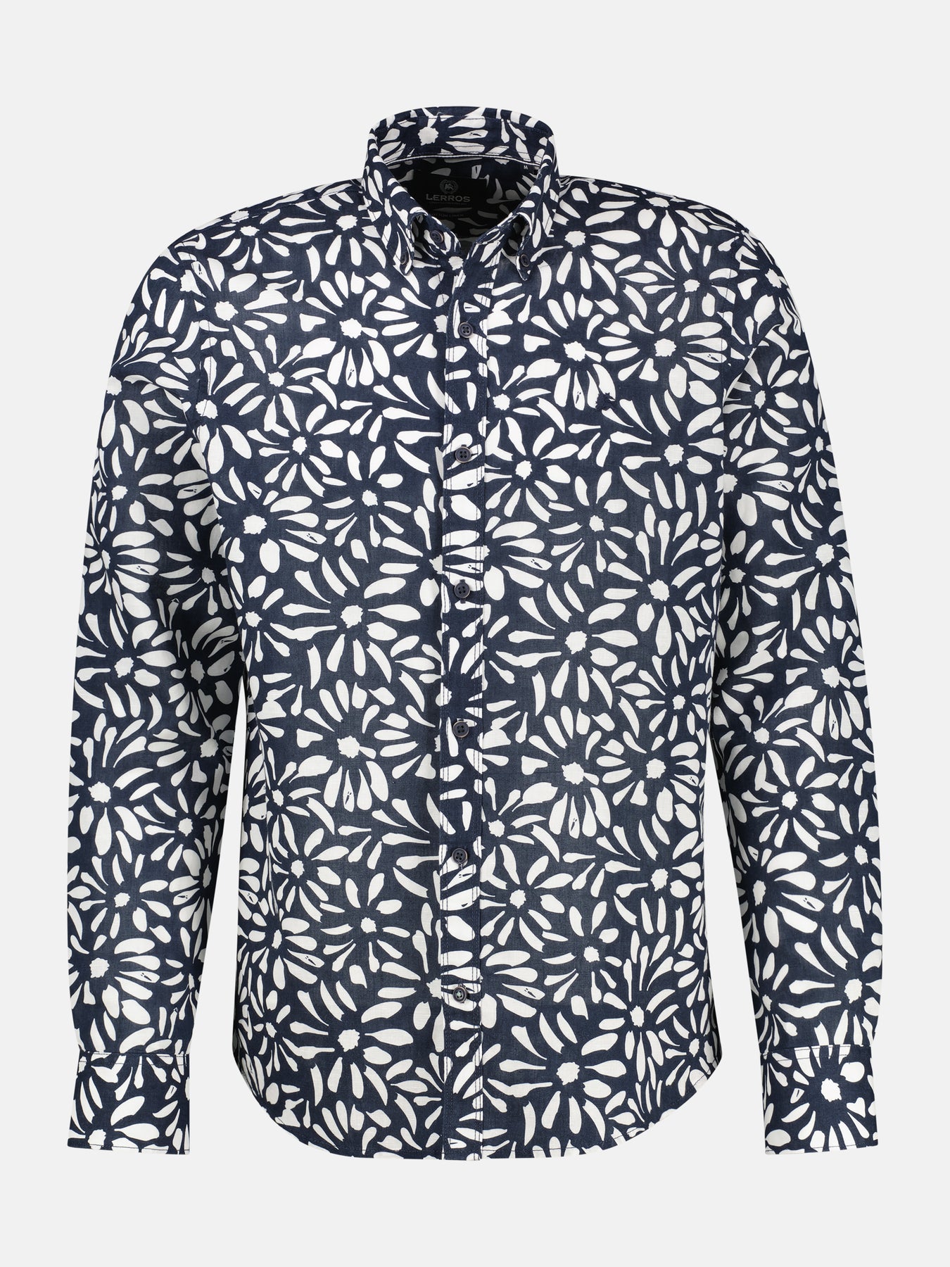 Langarmhemd mit floralem Print in großen Größen aus Leinen-Baumwoll-Mischgewebe. Das komfortable und expressive LERROS Herrenhemd in den Größen 3XL bis 6XL mit floralem All-over-Print vereint ein frisches, sommerliches Design mit moderner Farbgebung. Das atmungsaktive, hautfreundliche Mischgewebe liegt angenehm auf der Haut. Dieses LERROS Herrenhemd mit langen Ärmeln, 2-Knopf-Manschetten und sportivem Button-down-Kragen ist vielseitig zu LERROS Baxter Jeans und Chino kombinierbar.Pflege: