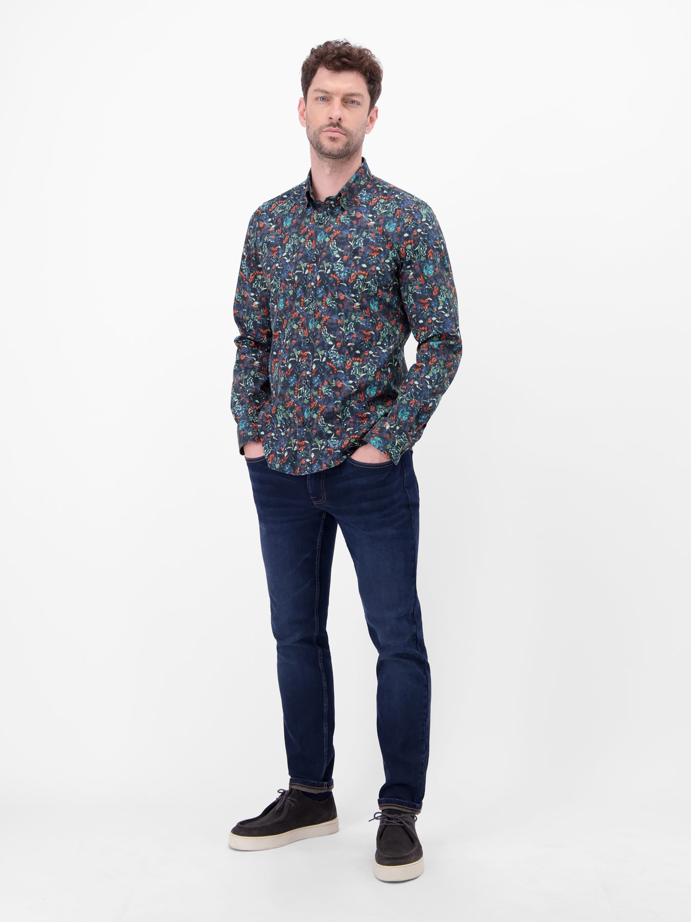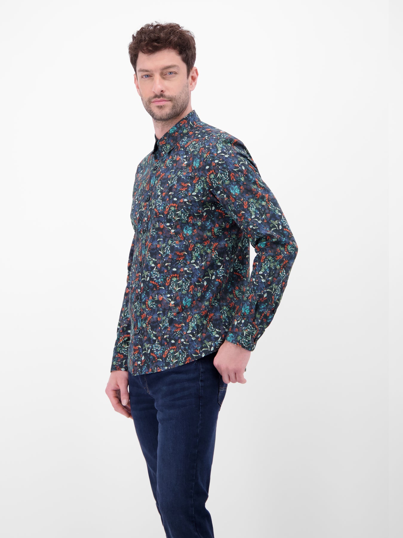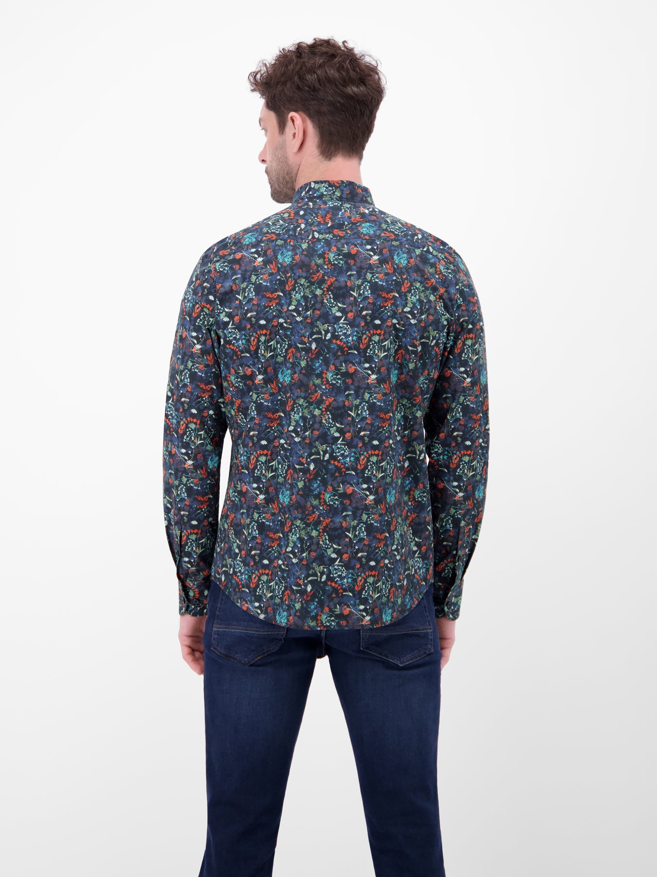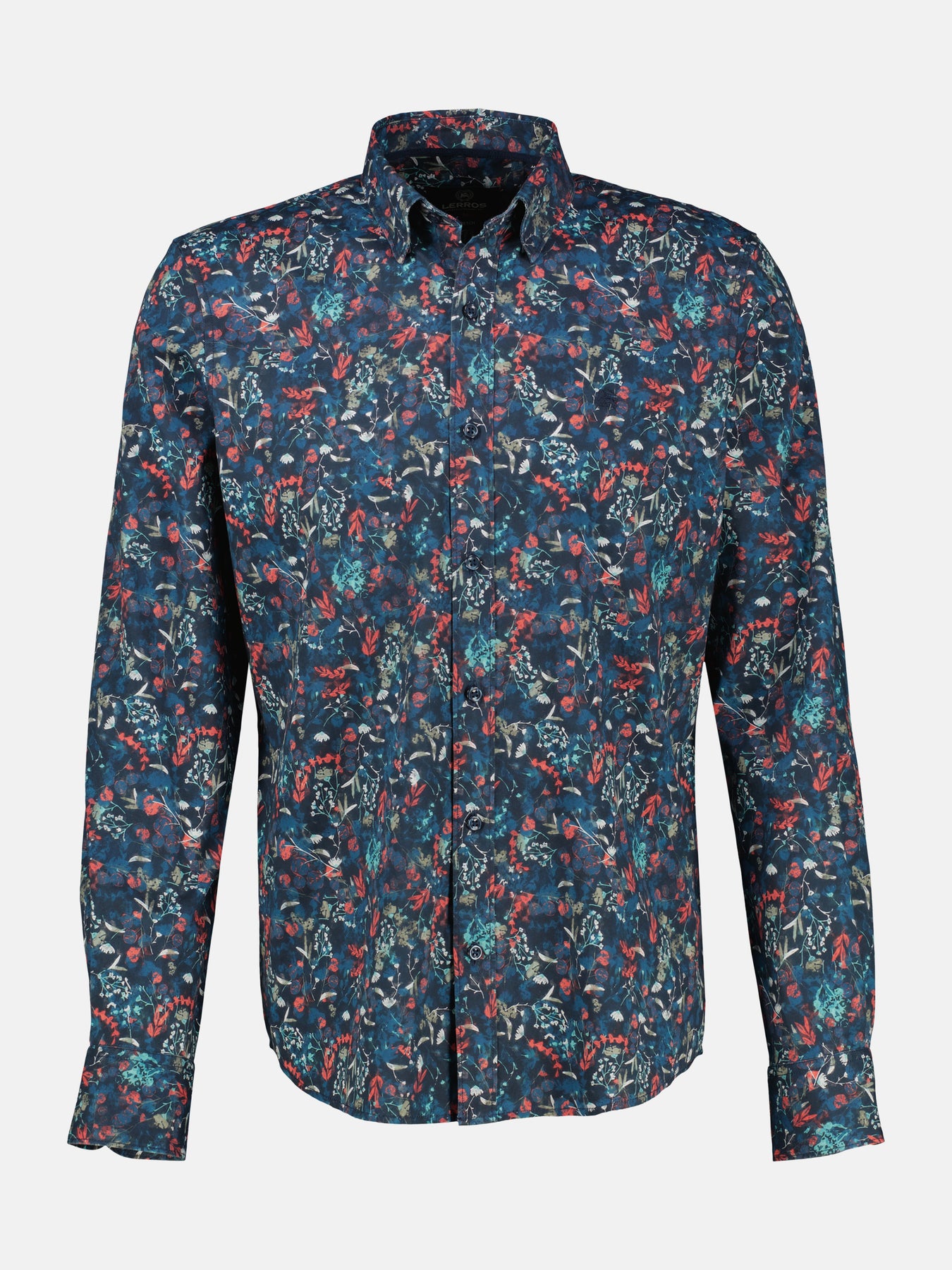 Langarmhemd mit floralem Printmuster und praktischer 2-Knopf-Manschette. Hochwertig verarbeitetes Langarmhemd aus einem flexiblen, weichen Materialmix für höchsten Tragekomfort. Die normale Passform und der sportliche Button-down-Kragen sorgen für einen dynamischen Look der gesamten Garderobe im Alltag und der Freizeit. Das Hemd für Herren mit floralem Alloverprint und gesticktem LERROS Logo auf der Brust ist ein Must-have in jedem KleiderschrankPflege: