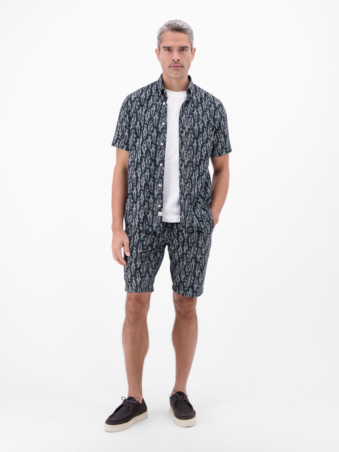 Leichte Chino-Bermuda mit marinem Print
