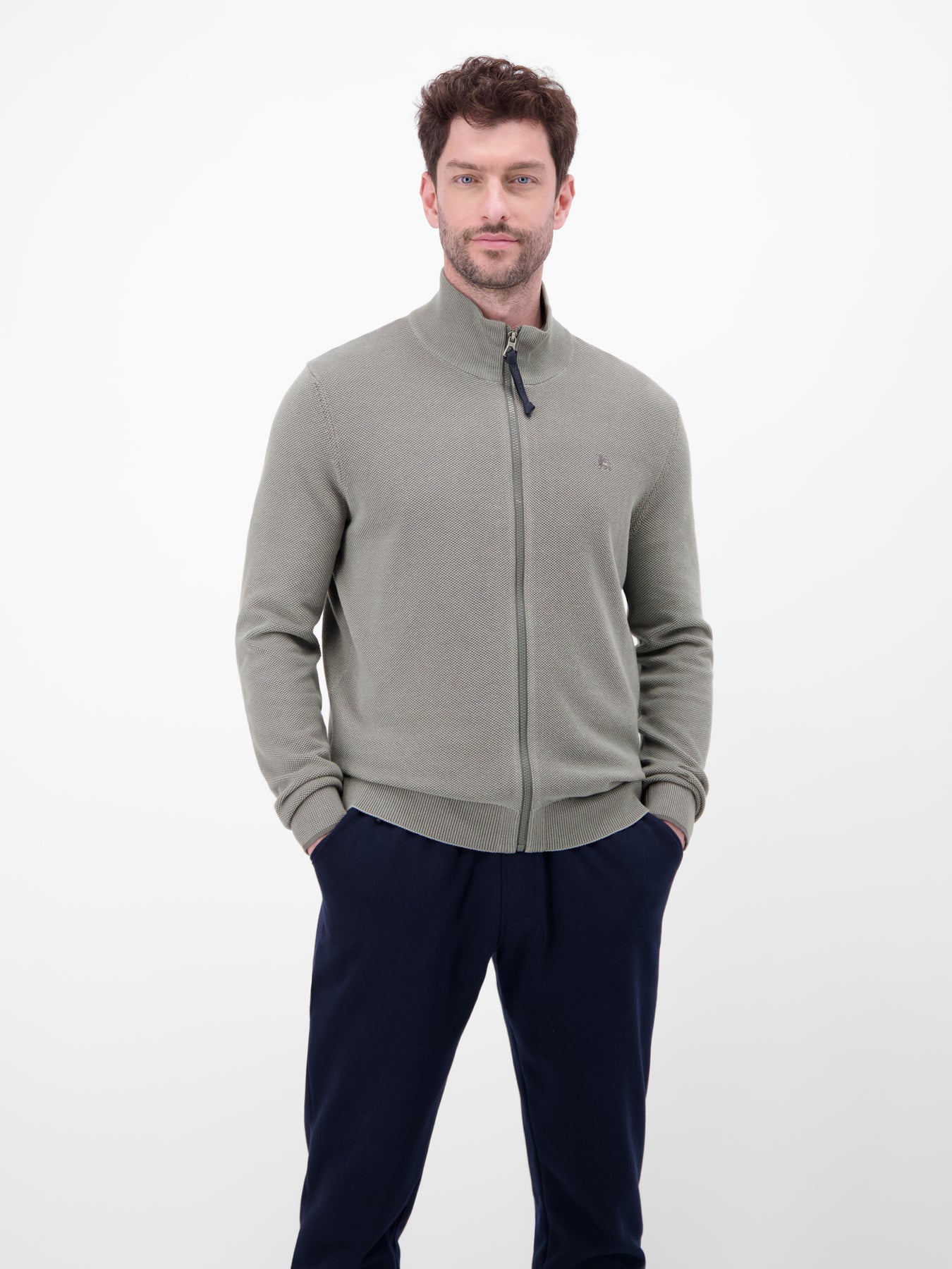 Strickjacke mit Stehkragen in 2-Tone-Optik und durchgehendem Reißverschluss. Sweatshirtjacke in Strukturqualität und REGULAR FIT Passform punktet mit viel Komfort und einem klassischen Stil. Diese Strickjacke in 2-Tone-Optik mit hohem Stehkragen ist in Grau und Blau erhältlich und lässt sich vielseitig als Layer zu einem T-Shirt oder Sweatshirt kombinieren. Ob als Strickjacke für die Freizeit oder als weiche Übergangsjacke - dieses Oberteil aus 100% Baumwolle passt zu einer Reihe von Outfits.Pflege: