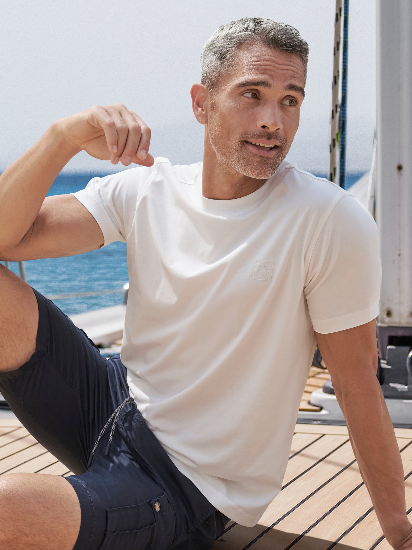 T-Shirt in Cool-&-Dry-Qualität aus atmungsaktivem Baumwollmix in feinster Strukturqualität für höchsten Tragekomfort. Das LERROS T-Shirt ist ein vielseitiges und funktionales Basic-Oberteil für jeden Tag sowie für Sport und Freizeit. Der feuchtigkeitsregulierende Cool & Dry-Effekt beugt Transpiration vor. Das T-Shirt mit LERROS-Logo auf der Brust kann solo oder als Layer unter dem Hemd oder Sweatshirt getragen werden egal, ob zur Jeans, Chino oder Bermuda.Pflege: