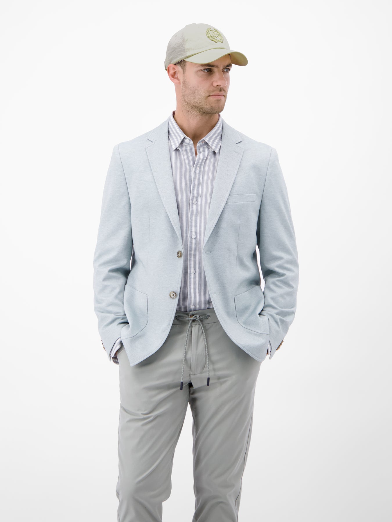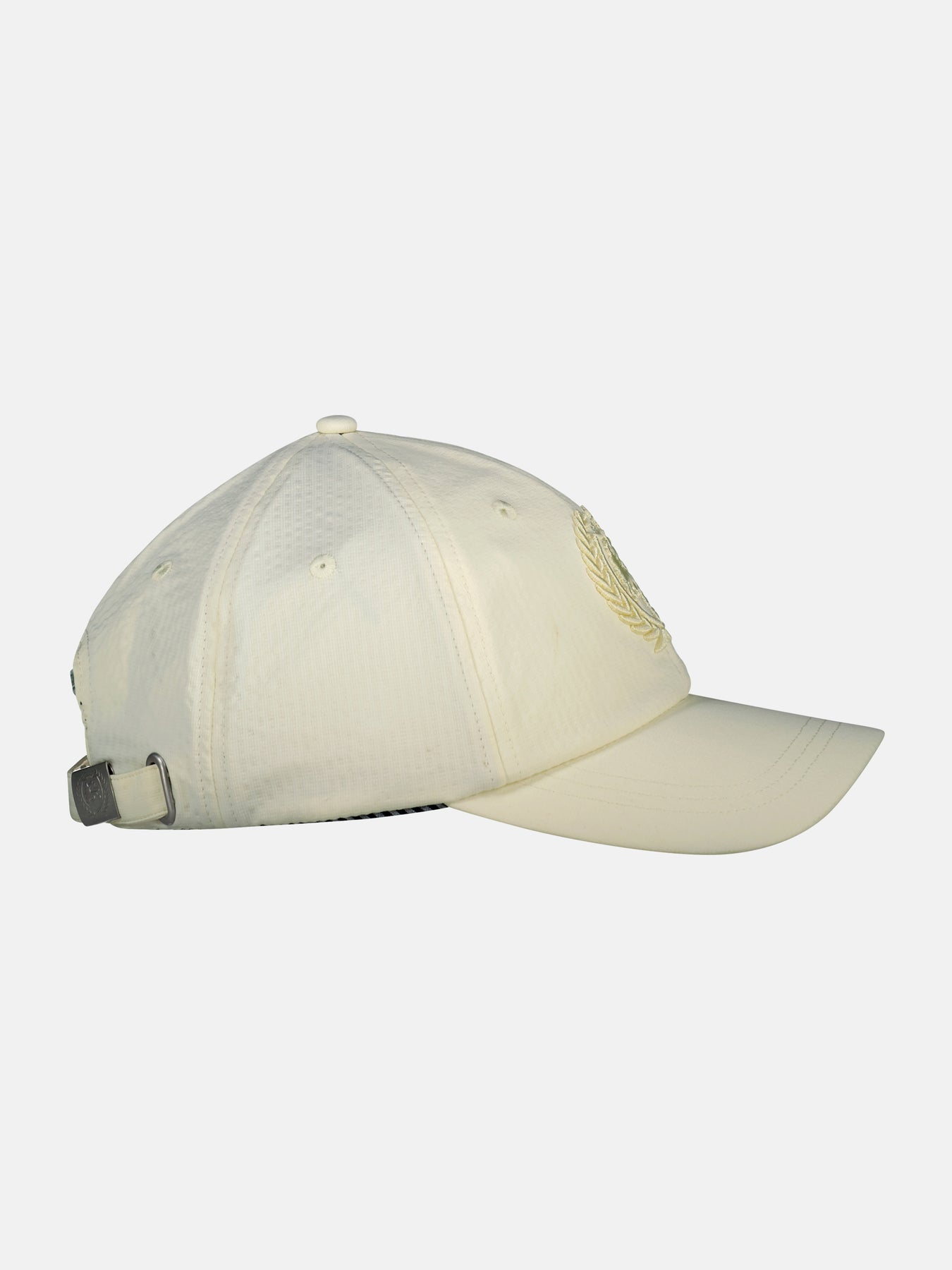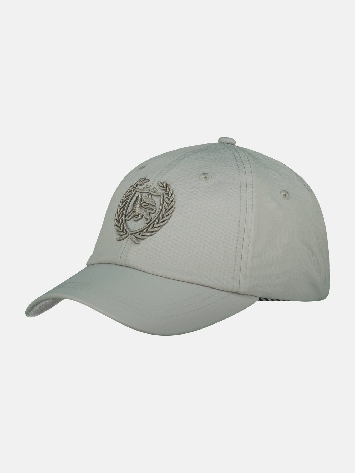 Solid-color LERROS baseball cap made of seersucker synthetic fabric. This men's cap stands out thanks to its robust and precise workmanship, triple-stitched brim, and soft cotton sweatband. A metal closure with an embossed LERROS logo ensures a flexible fit. Whether for sports, travel, or leisure, this seersucker baseball cap protects against the sun and adds a stylish accessory to any casual outfit. Its pleasantly lightweight feel makes it perfect for hot summer days.Care: