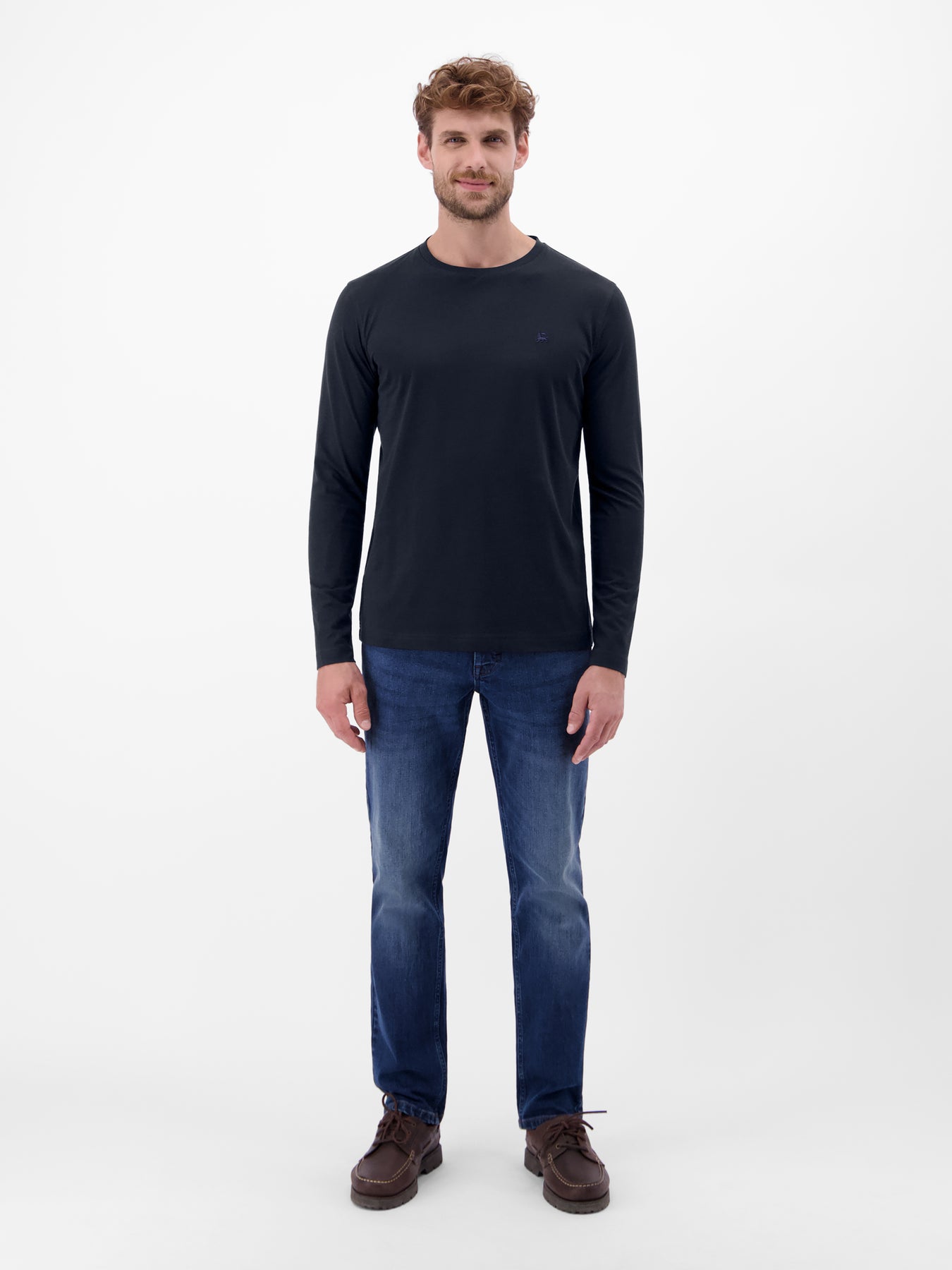 This plain-colored LERROS long-sleeved shirt impresses with its timeless design, regular fit, and classic round neckline. Crafted from high-quality single jersey, the long-sleeved shirt offers a soft and comfortable feel that feels wonderful against the skin. Whether in the office, during leisure activities, or during sporting activities, this long-sleeved shirt complements every lifestyle and always offers the highest level of comfort.Care: