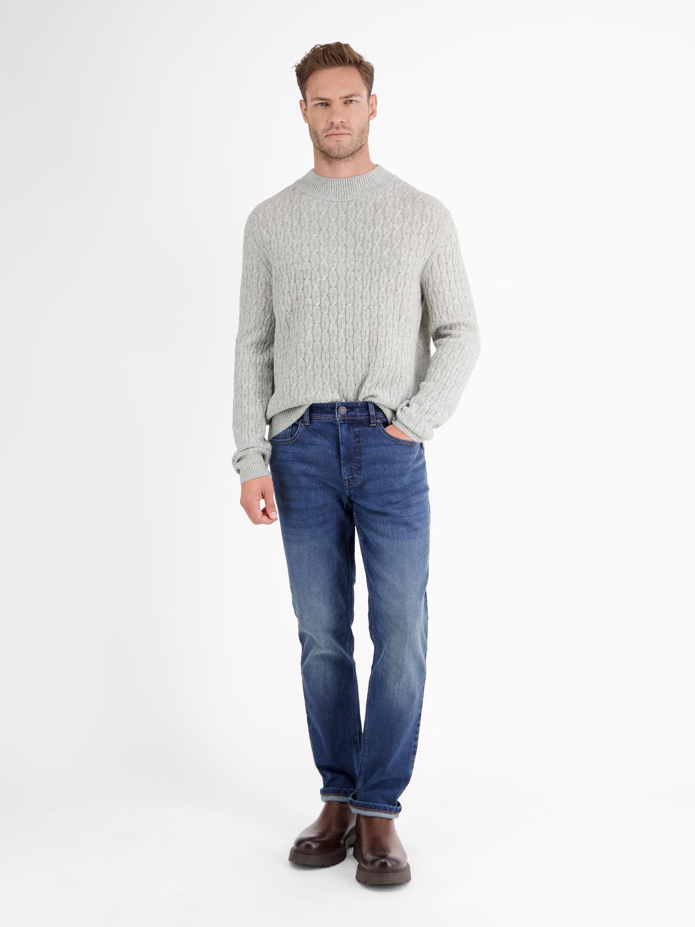 Sporty design meets high-quality virgin wool knitwear with cashmere content - this LERROS knitted sweater combines both properties in the best, most fashionable way. The long sleeves with ribbed cuffs and the ribbed turtleneck complete this knitted sweater and make it an essential part of a well-groomed, urban outfit.