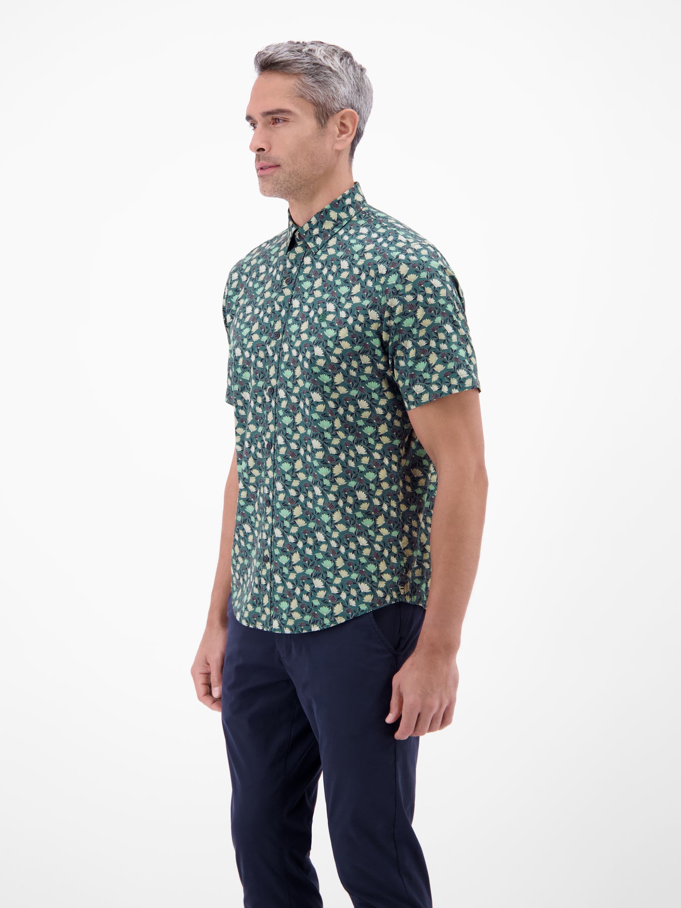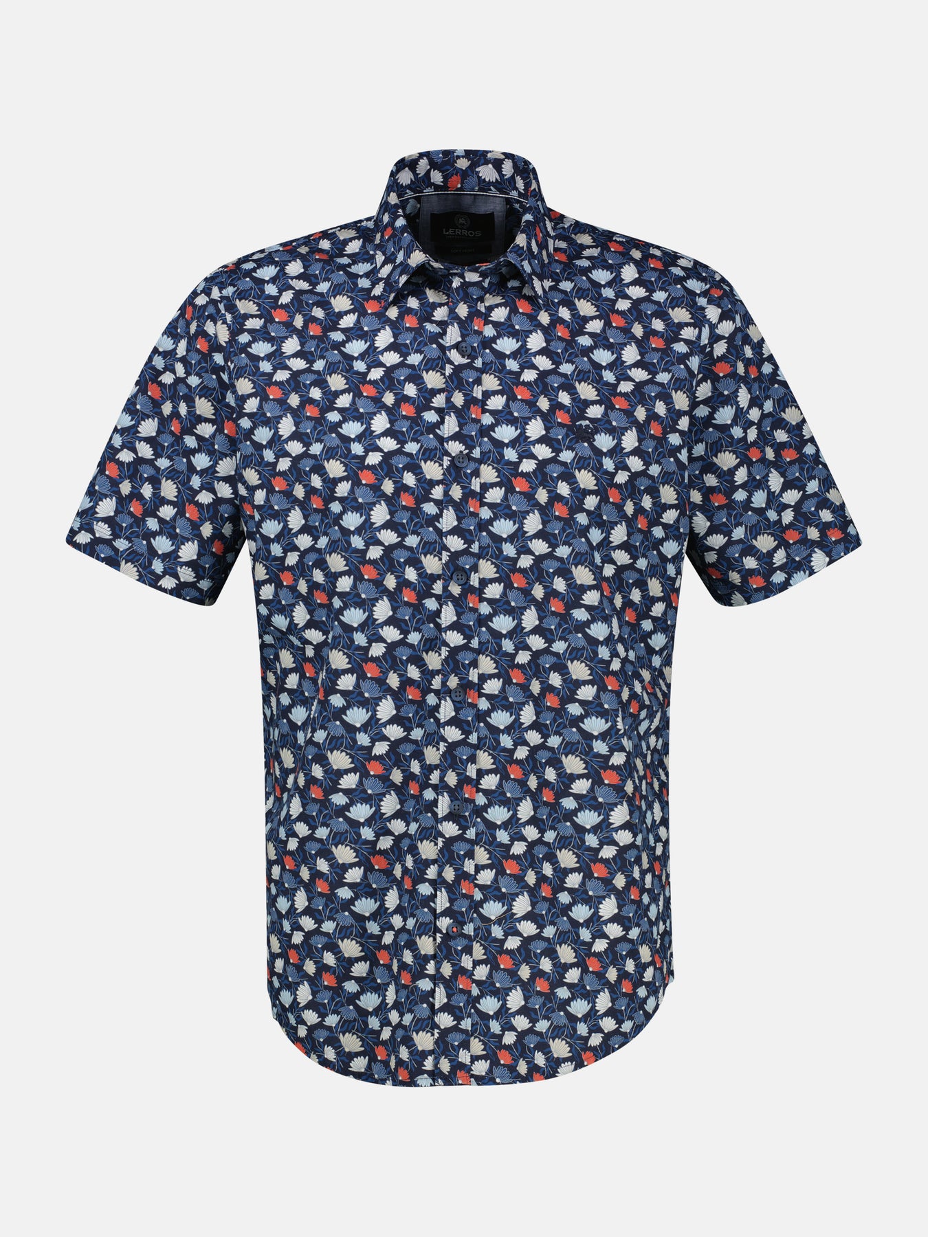 Floral bedrucktes Halbarmhemd, 100 % Baumwolle. Dieses 1/2 Hemd bietet luftigen Komfort an warmen Tagen. Der Kentkragen und der moderne All-over-Print sorgen für stilvolle Lässigkeit. Das LERROS Halbarmhemd ist vielseitig kombinierbar zu Shorts, Chinos oder Loungepants. Perfekt für Männer, die einen zeitlosen Sommerlook schätzen. Der leichte, luftige Stoff sorgt selbst bei Hitze für ein angenehmes Gefühl und rundet jedes Sommeroutfit gekonnt ab.Care: