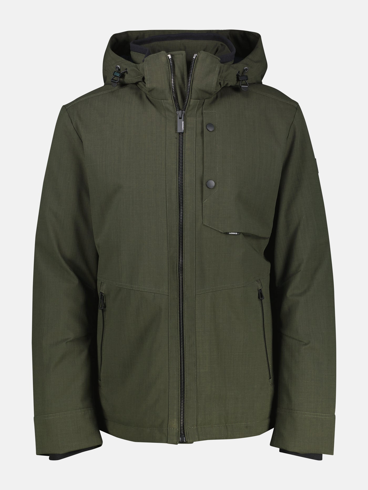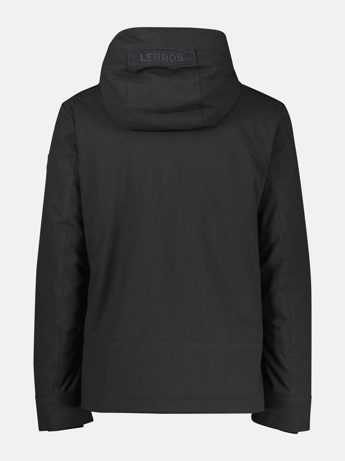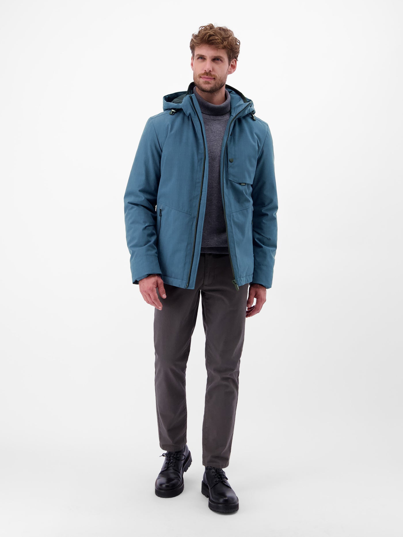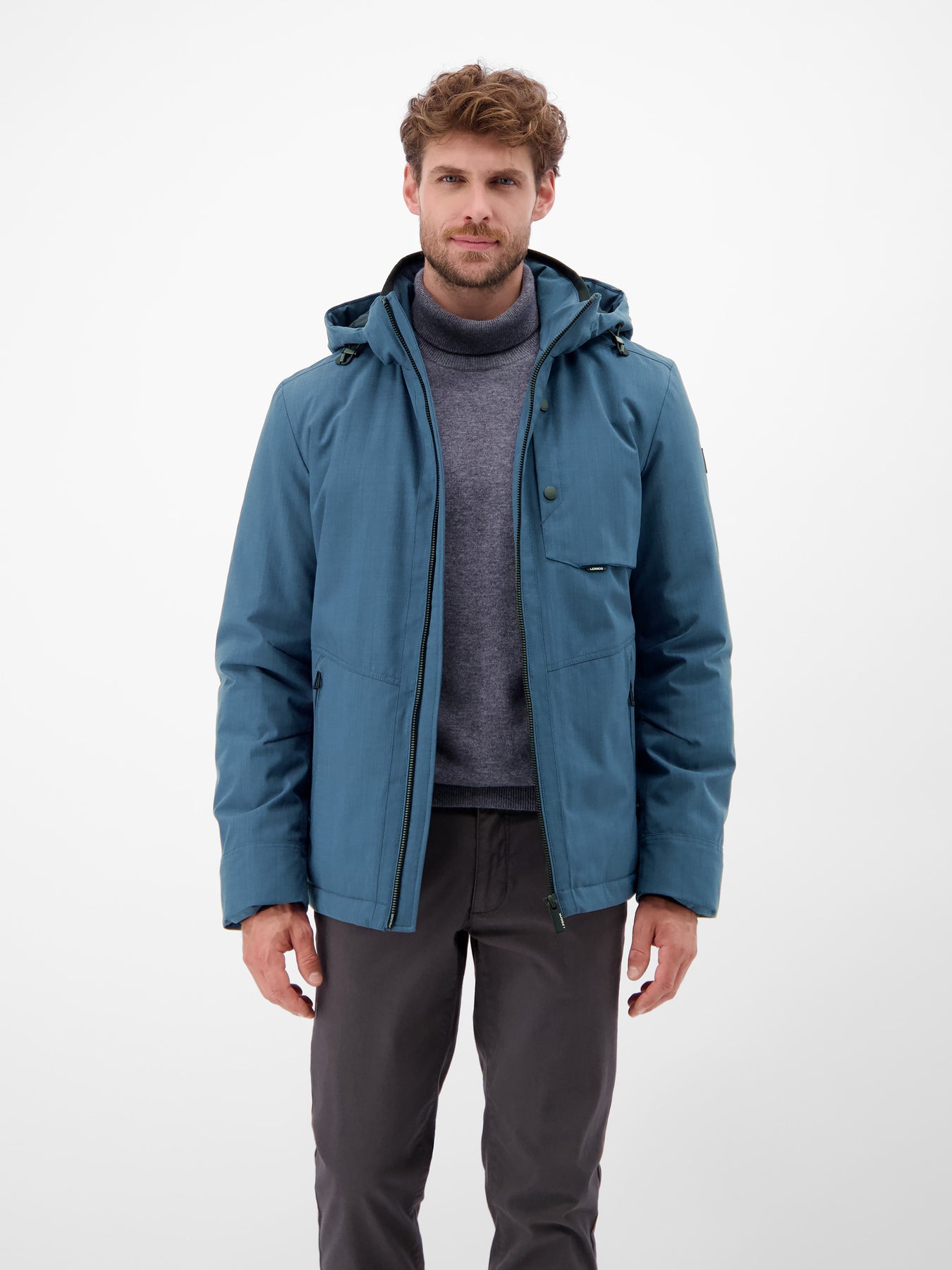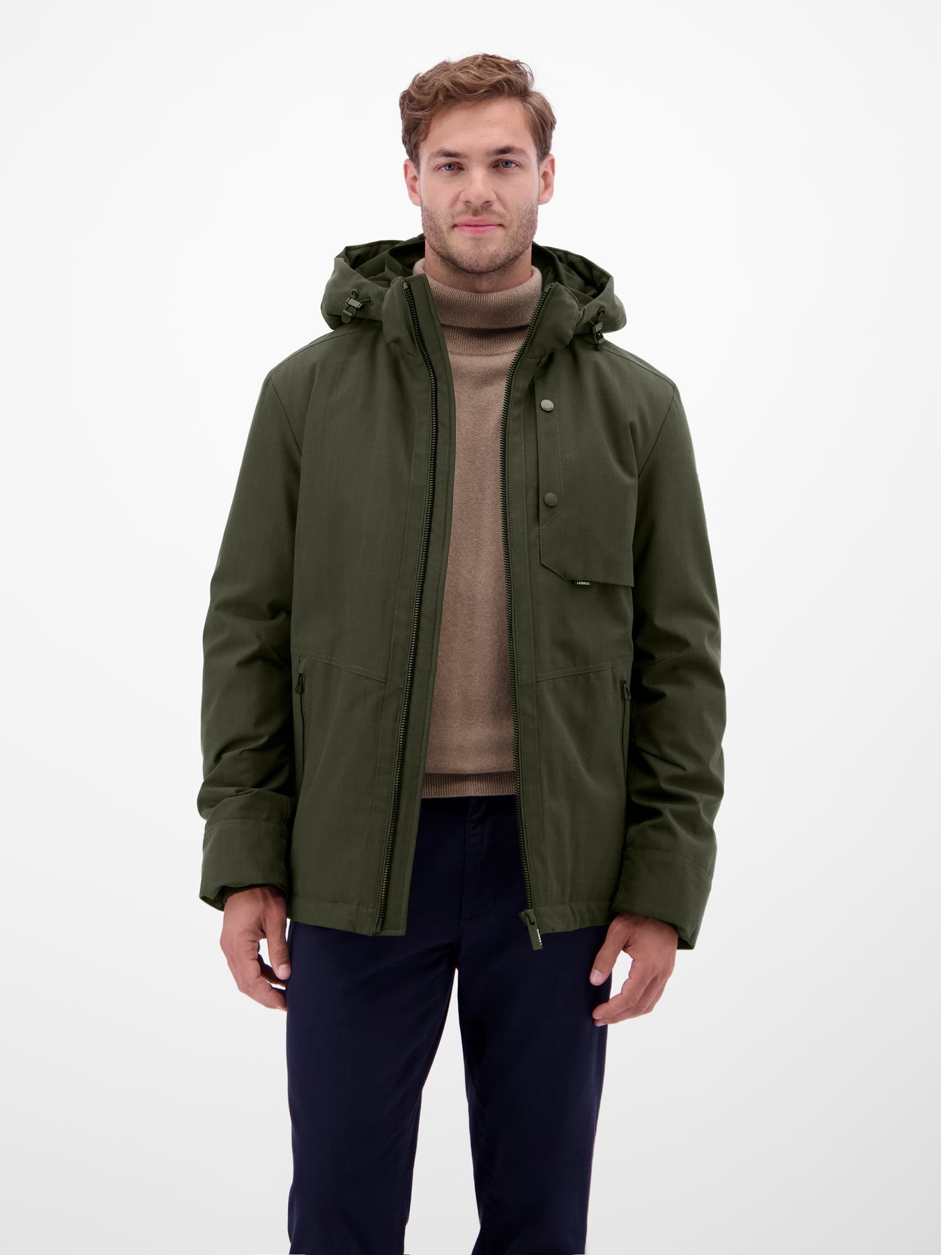 This men's blouson jacket with a detachable hood from LERROS impresses with its simple, sporty look. The water- and wind-resistant material leaves nothing to be desired in terms of comfort and wearability. The tonal details and the zippered hand pockets skillfully round out the design of this outdoor jacket.Pflege: