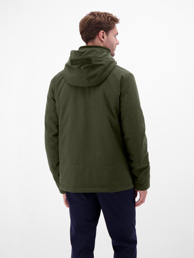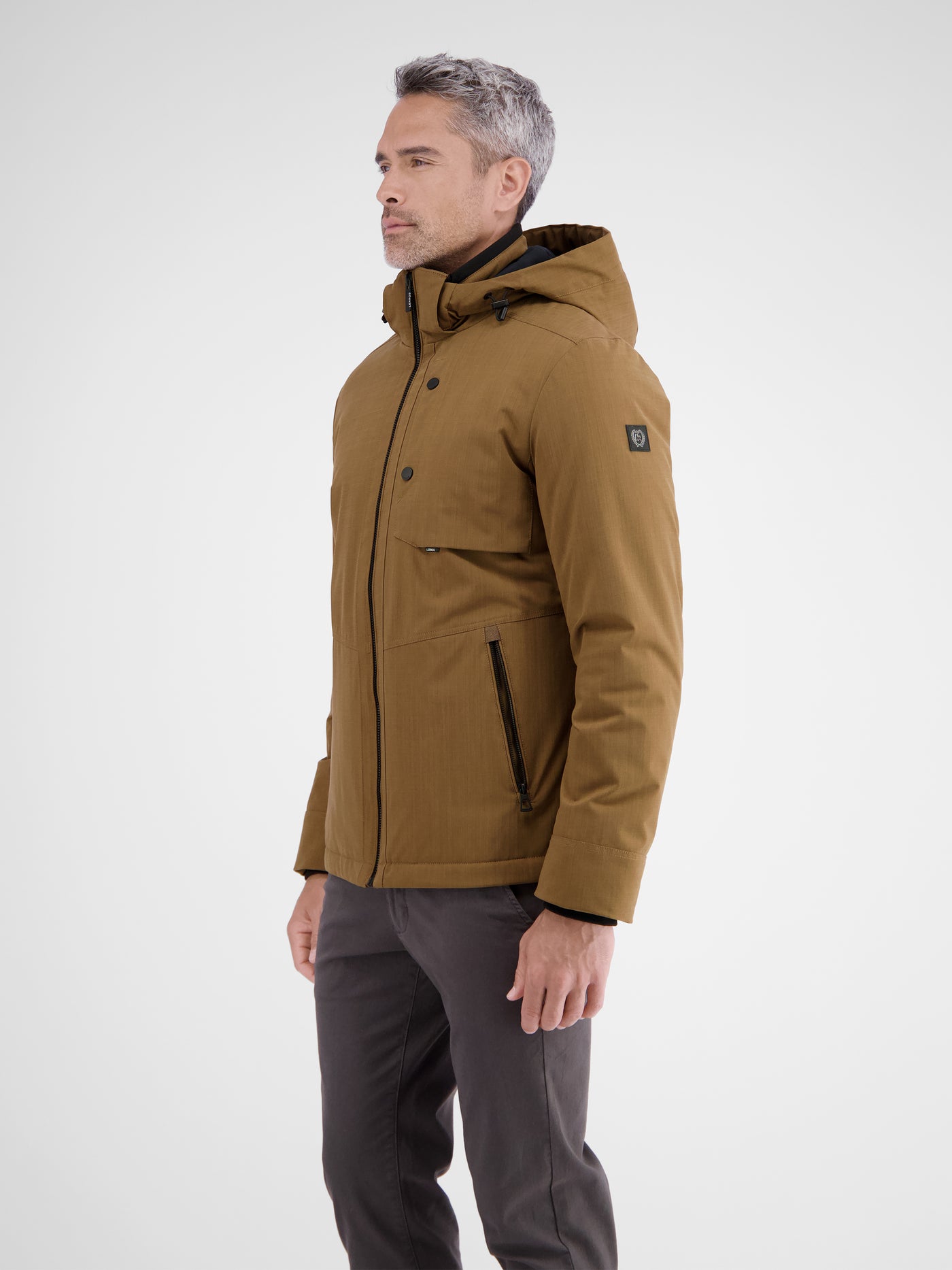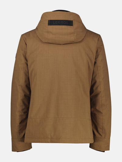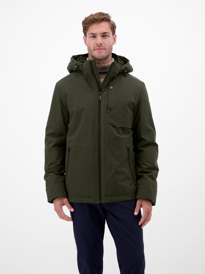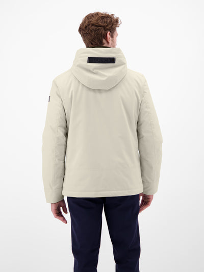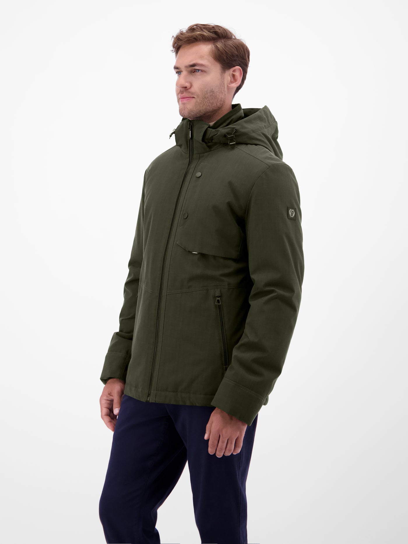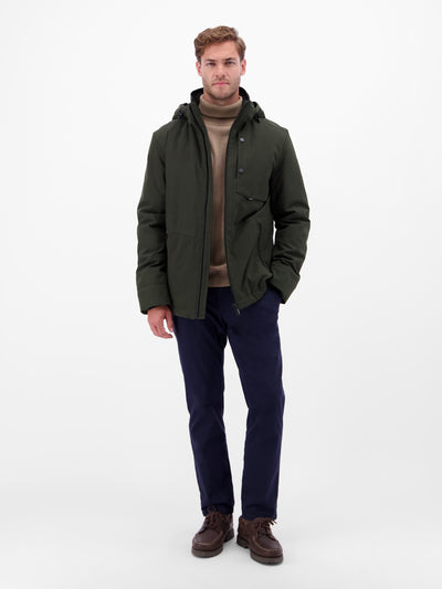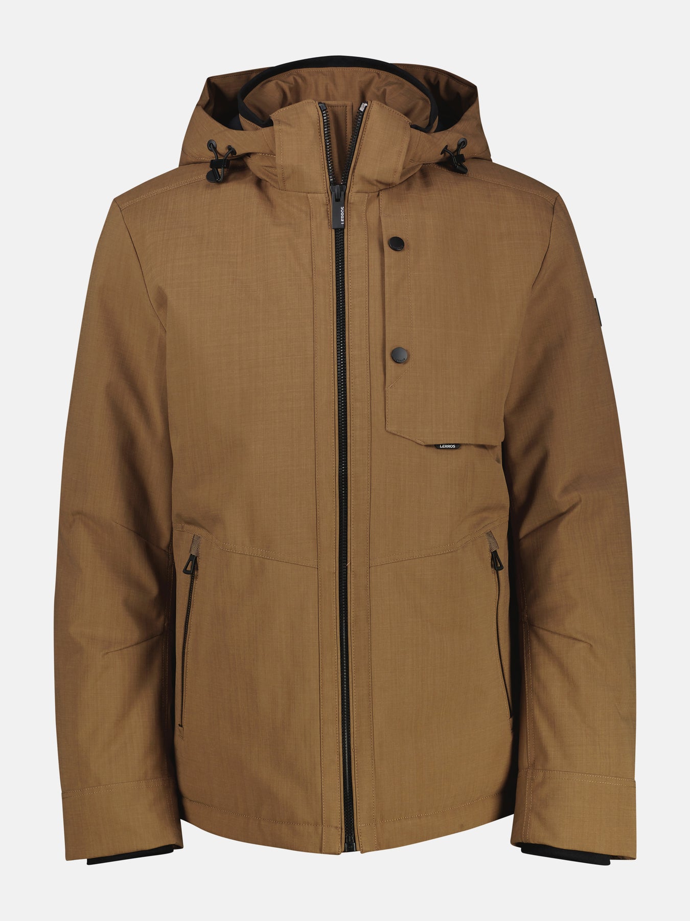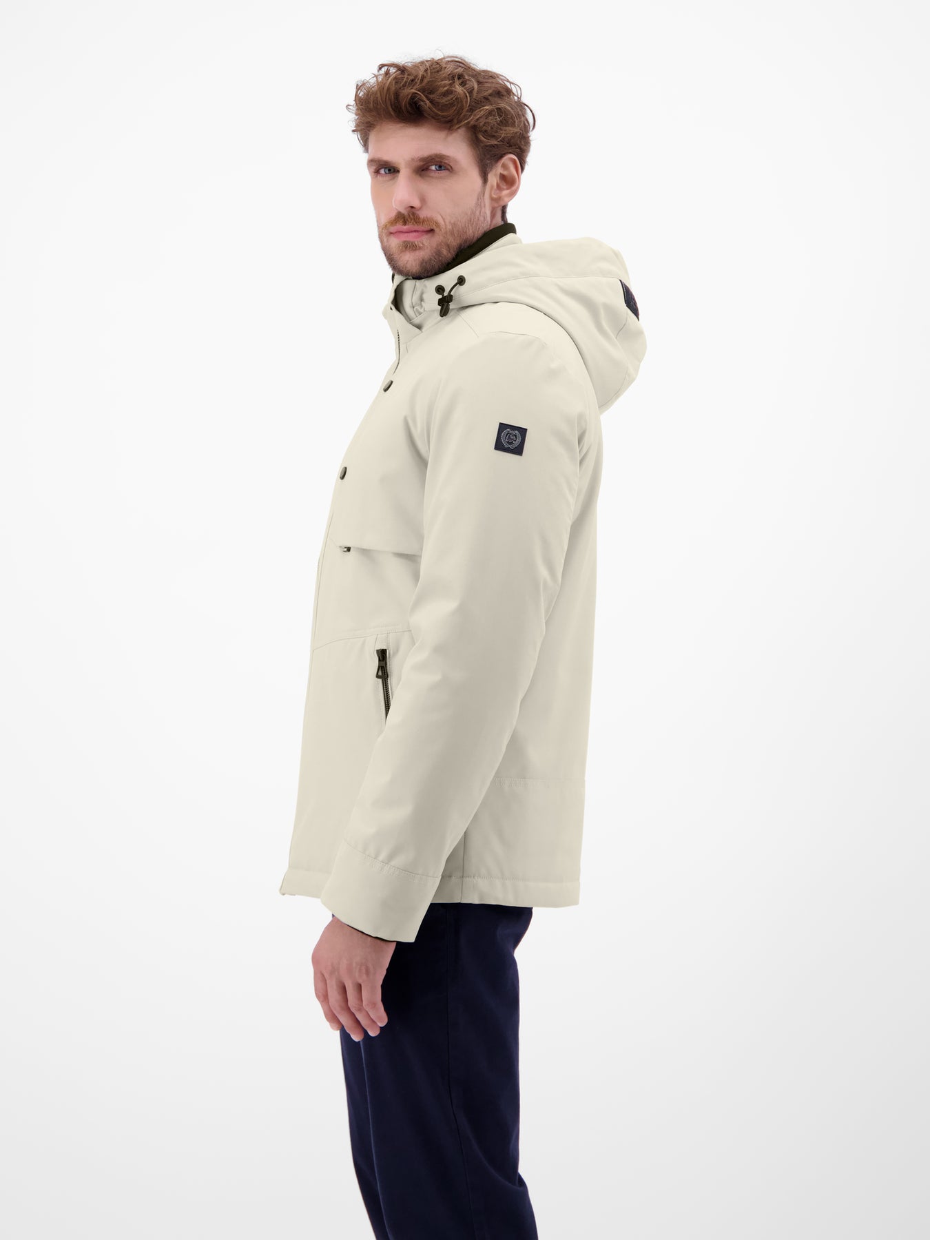 This men's blouson jacket with a detachable hood from LERROS impresses with its simple, sporty look. The water- and wind-resistant material leaves nothing to be desired in terms of comfort and wearability. The tonal details and the zippered hand pockets skillfully round out the design of this outdoor jacket.Pflege: