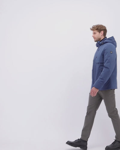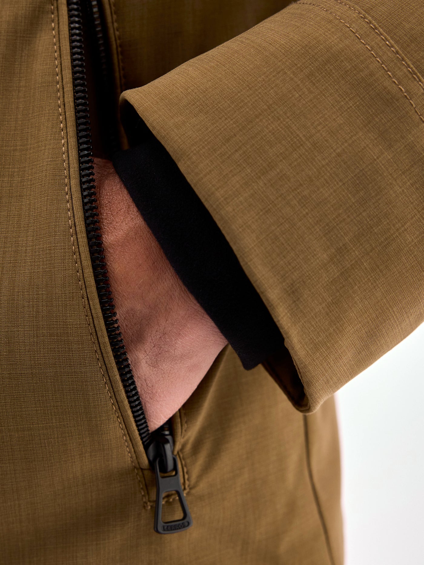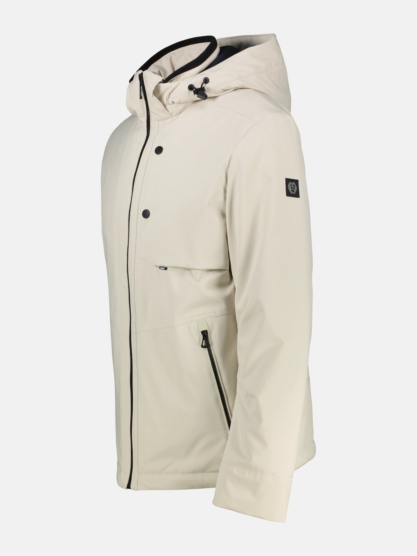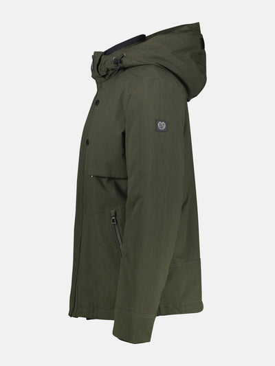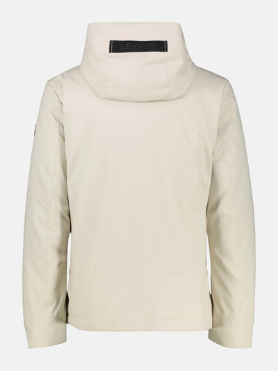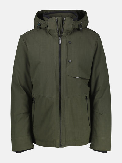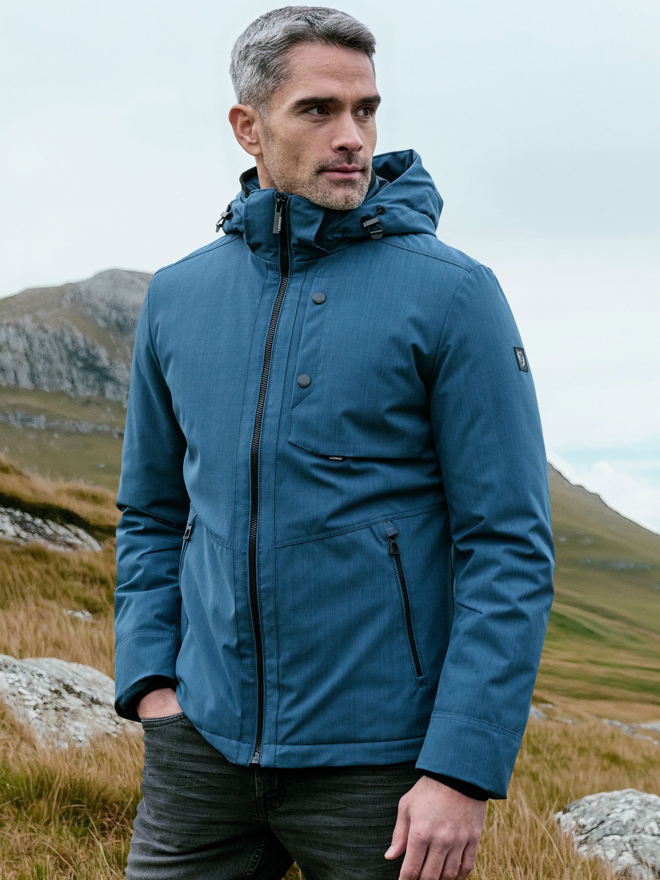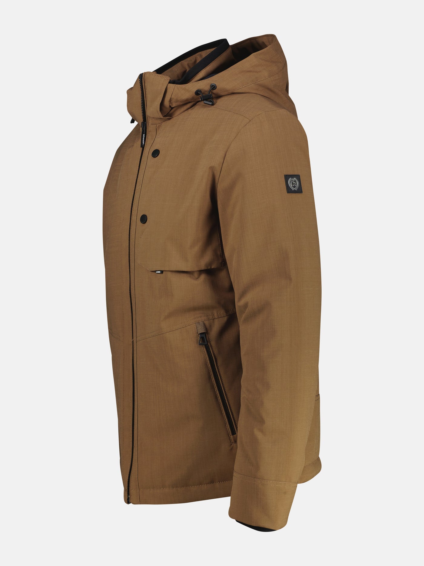 This men's blouson jacket with a detachable hood from LERROS impresses with its simple, sporty look. The water- and wind-resistant material leaves nothing to be desired in terms of comfort and wearability. The tonal details and the zippered hand pockets skillfully round out the design of this outdoor jacket.Pflege: