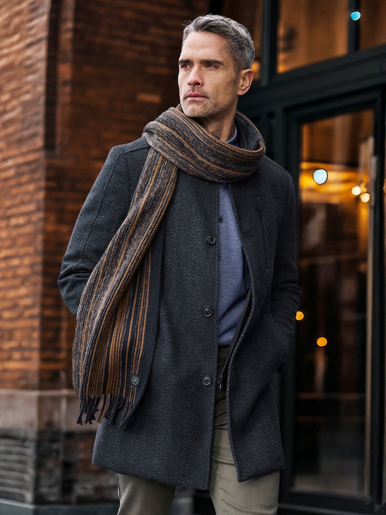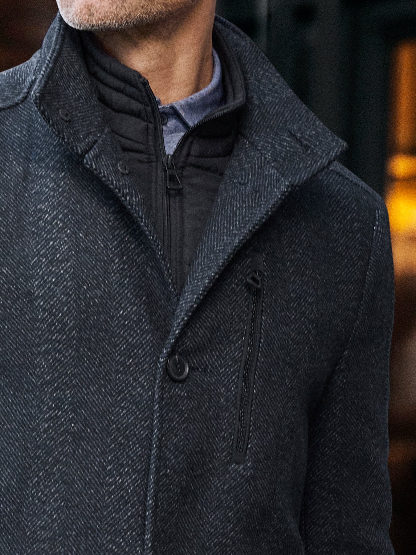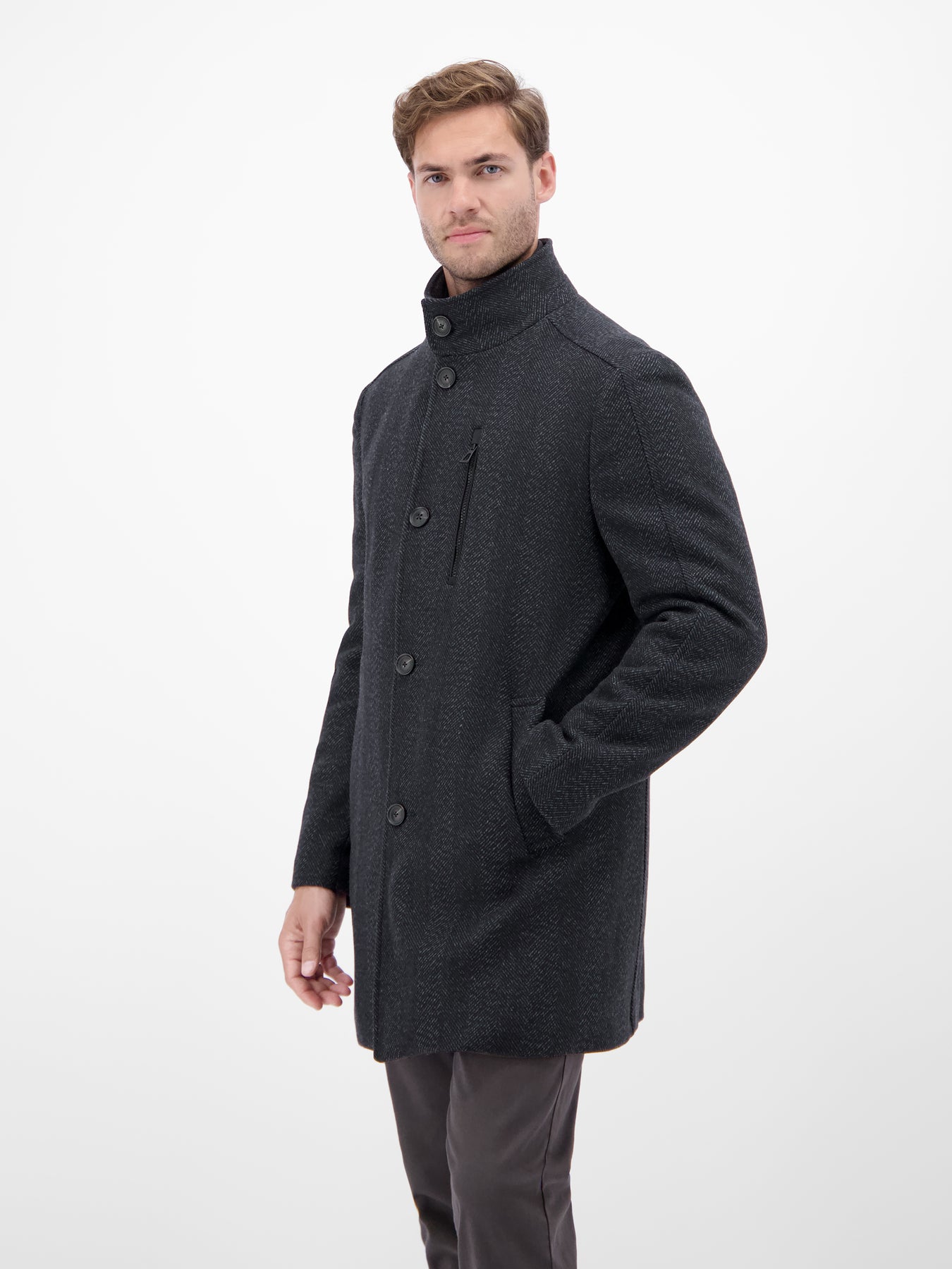 This fashionable men's coat from LERROS combines timeless elegance with practical versatility. The refined wool look lends it a high-quality feel, while the removable vest insert with a ribbed collar provides additional warmth, perfect for changeable temperatures. A stylish and practical highlight is the zippered chest pocket. Whether for business or leisure, this coat is an ideal companion for cool days.Care: