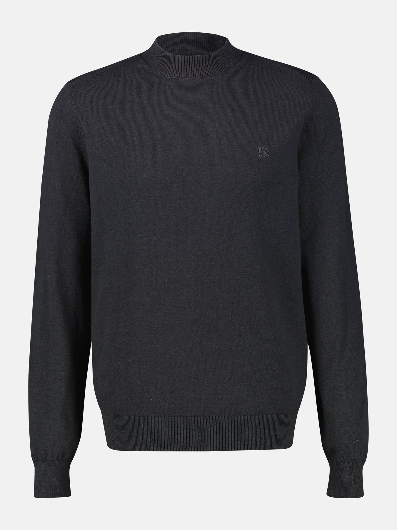 A classic flat-knit sweater in sustainably produced cotton by LERROS with a turtleneck collar and hem. The modern cut and embroidered logo on the chest complete this LIFESTYLE design for every day. This sweater can be combined with a blazer, for example, or simply casually with denim or chinos.