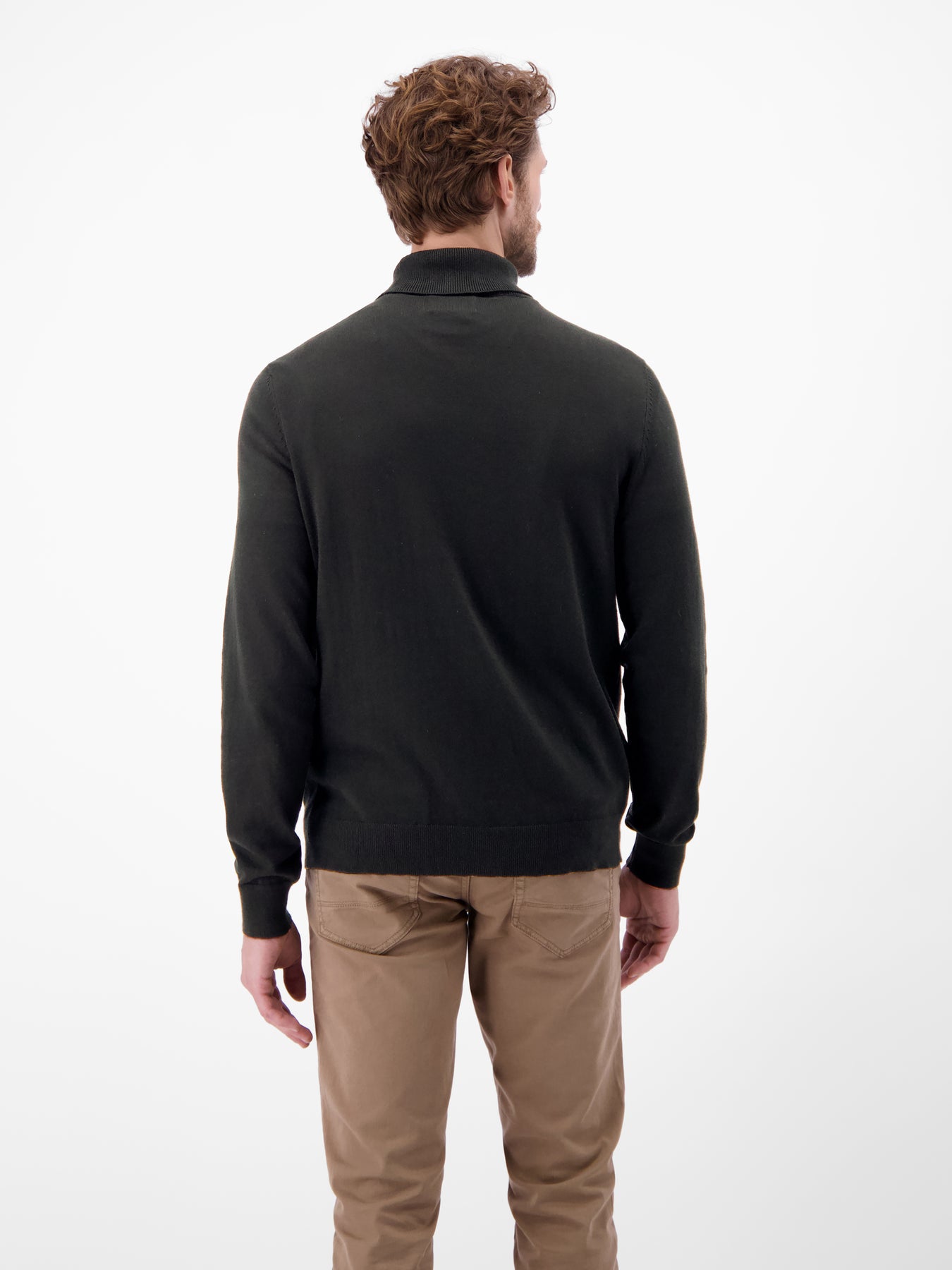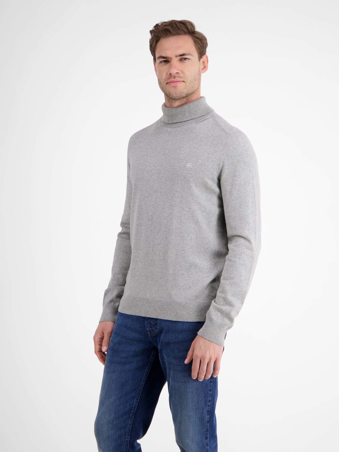 The classic turtleneck sweater in sustainably produced flat knit fabric from LERROS features a ribbed collar and hem. The modern cut and embroidered logo on the chest complete this LIFESTYLE design FOR EVERY DAY. Combine it with a blazer, for example, or simply wear it casually with denim or chinos.Care: