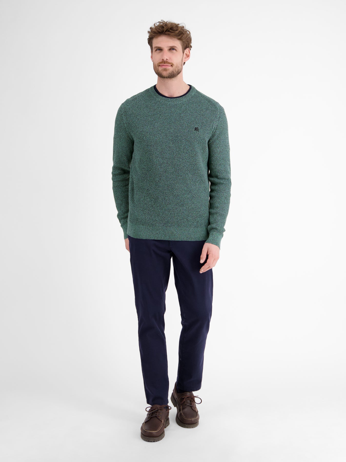 LERROS basic knitwear made from BCI-certified cotton with a round neck. This classic yet fashionable knit sweater will always keep you well-dressed, and paired with jeans or chinos, it also emphasizes your sporty style.Care: