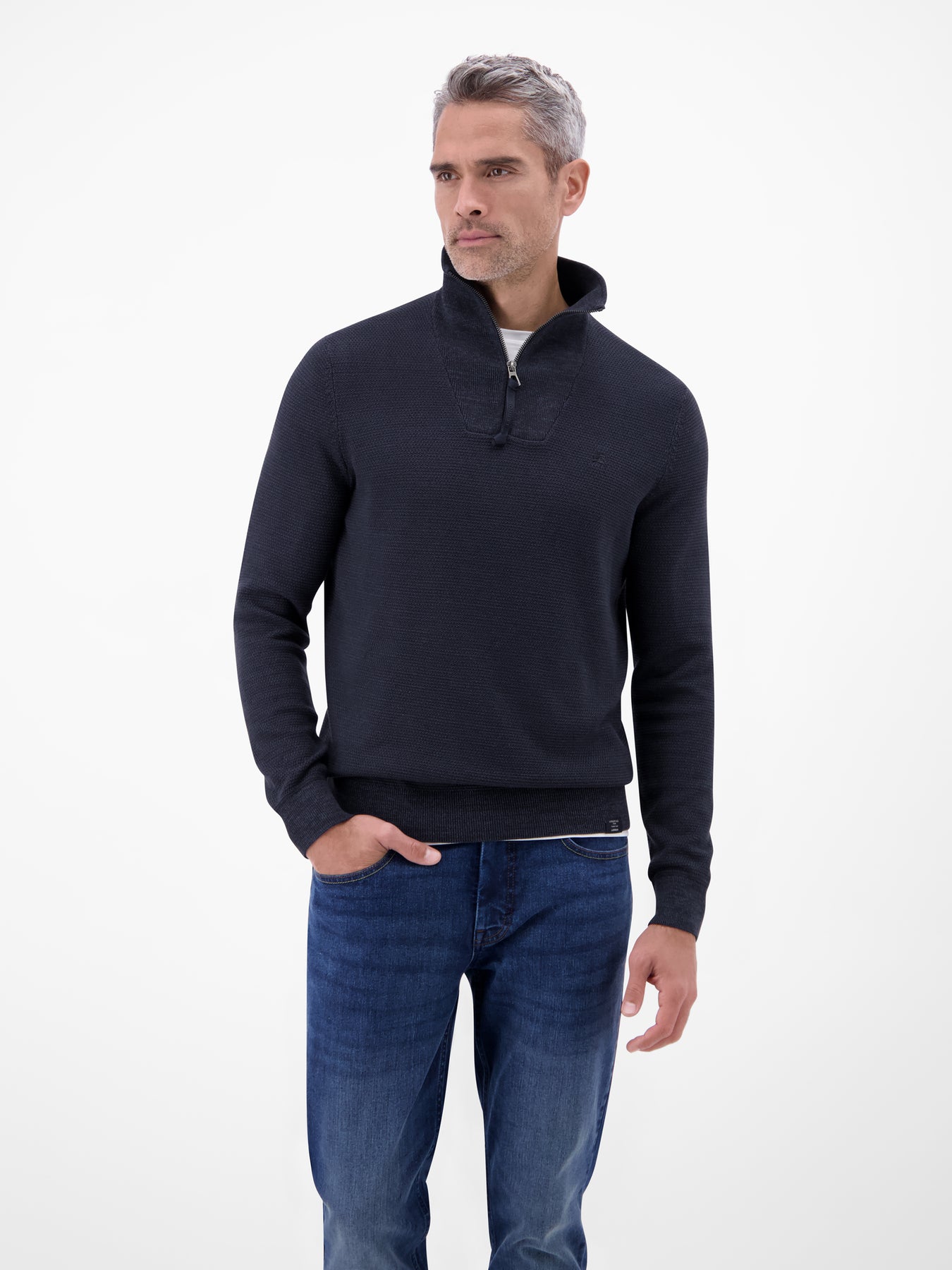 LERROS knitted sweater made of high-quality cotton with a high, ribbed stand-up collar. This classic, fashionable style will always keep you well-dressed, and paired with jeans or chinos, it also emphasizes your sporty style.Care: