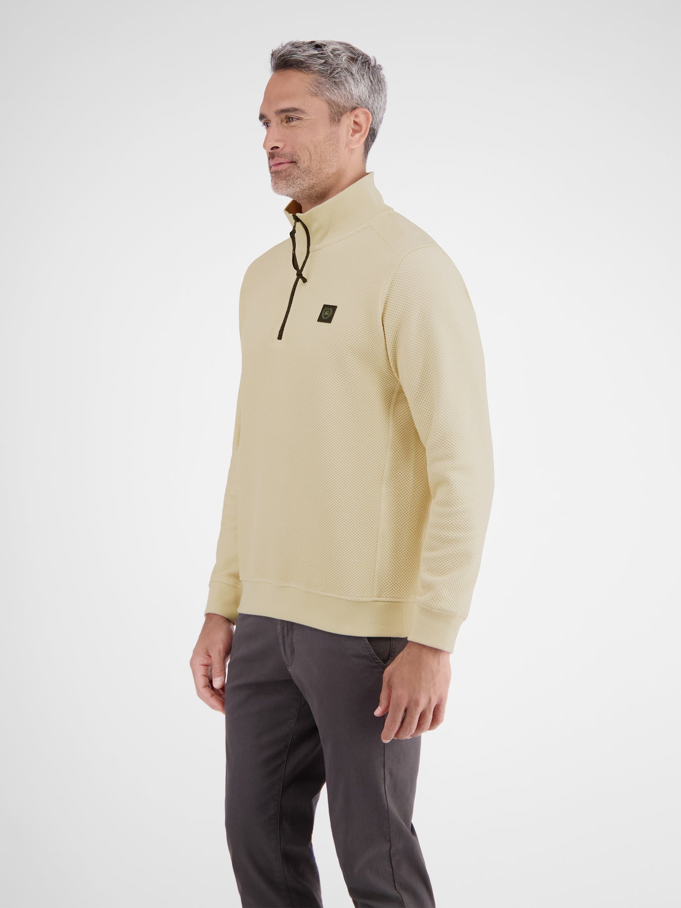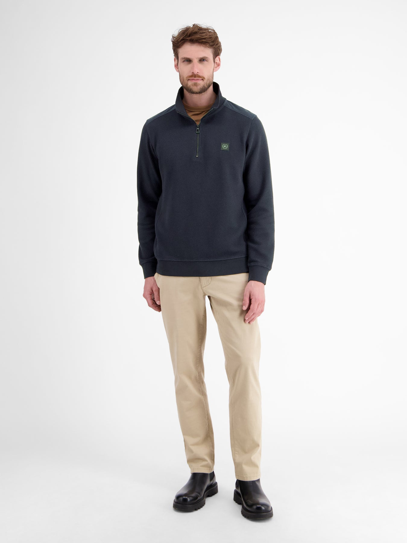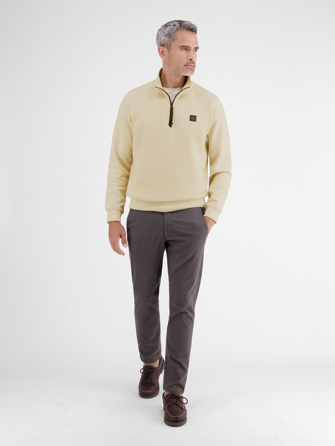 The LERROS sweater style with a high zip collar! This sweatshirt, with its comfortable silhouette, scores points with its color variations and soft texture, making it easy to combine. Whether with chinos or jeans, this sweater blends in with any outfit.Care: