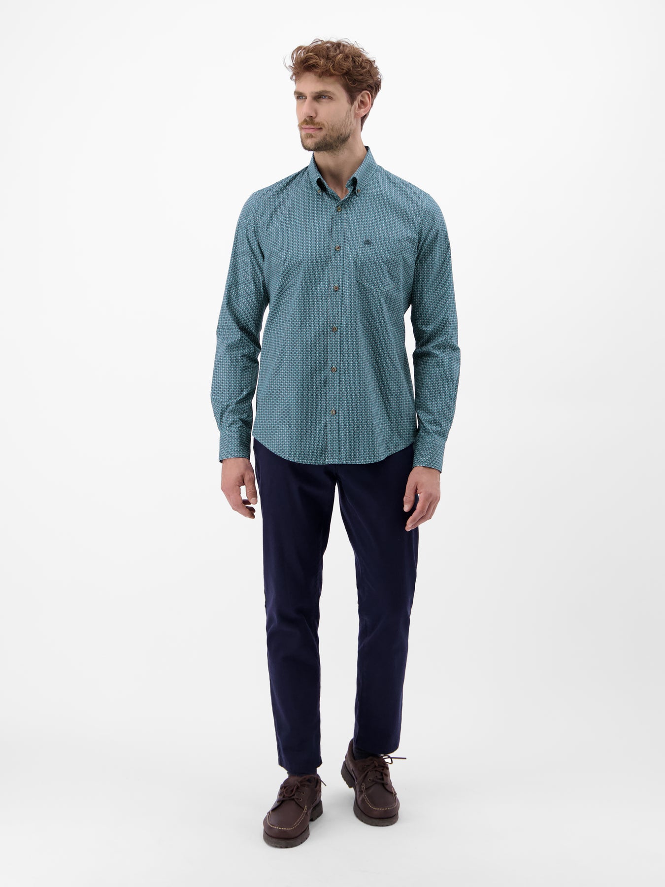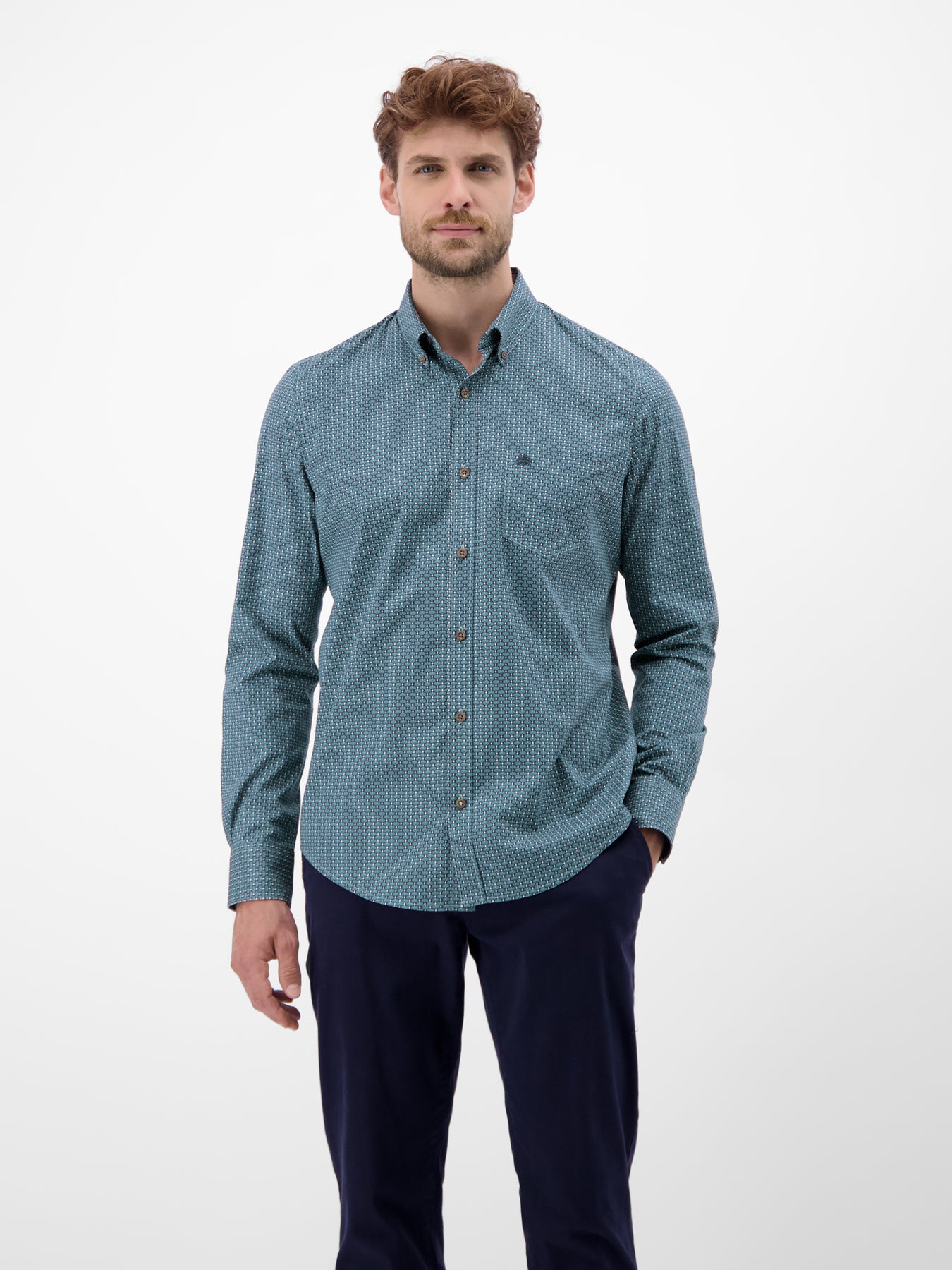 A statement of masculine style and casual elegance – the LERROS men's shirt with a subtle ornamental pattern. The fine poplin fabric with a stretch effect ensures a robust feel, pleasant wearing comfort, and long-lasting shape retention. The printing technique creates a special ornamental pattern that gives the long-sleeved shirt a modern, dynamic look.Care: