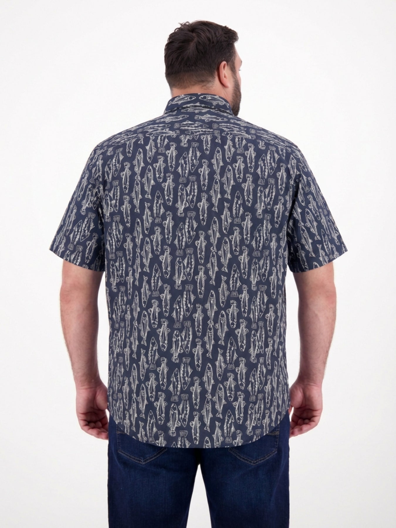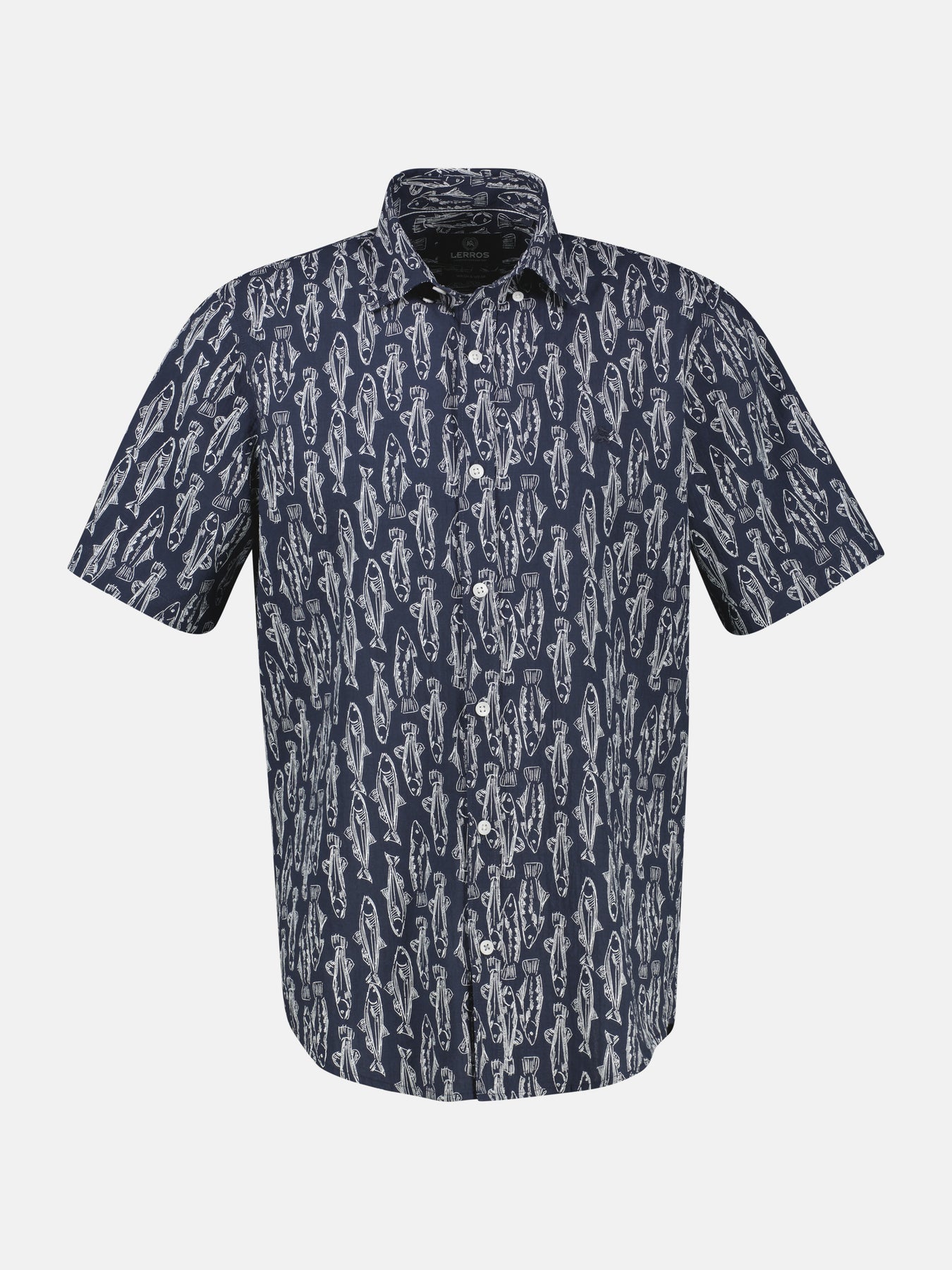 Kurzarmhemd mit marinem All-over-Print in Seersucker-Qualität. Das LERROS Halbarmhemd in grossen Größen von 3 XL bis 6 XL mit Print und Button-down-Kragen verfügt über Details wie eine aufgesetzte Brusttasche und ein gesticktes LERROS-Logo. Dieses 1/2-Armhemd für Herren aus luftigem und hautfreundlichem Baumwollmischgewebe sorgt für höchsten Tragekomfort. Die lässig verspielte Optik und die präzise Verarbeitung sorgen für die ideale Kombination aus modernem Look und überzeugender Qualität.Care: