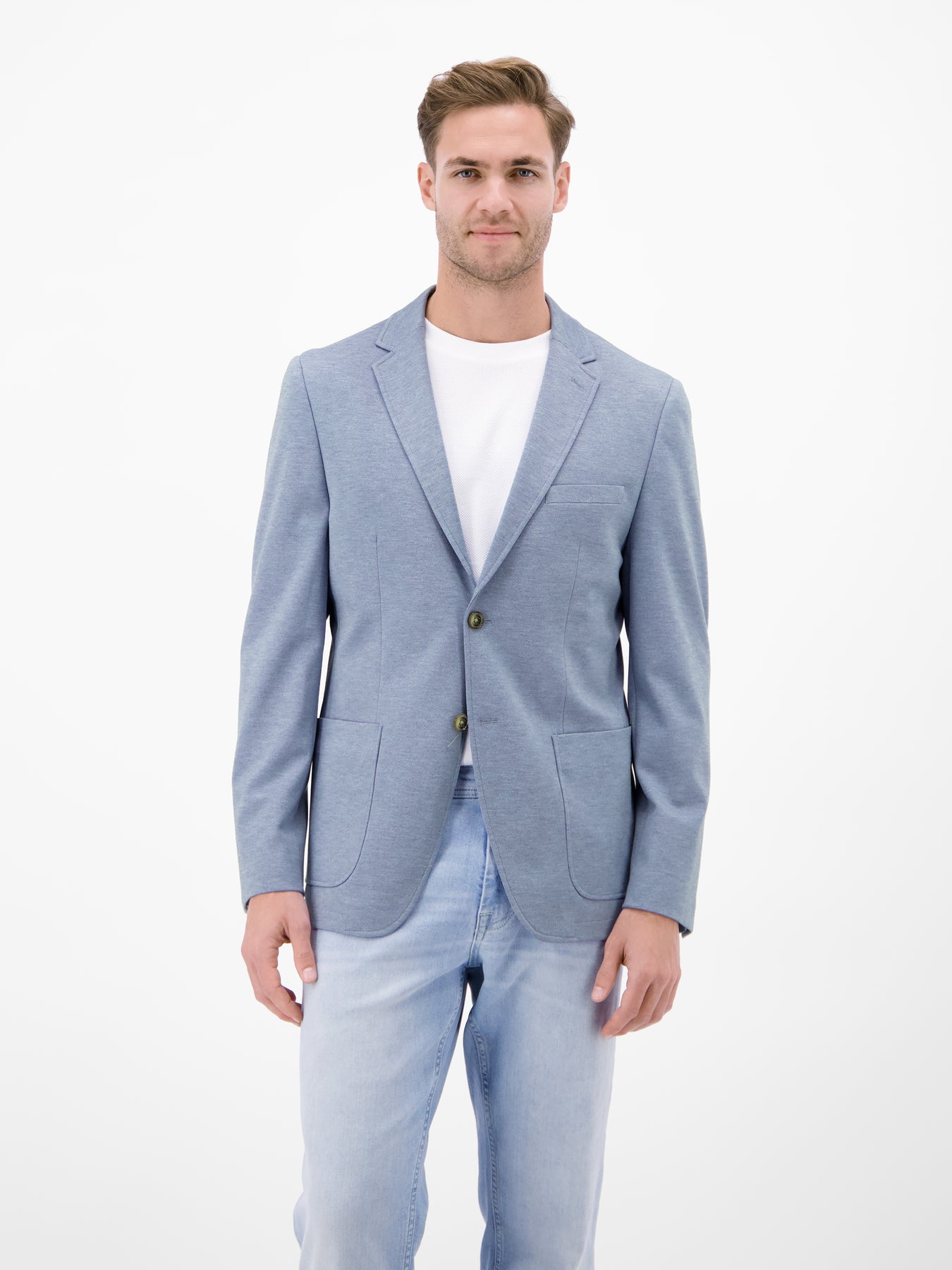 Leichter Jersey-Blazer mit bedrucktem Futter, tailliert. Der elegante LERROS Blazer mit feiner Strickstruktur verfügt über zwei großzügige Seitentaschen sowie eine Brust- und Innentasche. Das flexible Mischgewebe mit Stretchanteil sorgt für angenehmen Sitz und viel Bewegungsfreiheit. Der Blazer ist vielseitig kombinierbar zu Hemd oder Poloshirt und kann zu Jeans oder einer passenden Anzughose getragen werden.Care:
