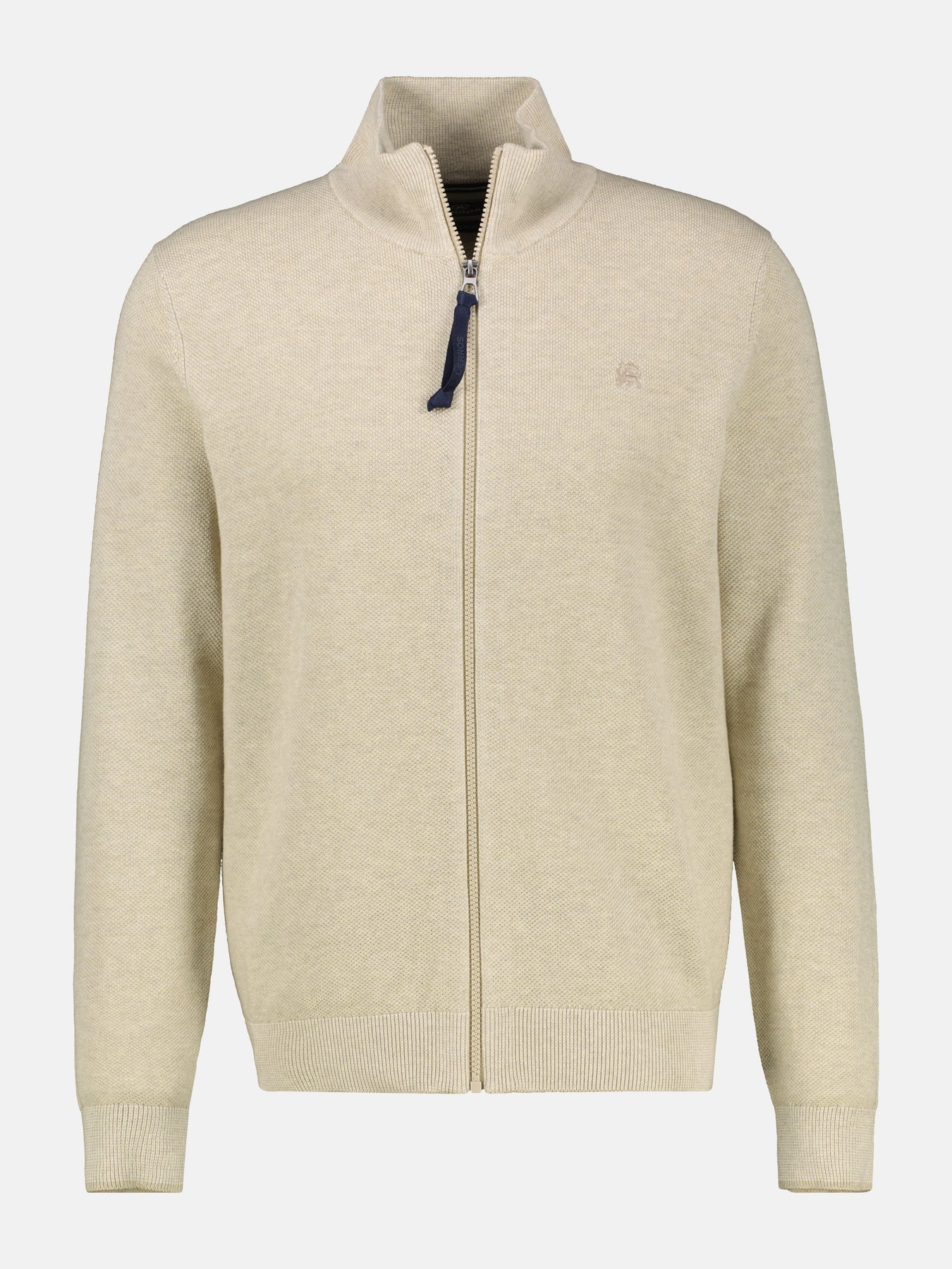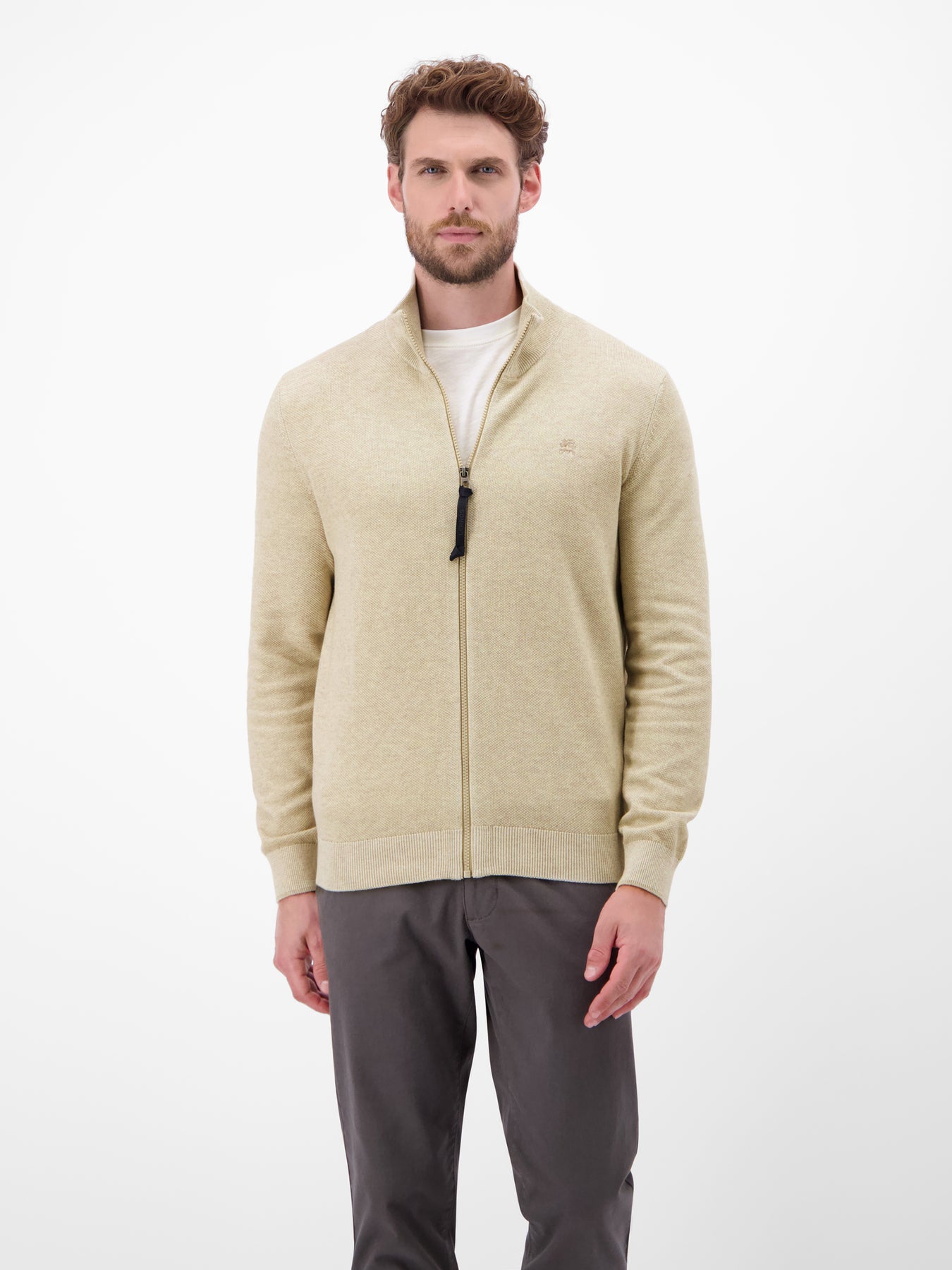 This LERROS men's cardigan made of BCI cotton has a sporty feel thanks to its melange look and narrow ribbed texture. The fashionable slim fit combined with the classic, zip-through stand-up collar quickly makes this cardigan a comfortable everyday style.