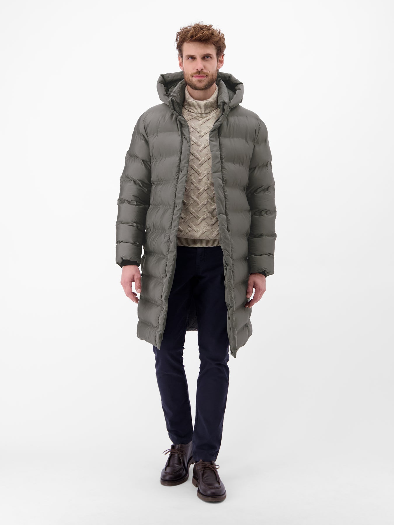 Men's quilted parka with removable hood