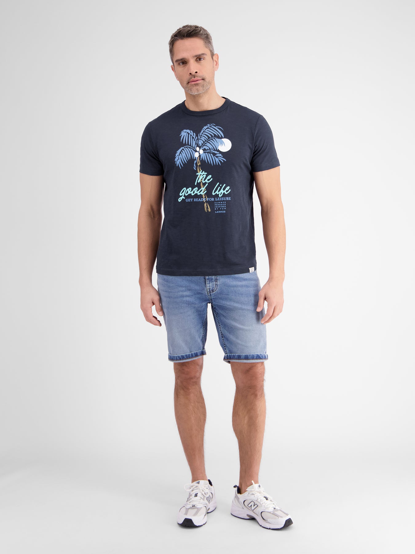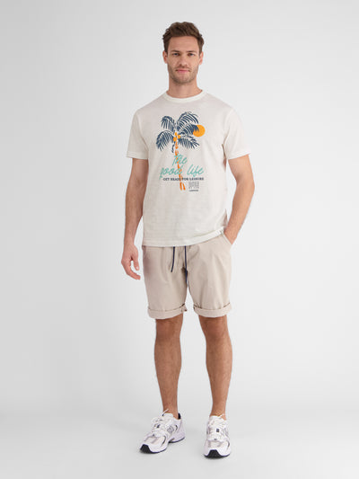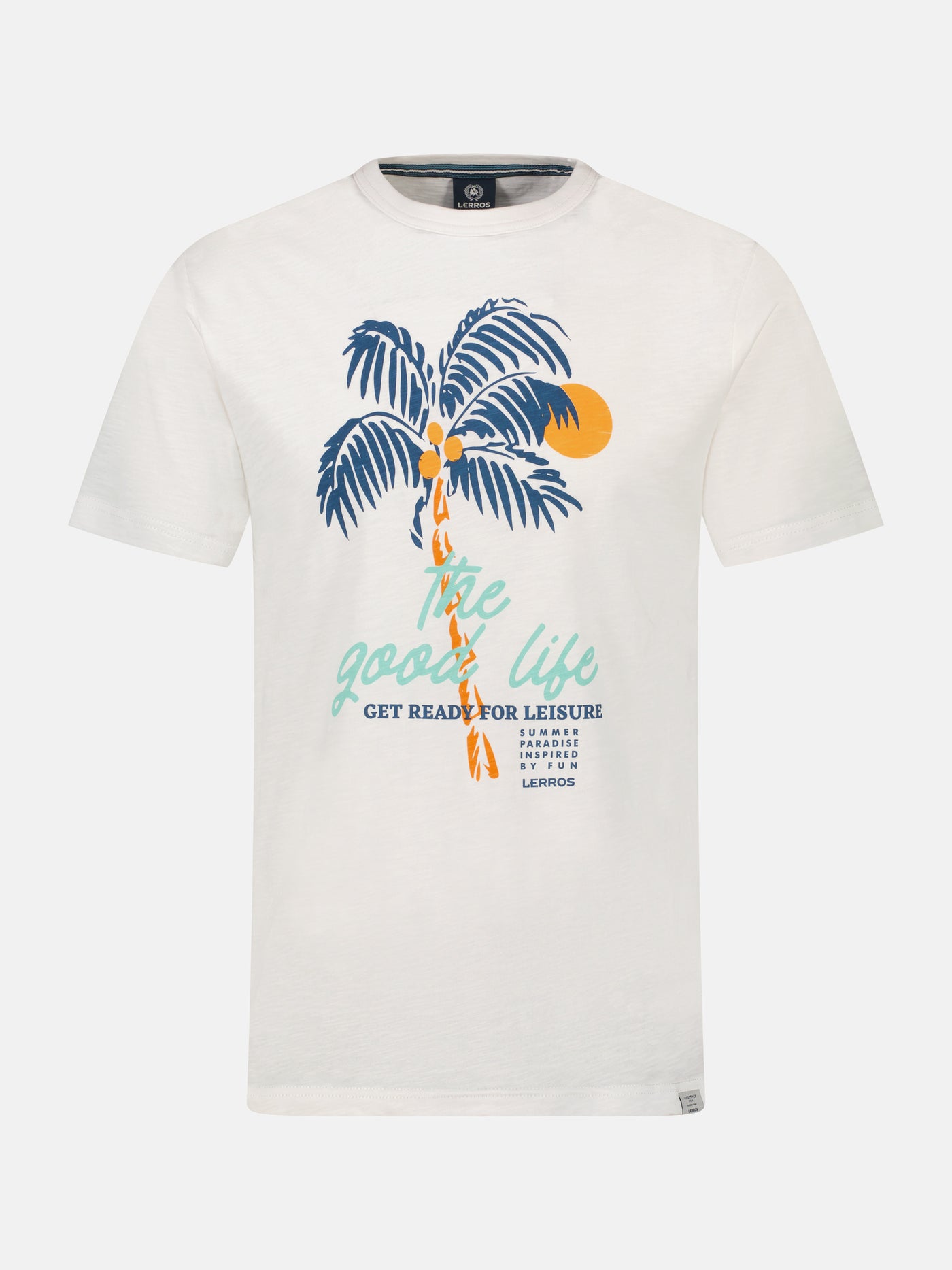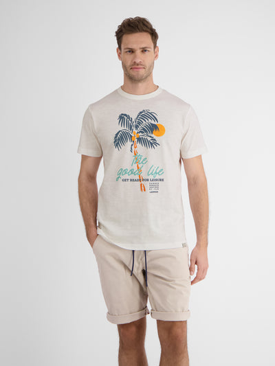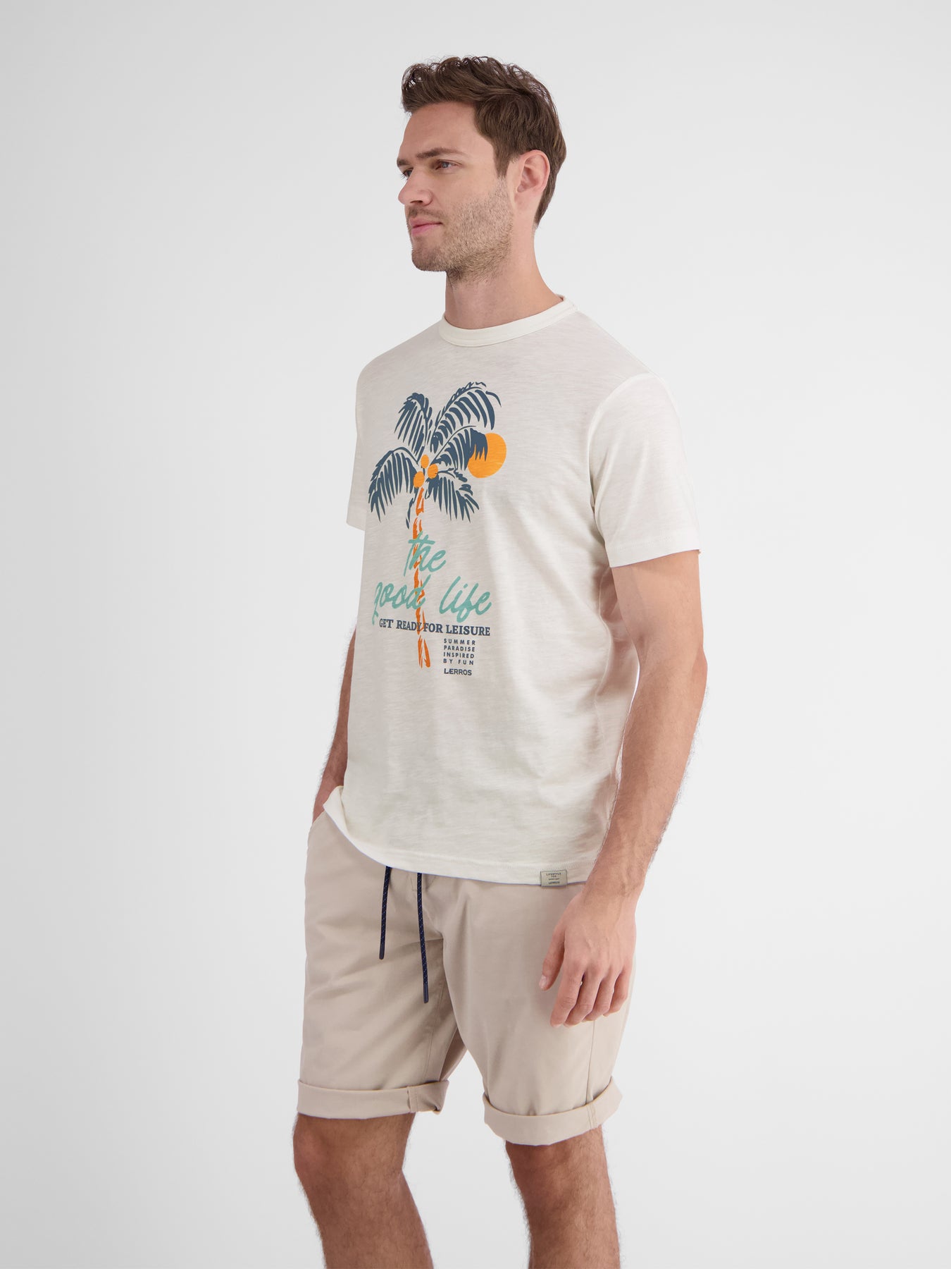 THE GOOD LIFE not only as a chest print, but also noticeable in the comfort of this fashionable LERROS T-shirt with a round neck. The normal fit and the light structured jersey quality round off this men's style.