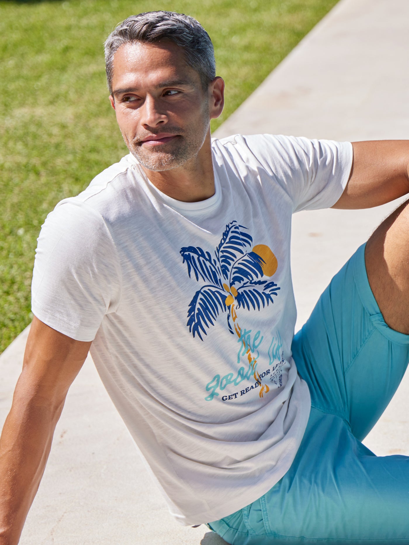 Round neck T-shirt for men with palm tree print