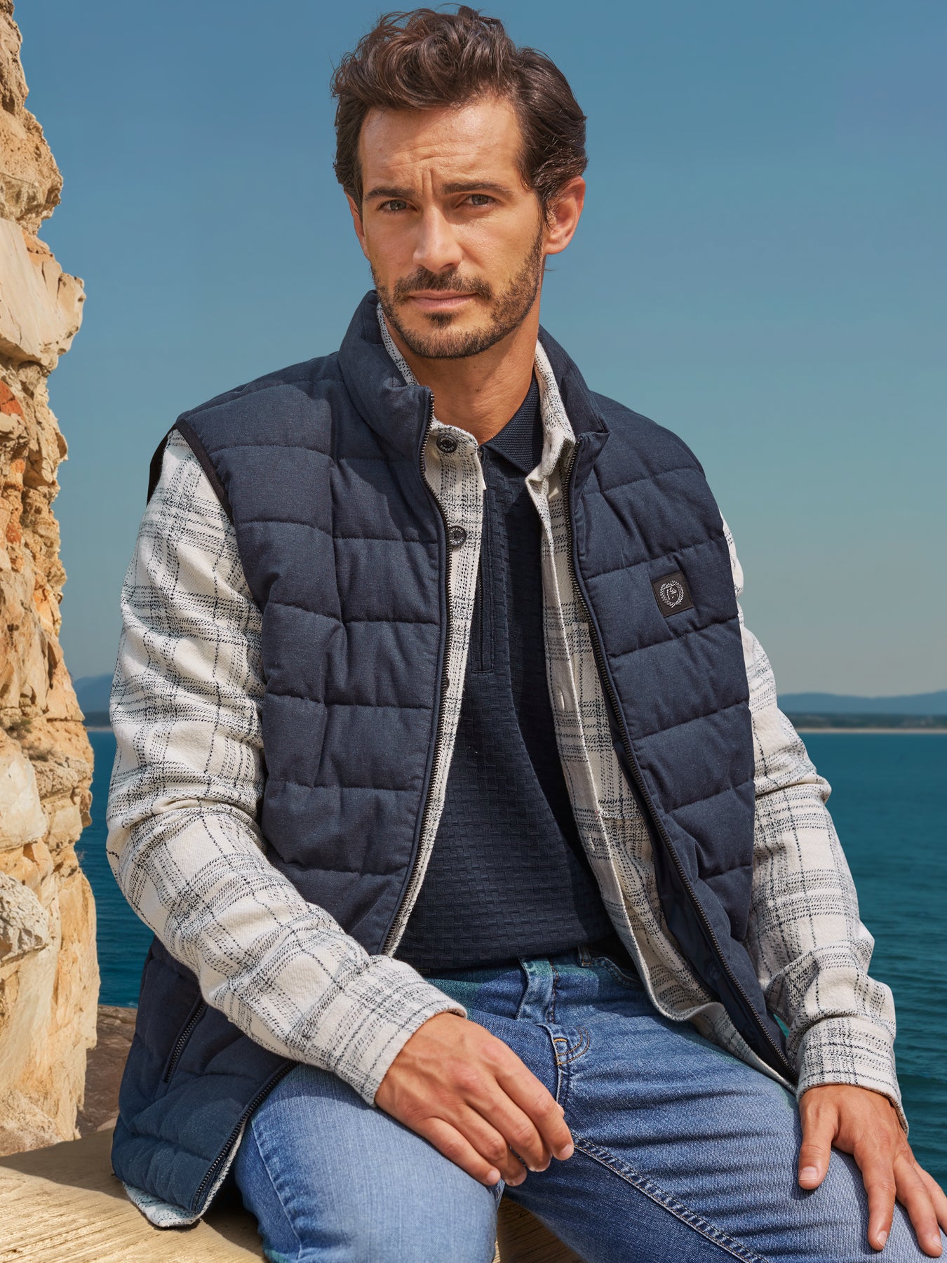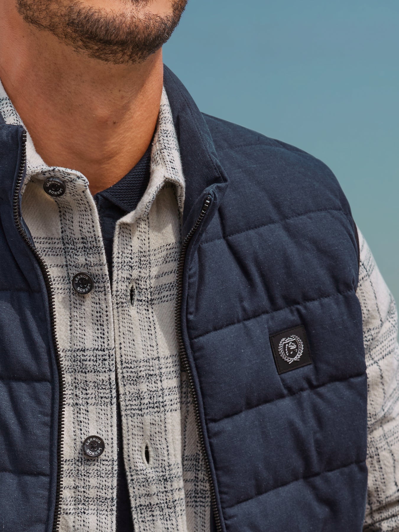 Quilted vest made of cotton and linen, lined. Breathable and ideal as a top layer over a shirt or T-shirt. A full-length zipper, sturdy metal zipper pulls, two side pockets, a stand-up collar, elasticated cuffs, and the rubberized LERROS badge ensure comfort and a modern look. This men's vest, made of durable LERROS quality, offers a flexible fit for a variety of outdoor activities.