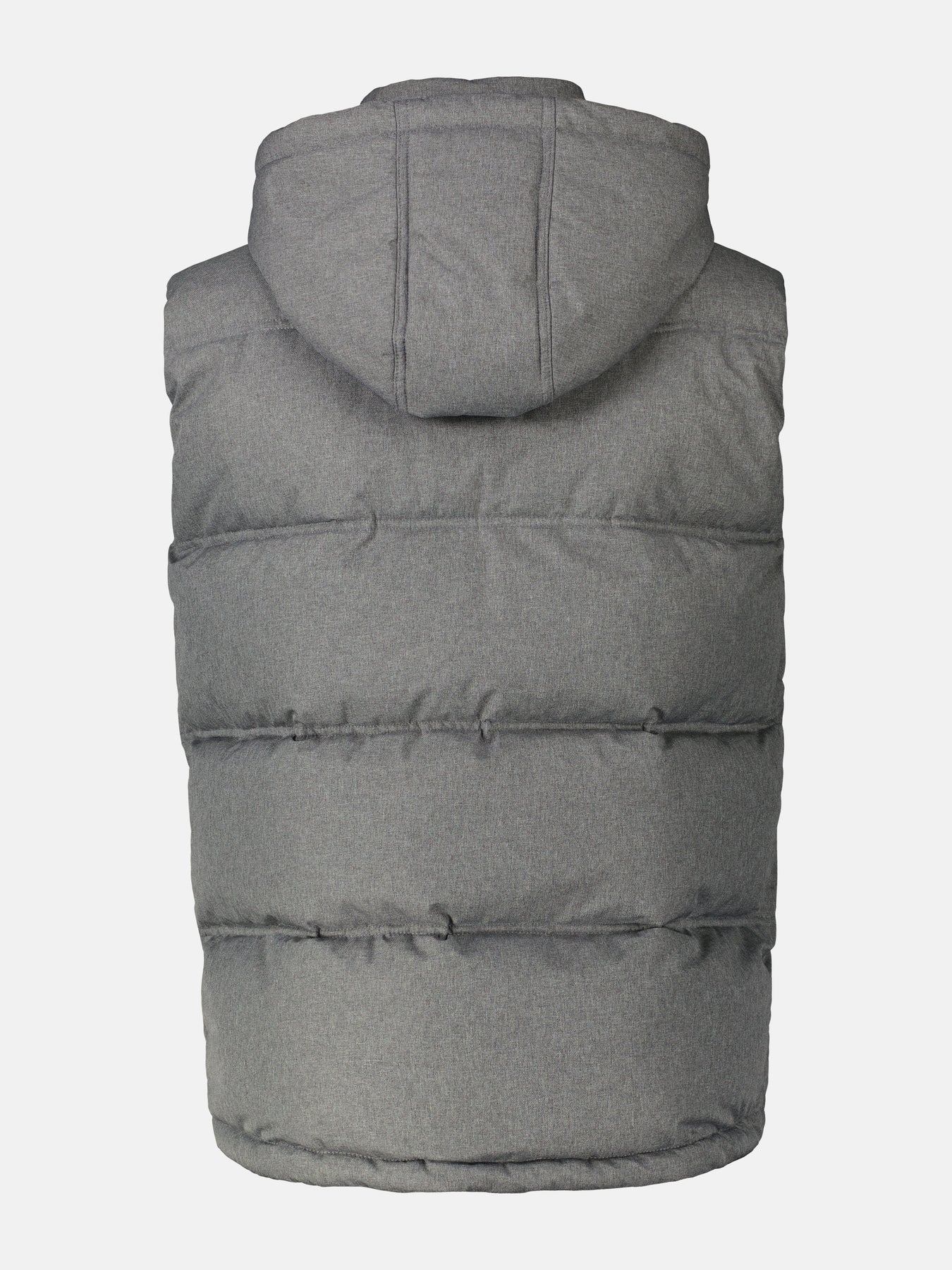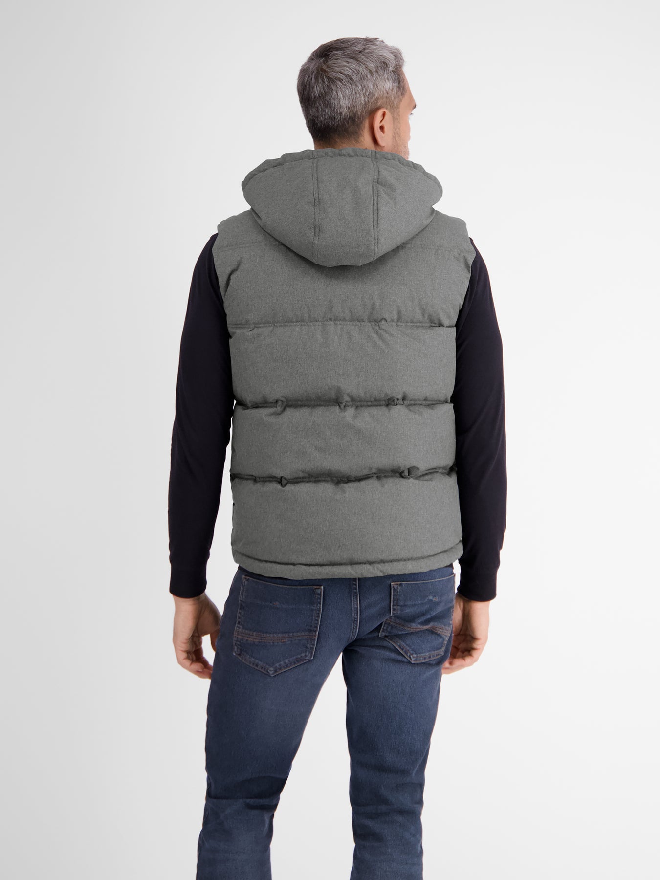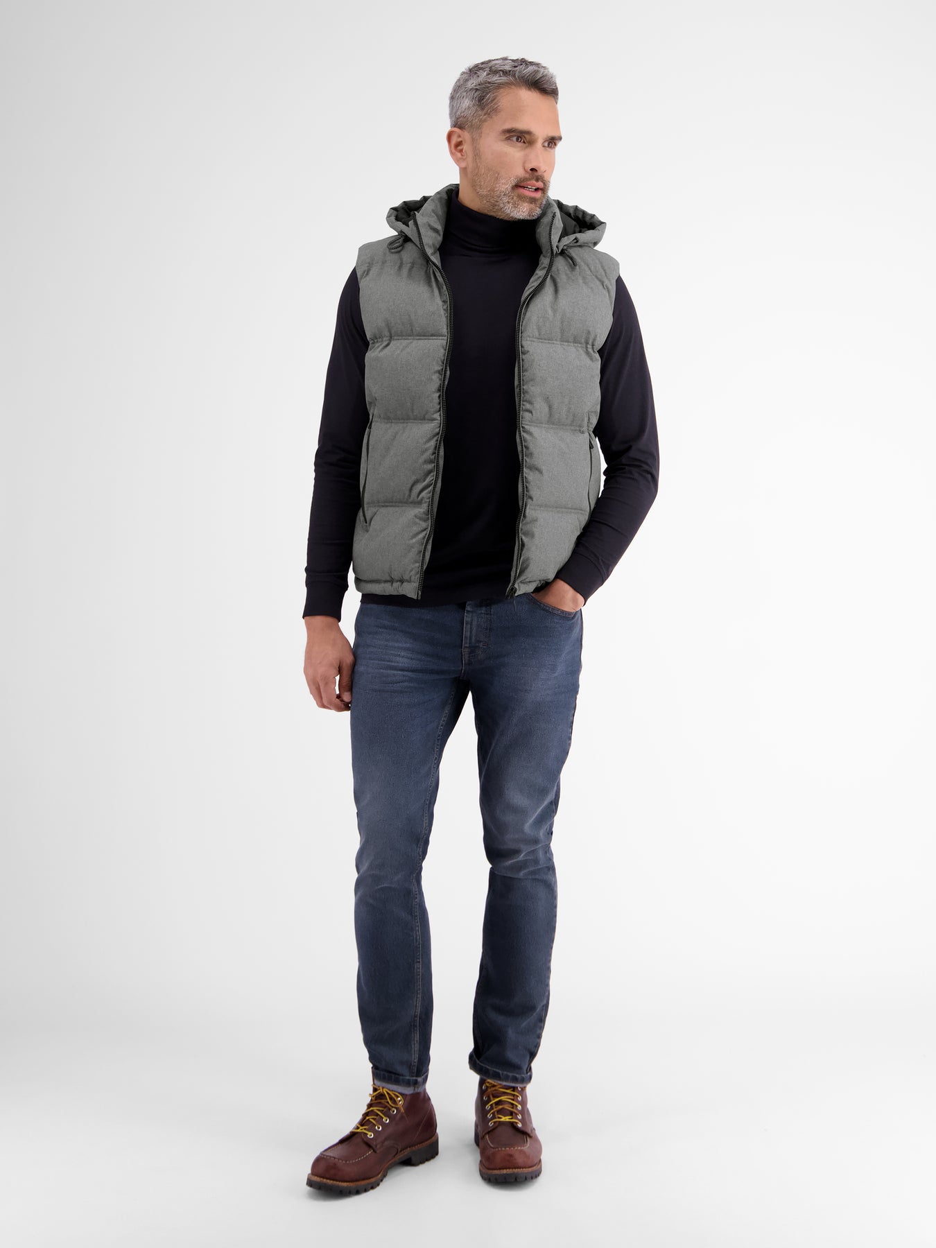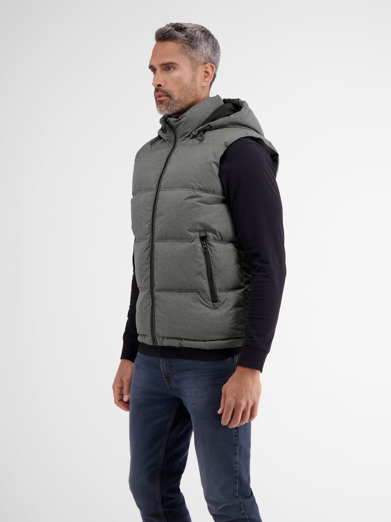 This quilted vest from LERROS is an established essential for the autumn-winter season - here in a fashionable wool look! The full-zip closure, the stand-up collar with hood, the side pockets and the fashionable, wide stitching characterize the jacket, as do the functional details such as the water- and wind-repellent breathability.Care: