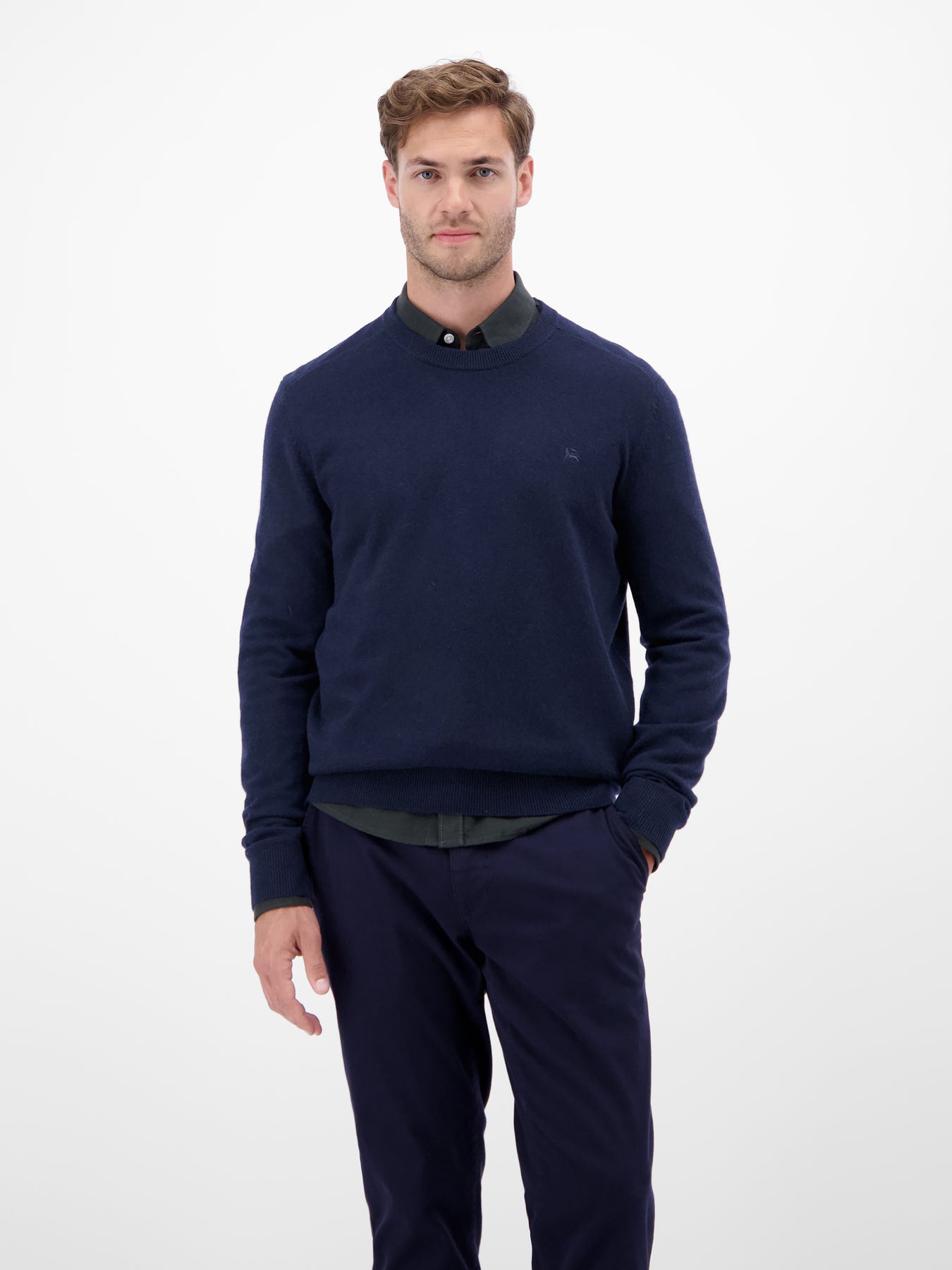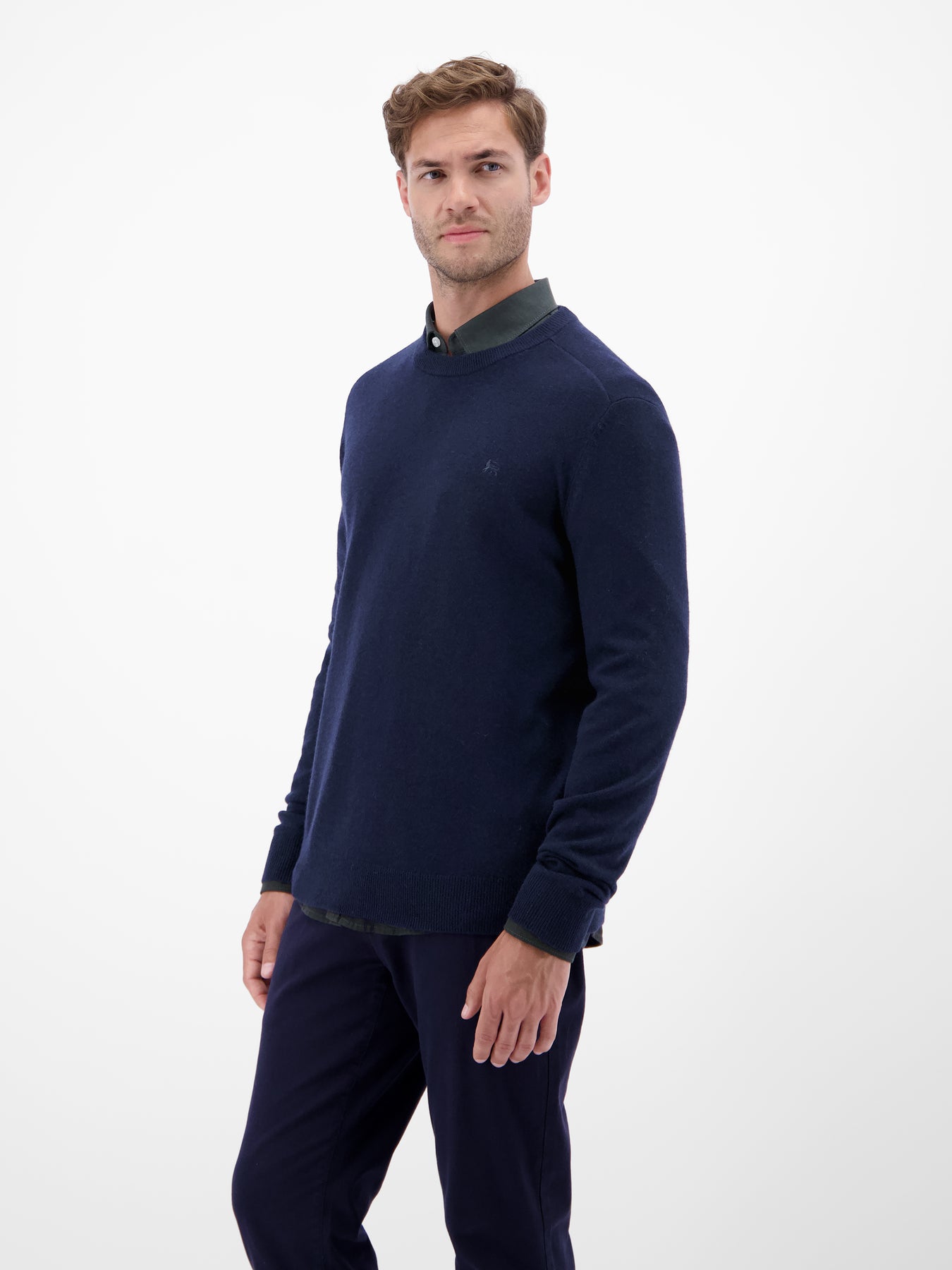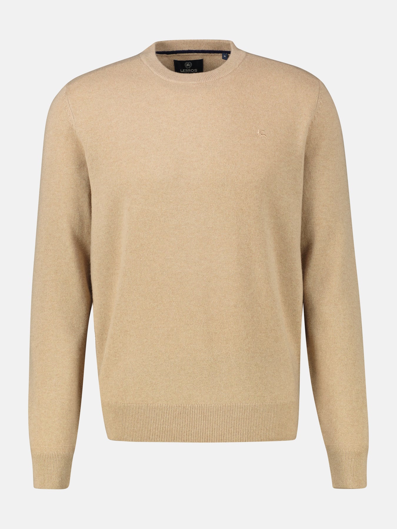 This finely knitted crew neck sweater exudes timeless class. The refined combination of pure wool and fine cashmere gives the LERROS knit sweater a pleasantly soft feel and an elegant, matte finish, perfect for men with a sense of quality and style. The classic crew neck, finely ribbed trims, and a modern, well-defined fit create a sophisticated look that blends effortlessly into any wardrobe. Whether worn on its own or layered under a blazer or coat, this sweater always looks confident, never over the top.Care: