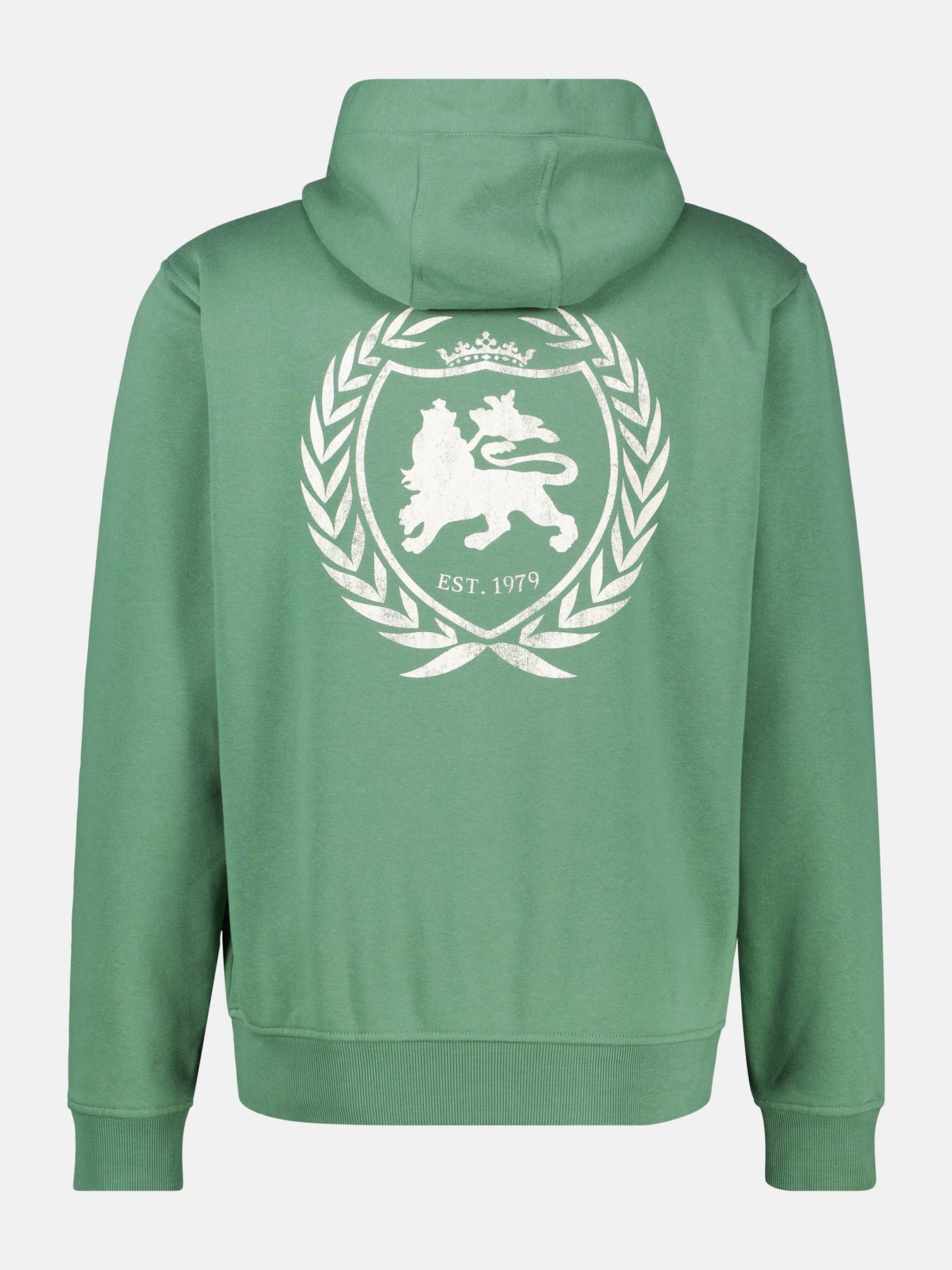 Casual LERROS sweat hoodie made of a breathable, soft cotton blend with a striking LERROS back logo. This favorite piece for everyday wear, sports, and leisure time scores with its high level of comfort and a pleasant feel against the skin. The spacious hood with a drawstring and flat cord is functional in wind and bad weather and, when folded back, adds a sporty, urban touch. Typical of a LERROS sweatshirt hoodie: the elastic cuffs ensure a perfect fit without any itchy skin. This sweatshirt in the trendy hoodie look is perfect for pairing with jeans, cargo pants, and tracksuit pants.