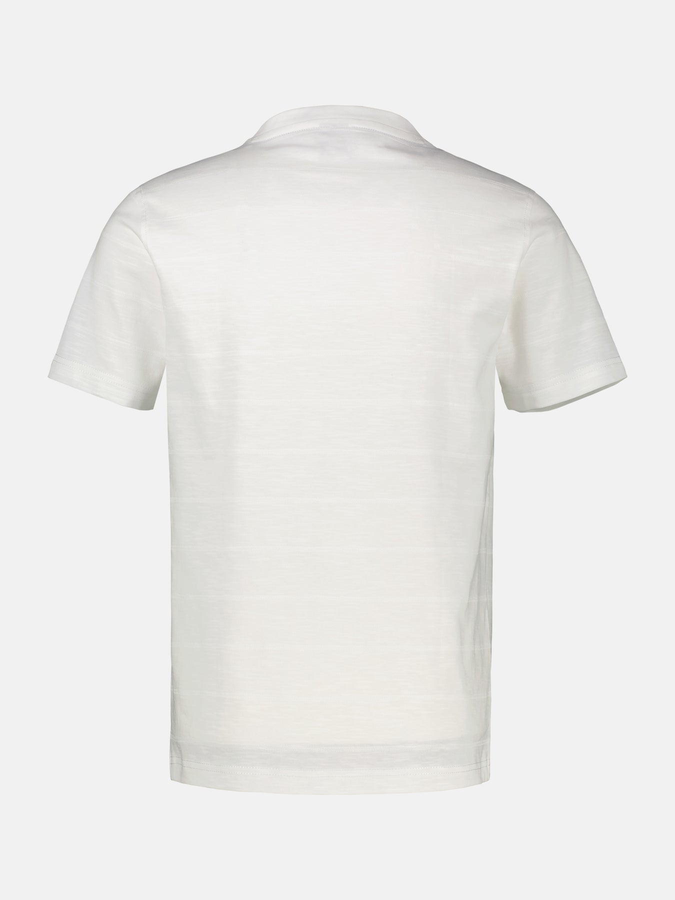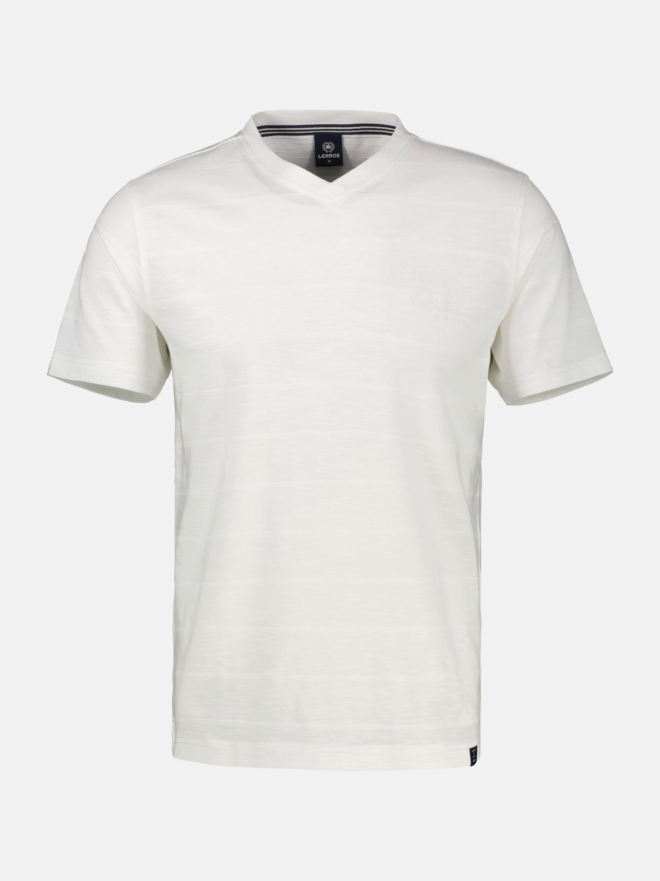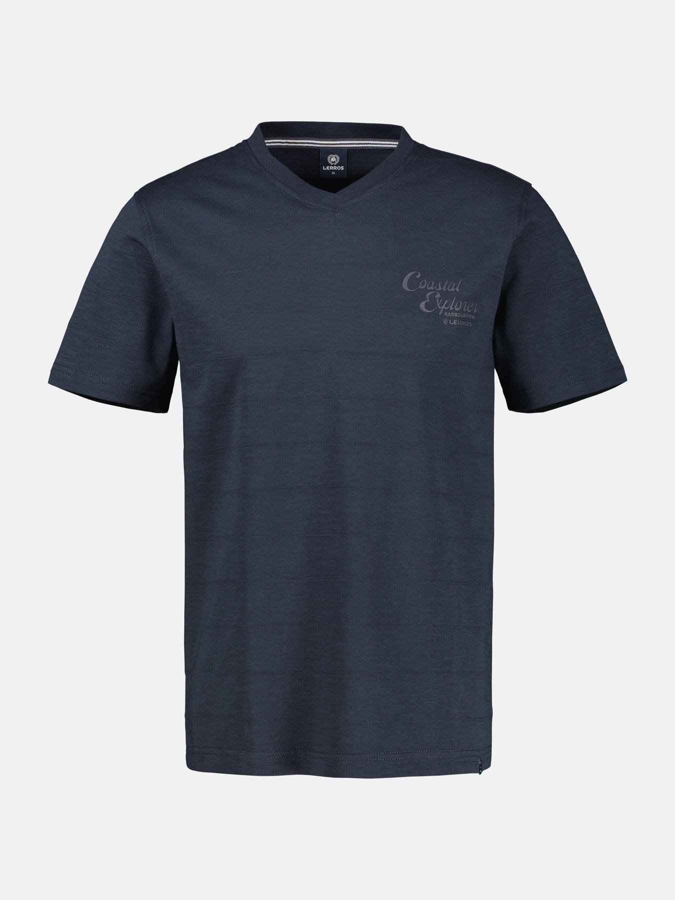 T-Shirt mit V-Neck in Strickqualität aus 100 % Baumwolle in grossen Größen von 3XL bis 6XL. Das moderne LERROS T-Shirt besticht durch seinen lässigen Look, der durch das Streifendesign unterstrichen wird. Der Tragekomfort wird durch 100 % Baumwolle in Strukturqualität gewährleistet. Das angenehme Hautgefühl macht dieses LERROS T-Shirt zur besten Wahl für warme Tage die aufwändige Verarbeitung und der trendige Brustprint sorgen für einen überzeugenden Auftritt im Alltag und in der Freizeit.Care: