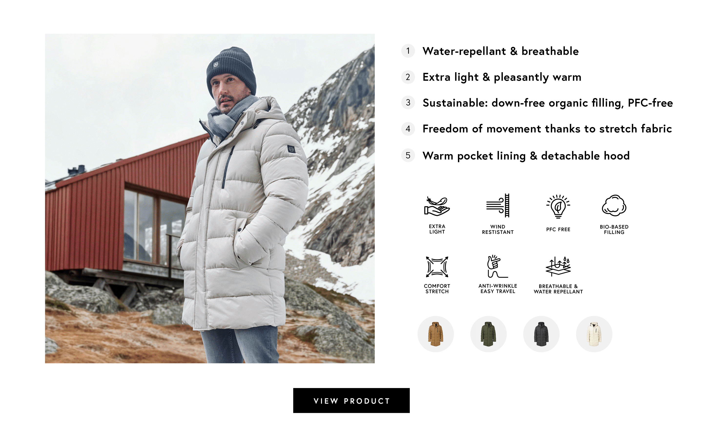 Breathable materials, innovative fillings, and thoughtful details make each style a reliable companion. Whether for everyday wear, business, or outdoor activities – you‘ll find the right jacket for every occasion here.