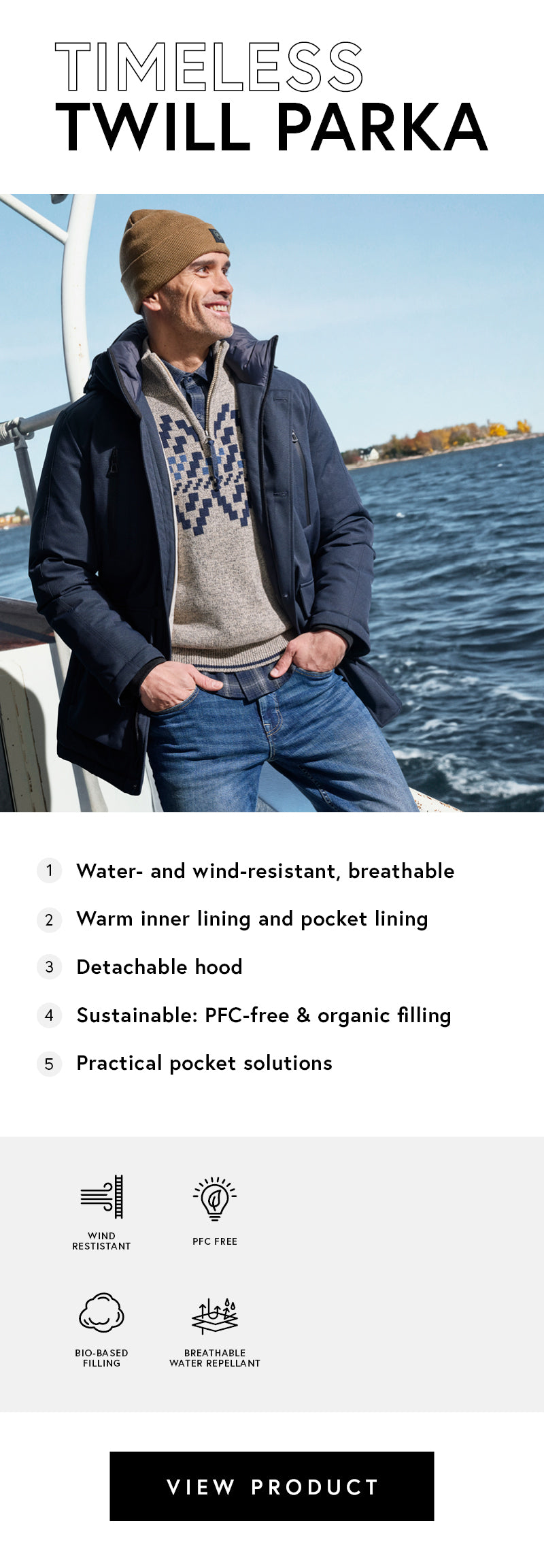 When the days get shorter and the weather more unpredictable, you need jackets that can do more: protect, keep you warm, and look good at the same time. Our Fall/Winter 2025 Outerwear Guide shows you versatile styles – from sporty quilted jackets and functional parkas to smart coats.