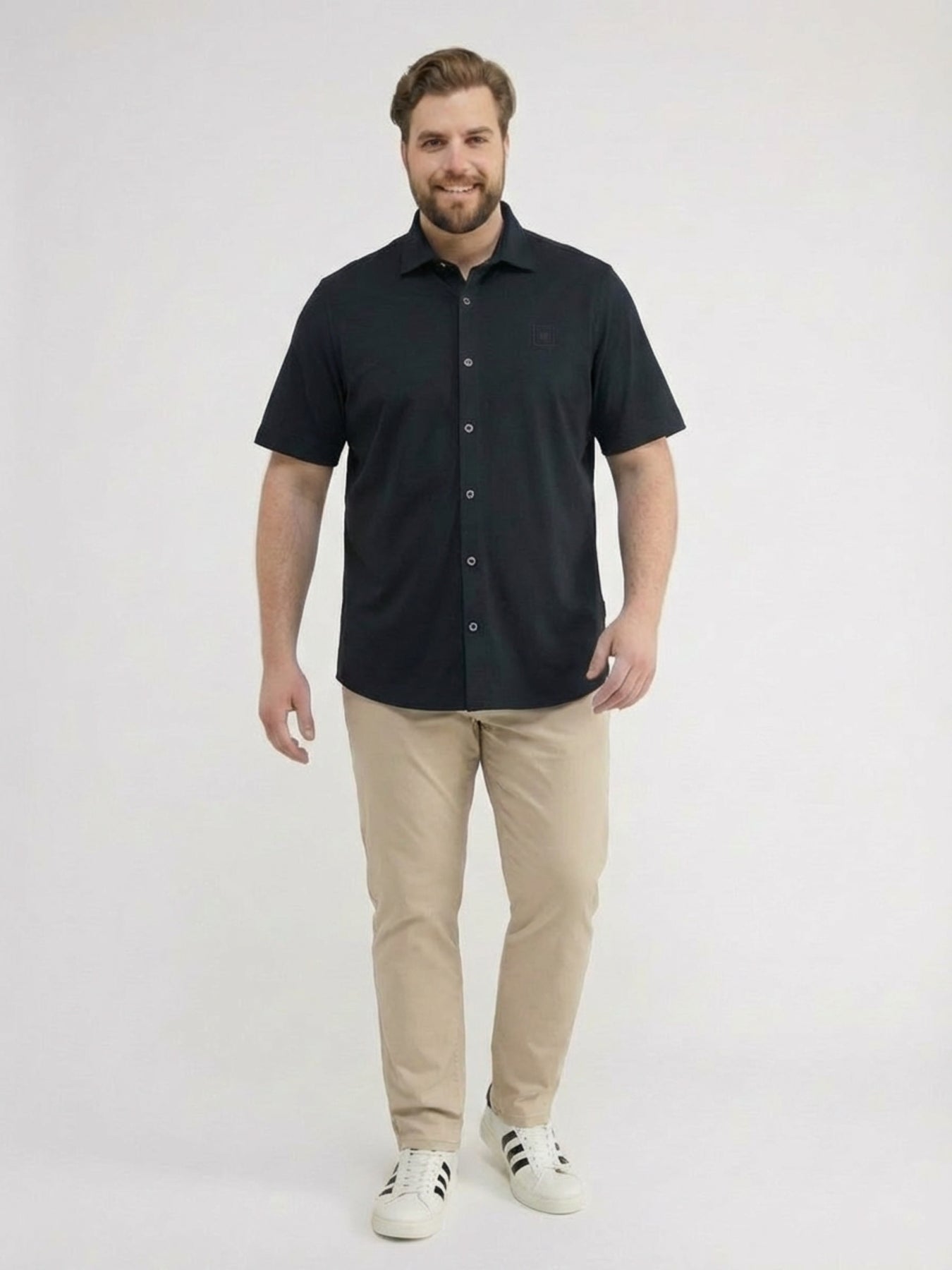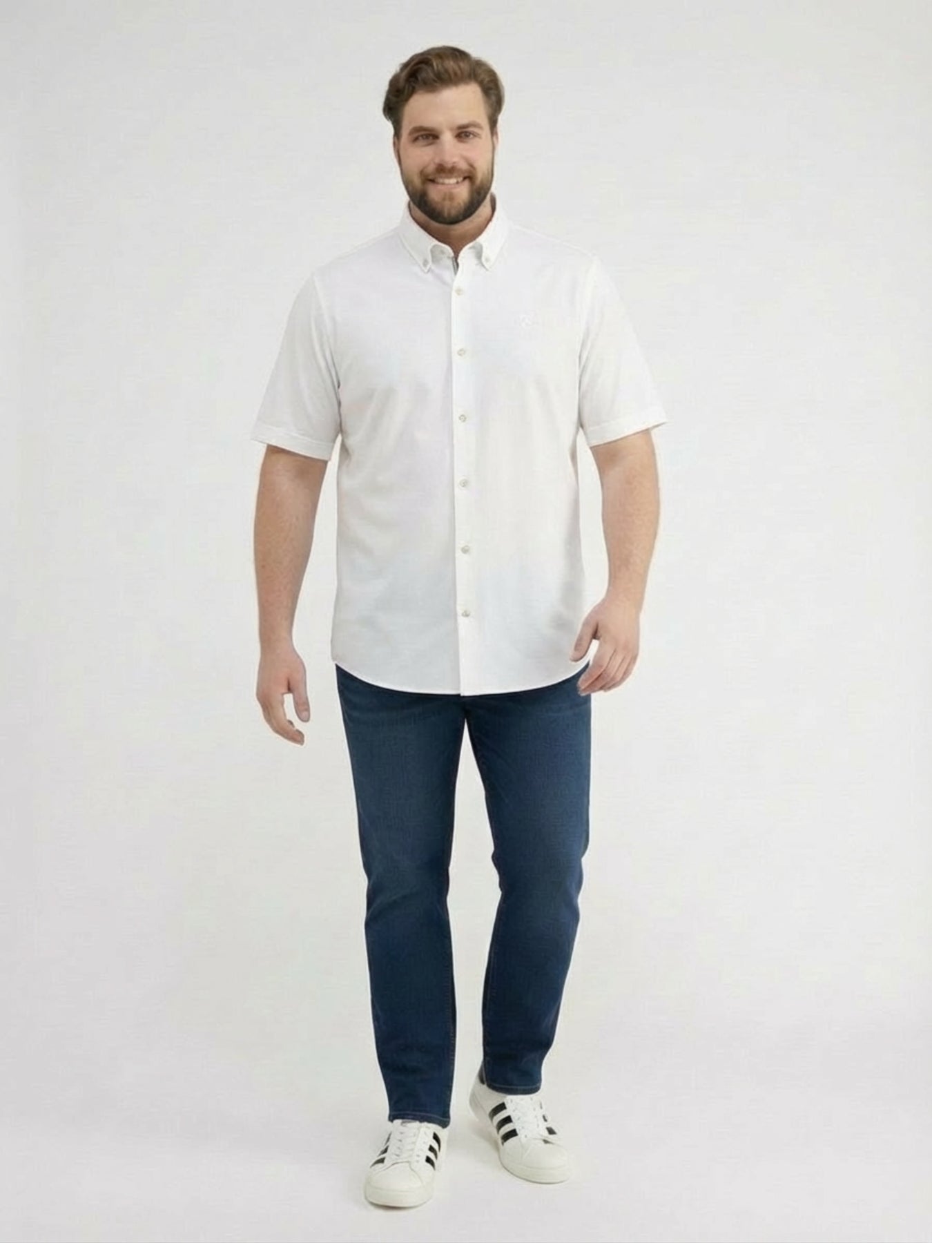 Short-sleeved shirt with COOL & DRY technology, available in sizes 3XL to 6XL. The LERROS 1/2 Performance Shirt comes in white or navy blue with a clean design. This lightweight short-sleeved shirt for men ensures a confident appearance thanks to its minimalist look and classic shark collar. Details such as the rubberized LERROS badge on the chest and the precisely stitched cuffs emphasize its high-quality feel. The cotton blend keeps you pleasantly cool in summer and prevents perspiration.