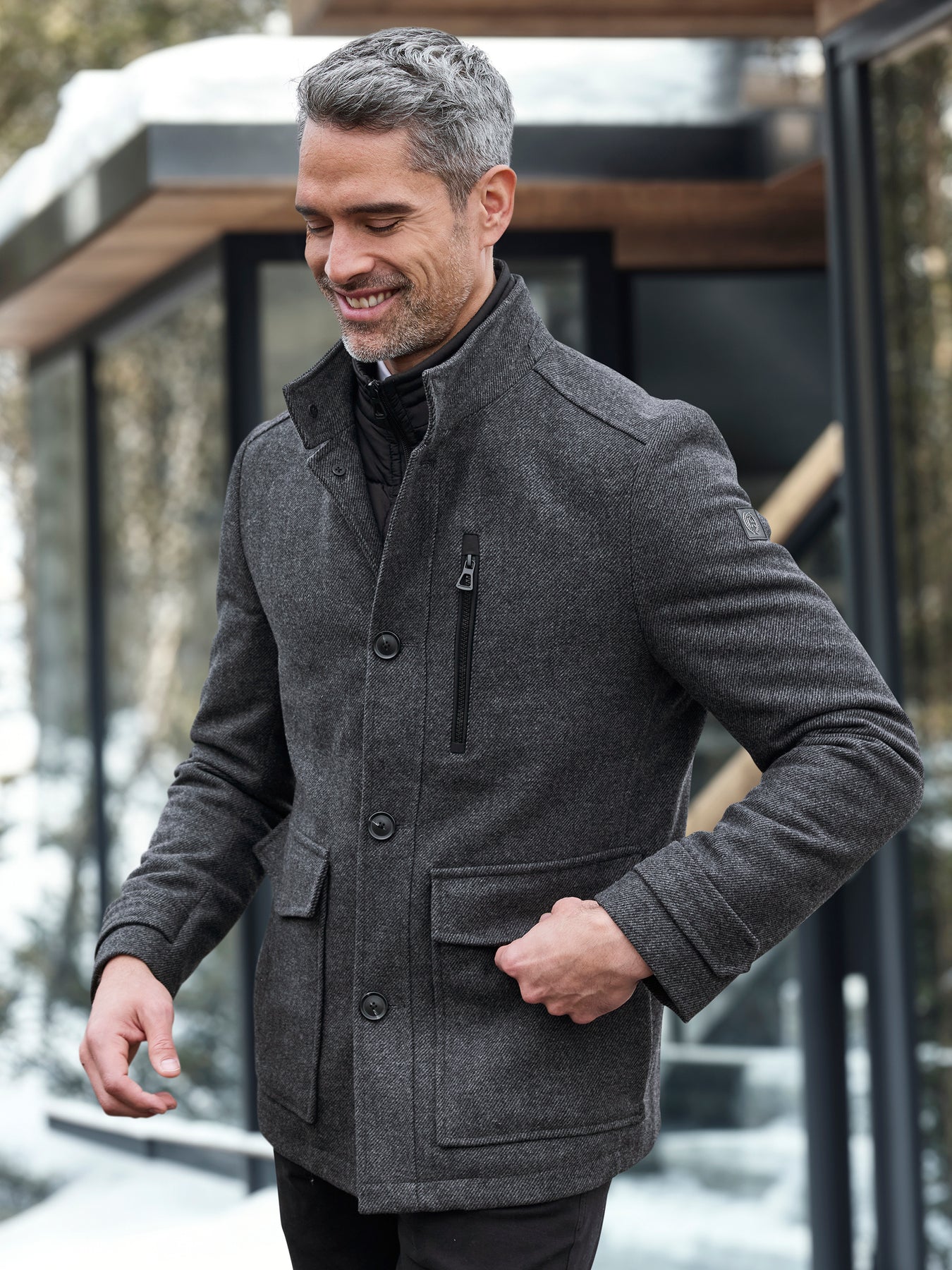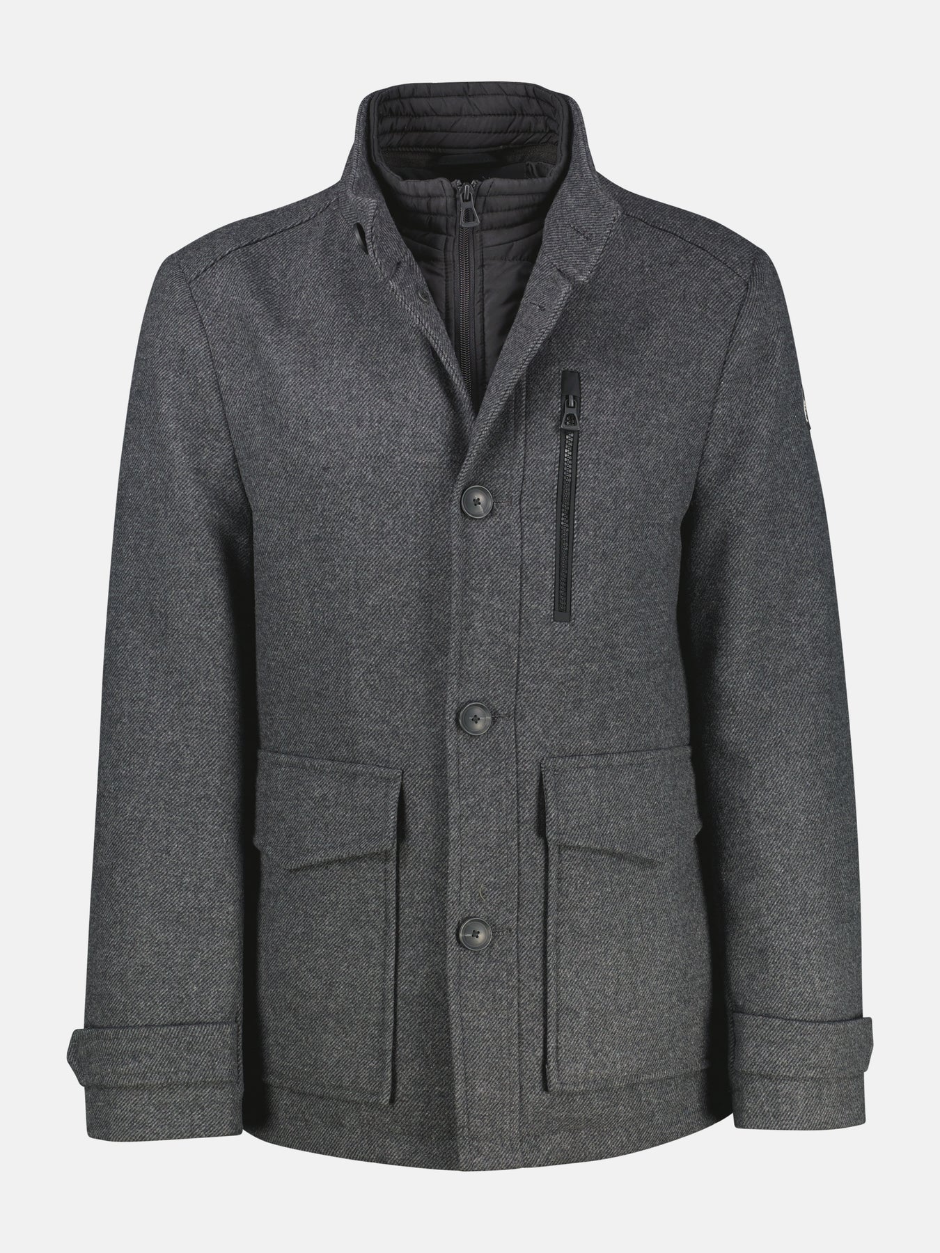 This fashionable men's jacket from LERROS combines timeless elegance with practical versatility. The elegant wool look lends it a high-quality feel, while the removable vest insert with a ribbed collar provides additional warmth, perfect for changeable temperatures. A stylish and practical highlight is the zippered chest pocket. Whether for business or leisure, this coat is an ideal companion for cool days.Pflege: