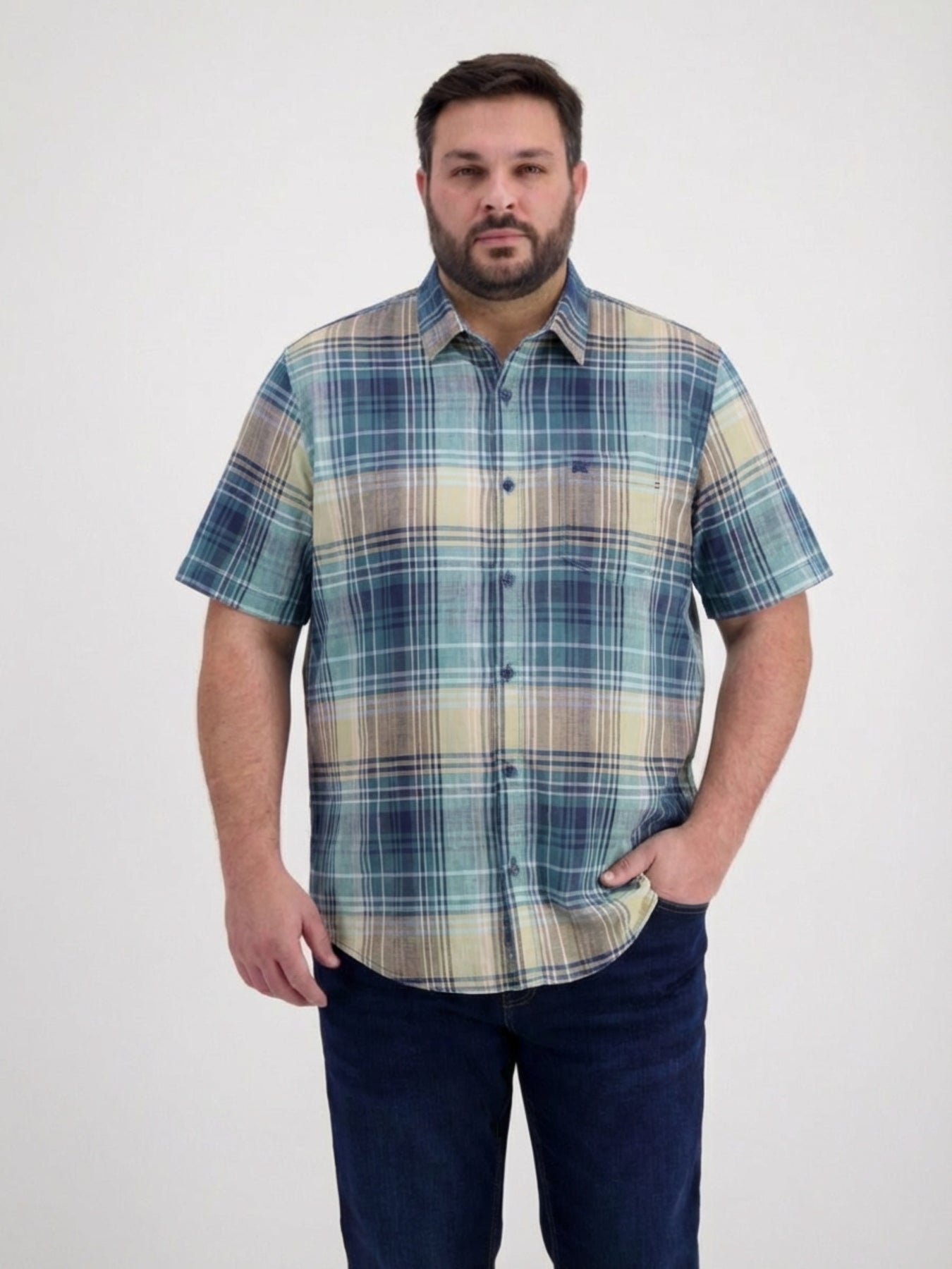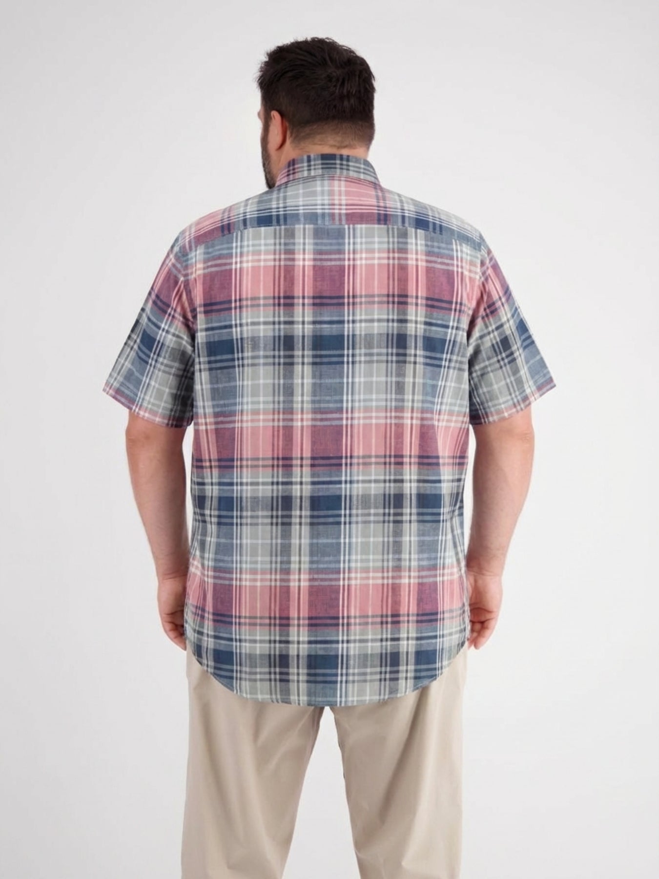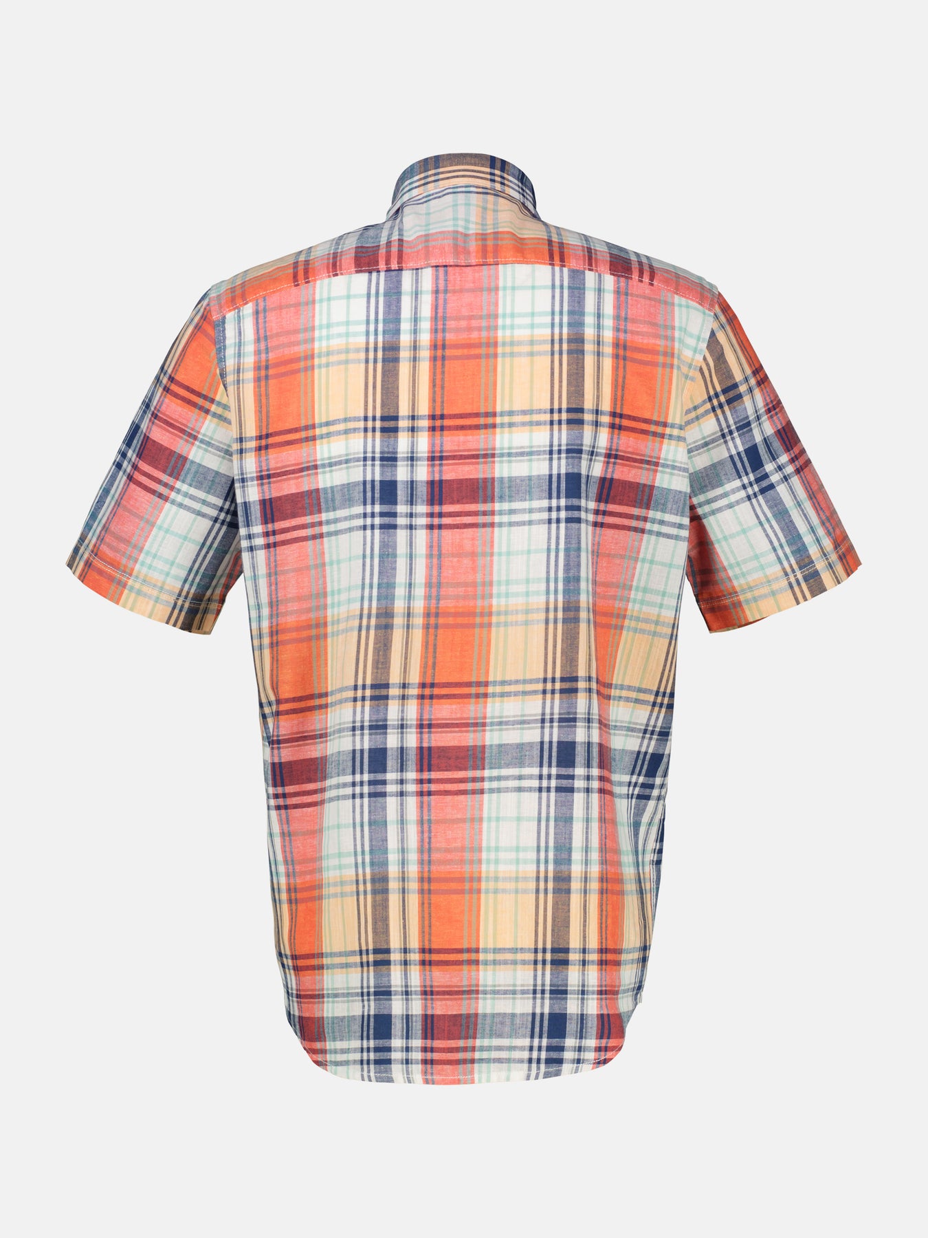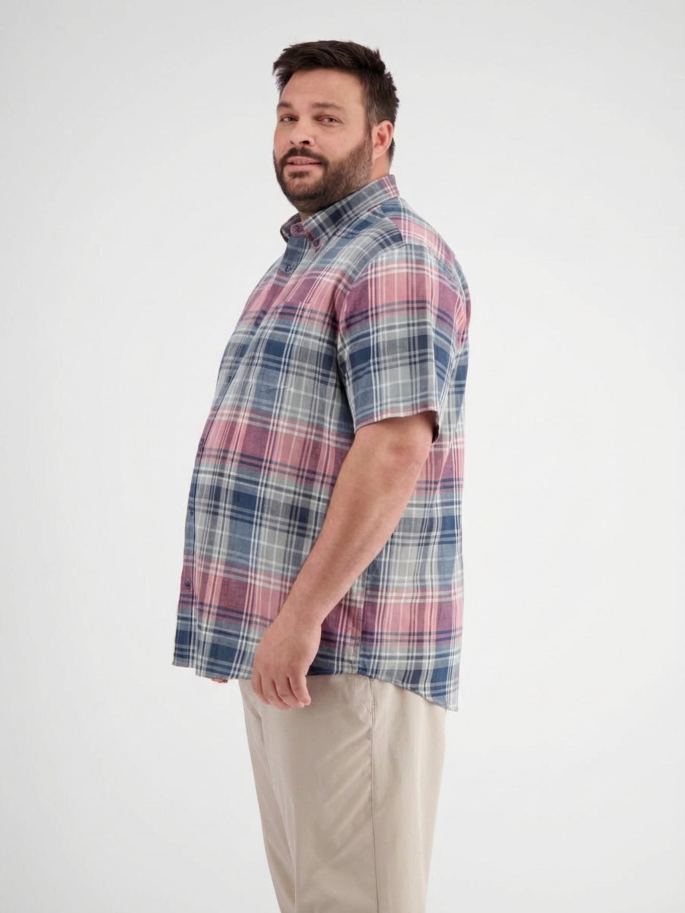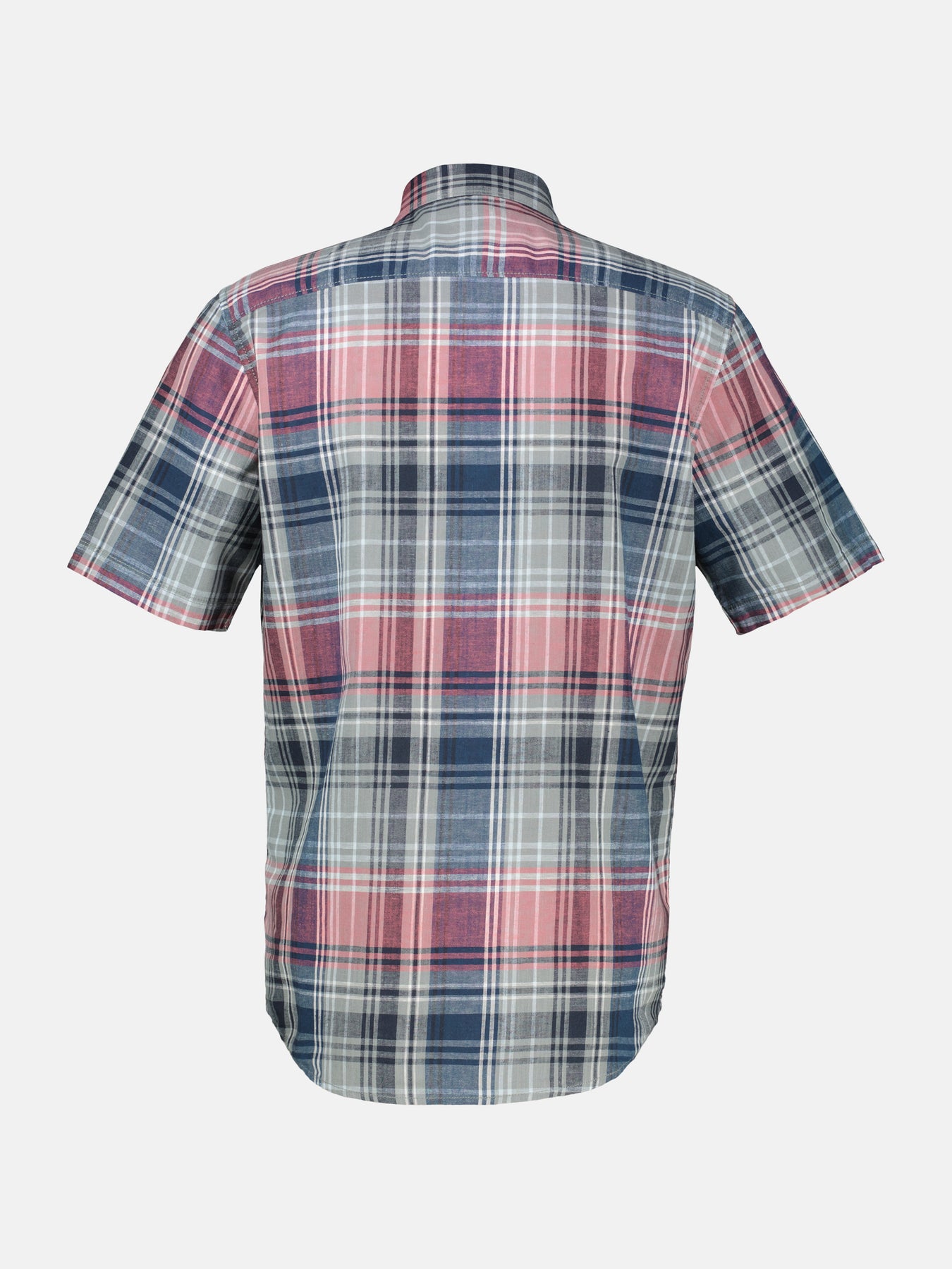 Checked short-sleeved shirt in plus sizes, made from cotton and linen. This checked LERROS short-sleeved shirt, available in sizes 3XL to 6XL, features fresh colors that are ideal for spring and summer wardrobes. The lightweight men's short-sleeved shirt feels comfortable against the skin, while the Kent collar and the precisely embroidered LERROS logo on the chest underscore the high-quality craftsmanship. The chest pocket completes this LERROS short-sleeved shirt, perfect for leisure time and relaxed evenings on vacation.Care: