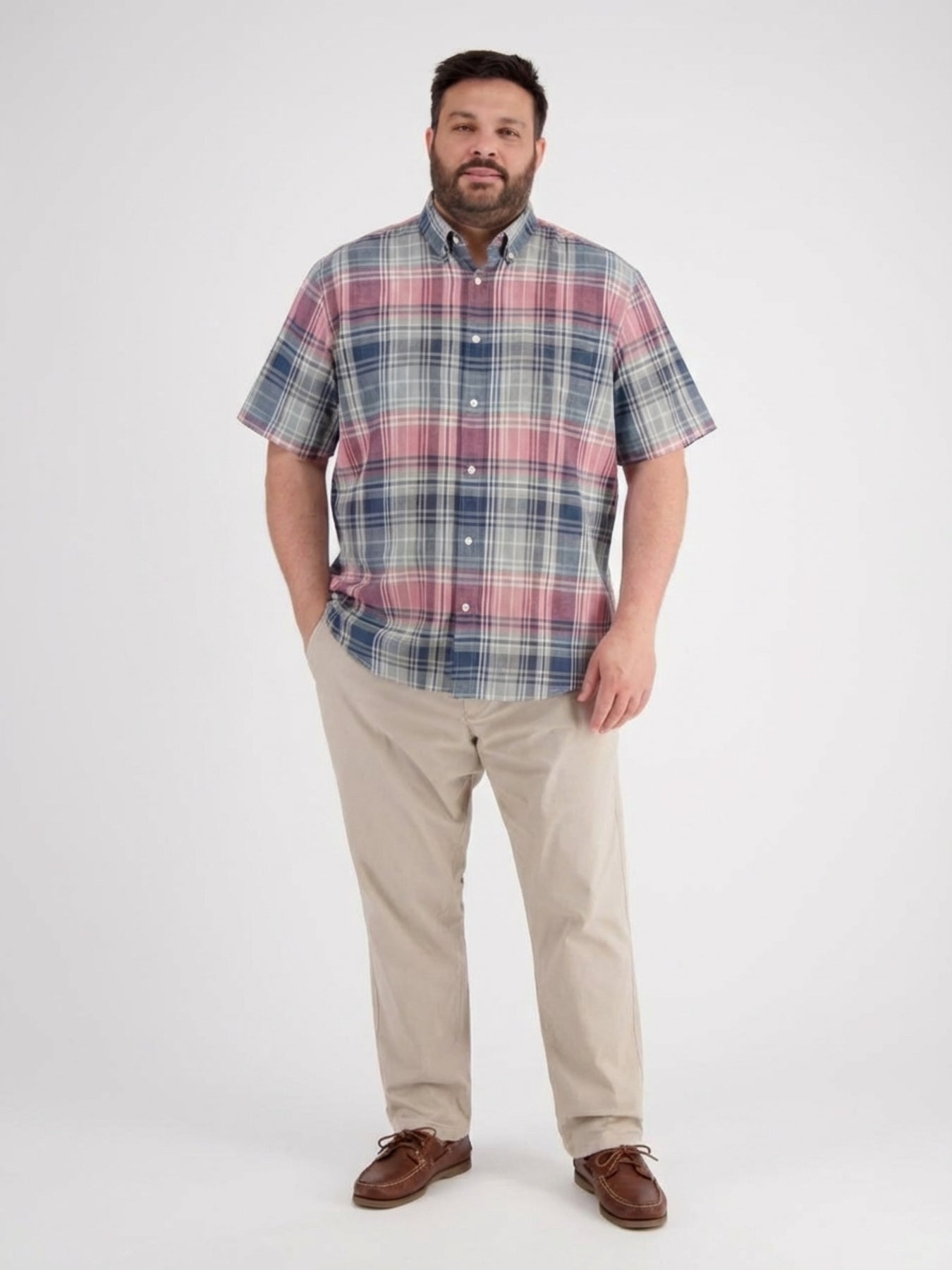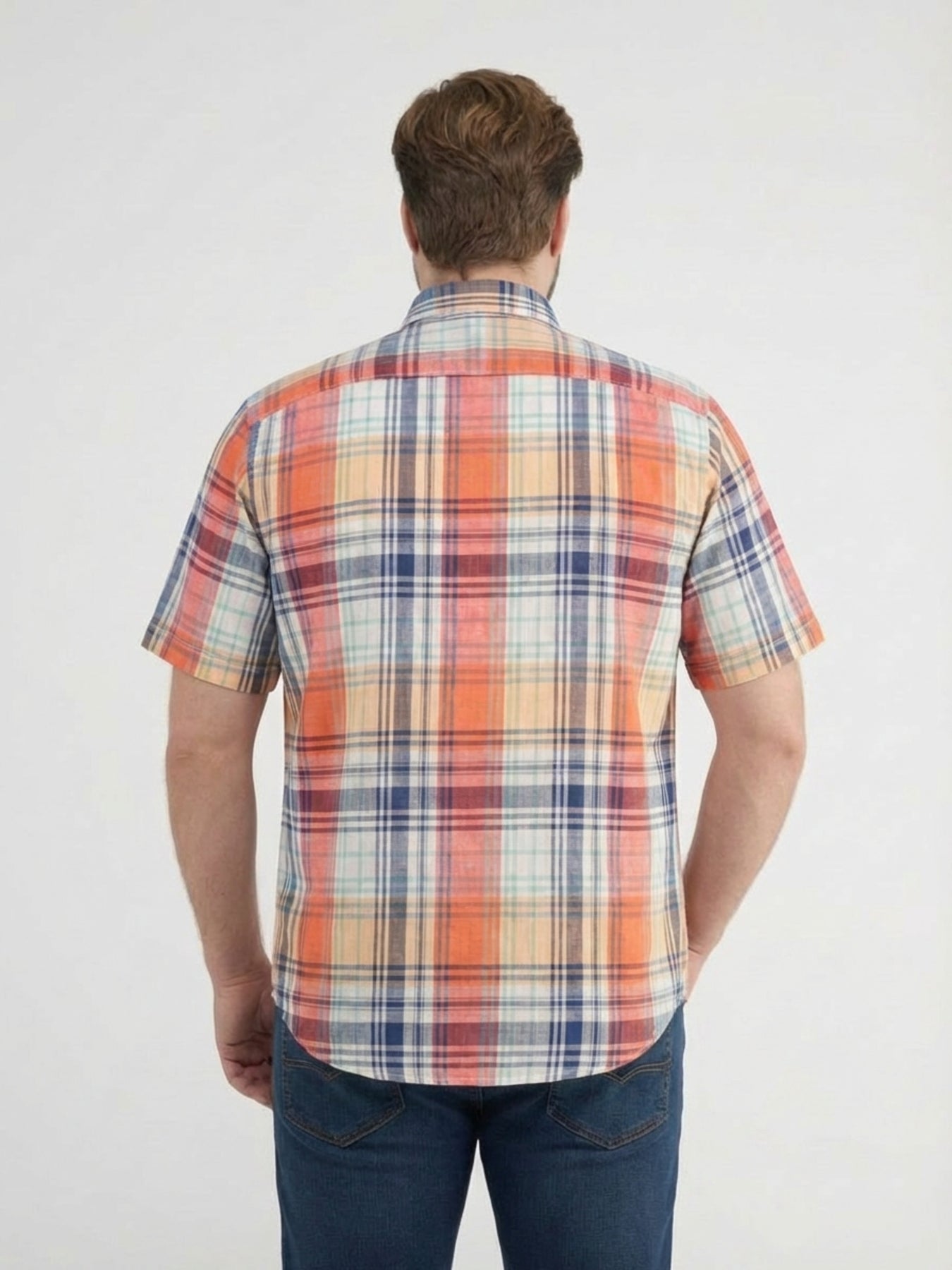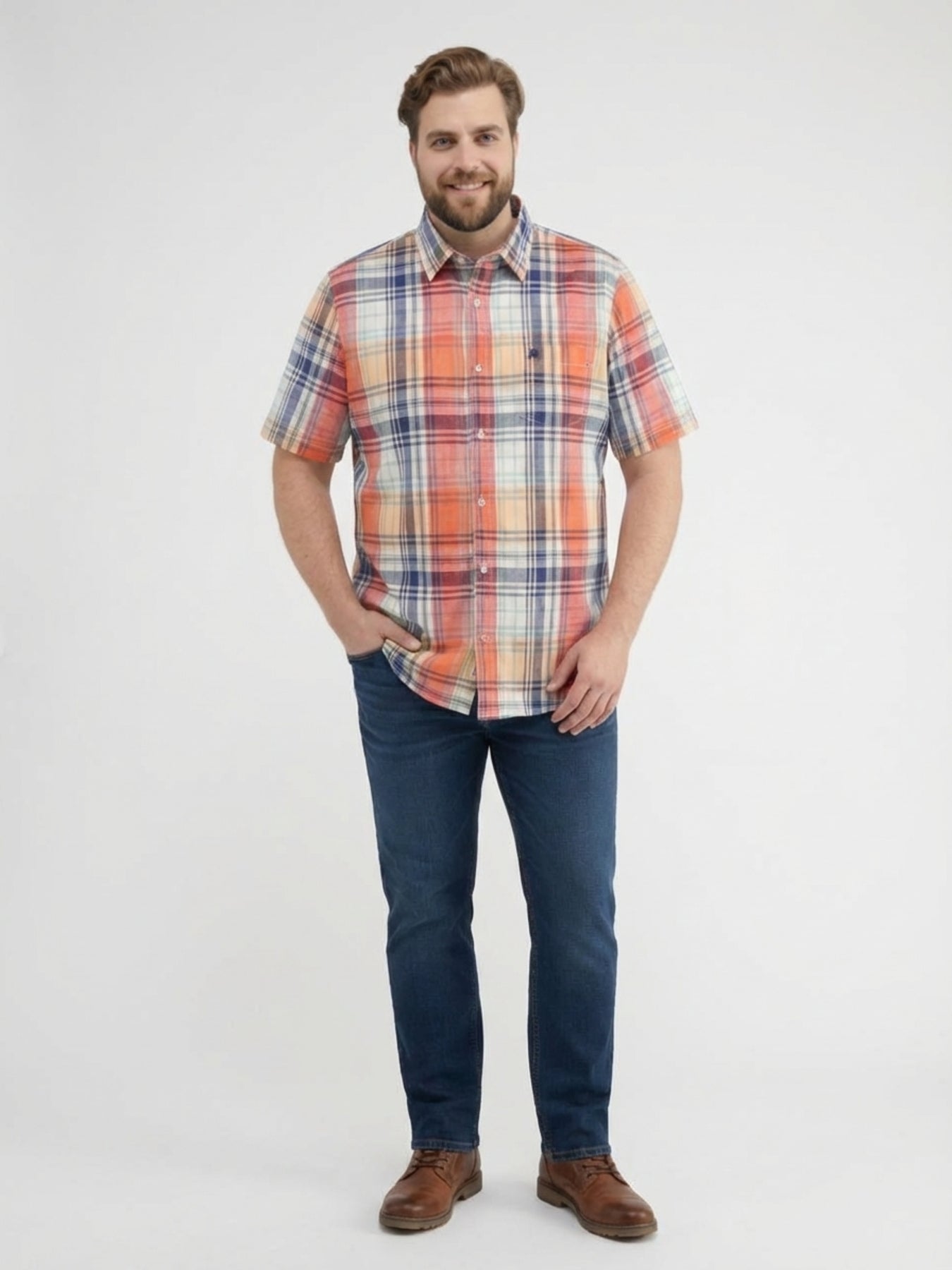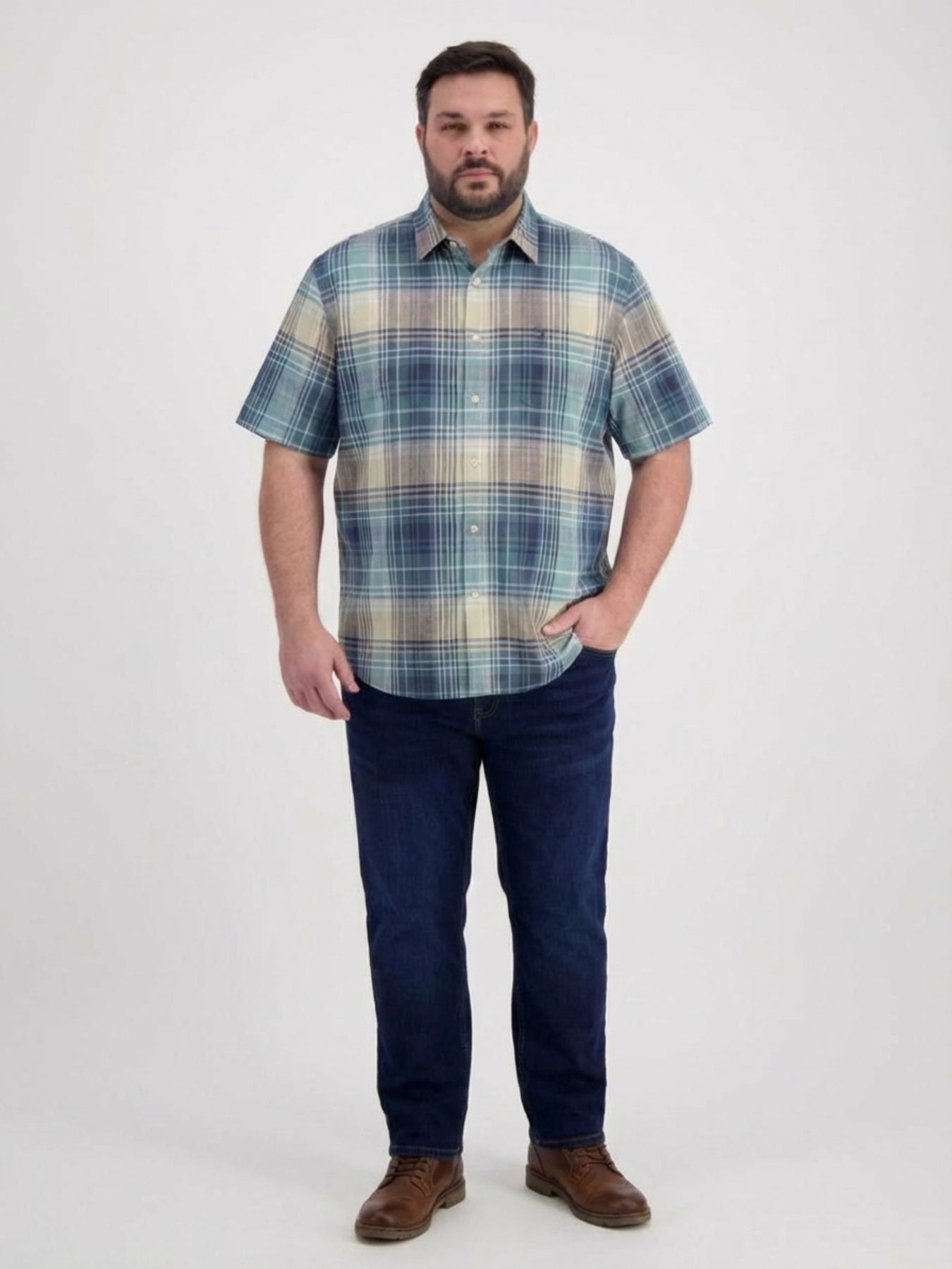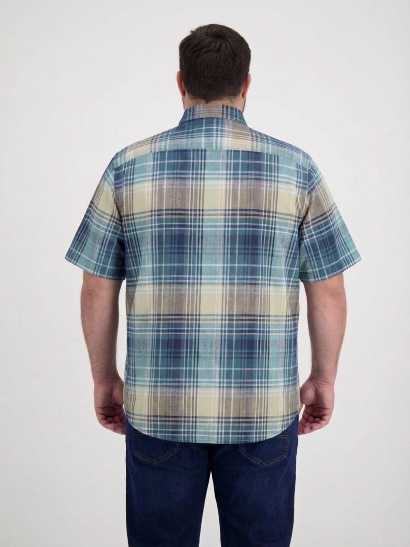 Checked short-sleeved shirt in plus sizes, made from cotton and linen. This checked LERROS short-sleeved shirt, available in sizes 3XL to 6XL, features fresh colors that are ideal for spring and summer wardrobes. The lightweight men's short-sleeved shirt feels comfortable against the skin, while the Kent collar and the precisely embroidered LERROS logo on the chest underscore the high-quality craftsmanship. The chest pocket completes this LERROS short-sleeved shirt, perfect for leisure time and relaxed evenings on vacation.Care: