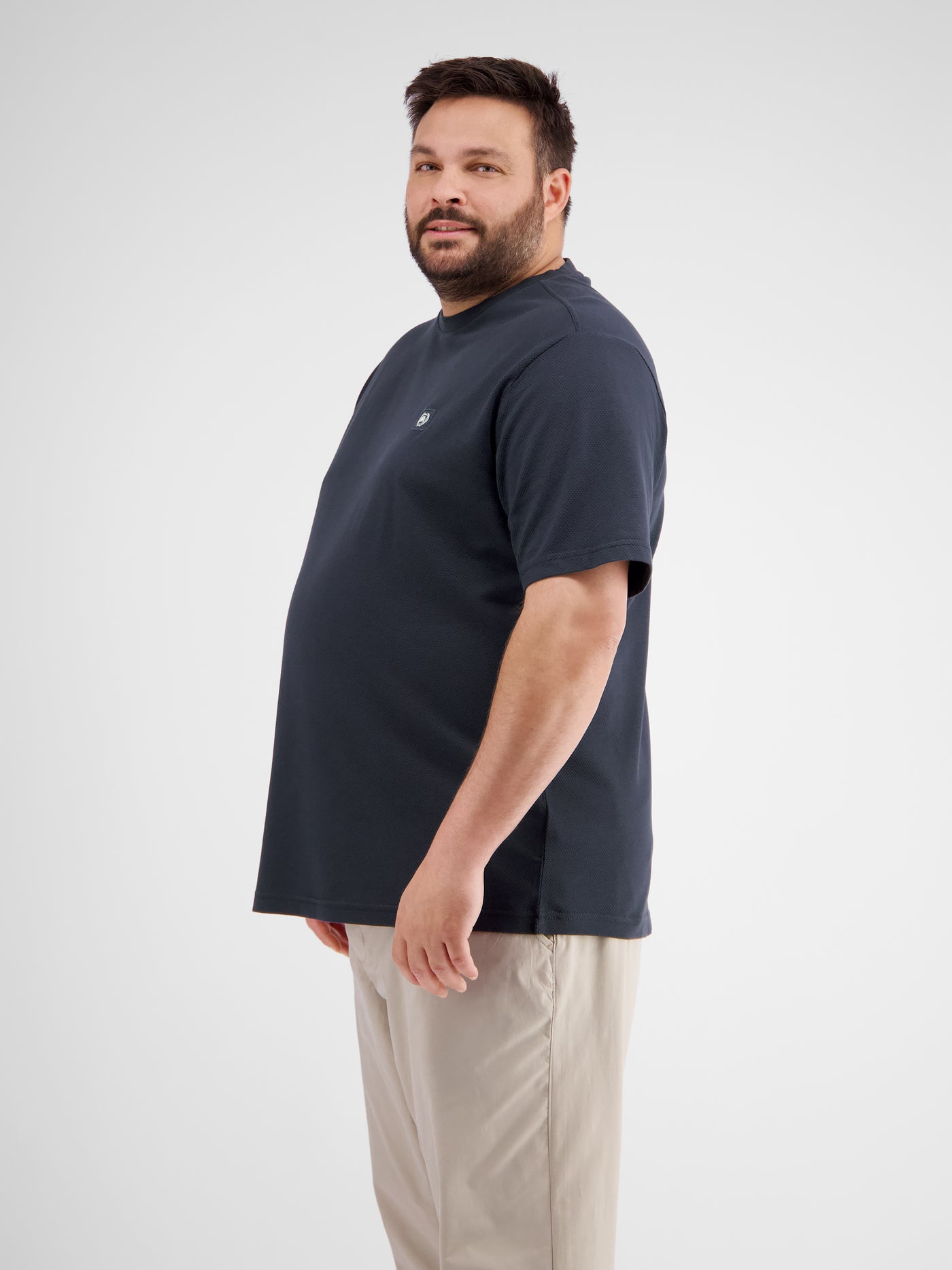 The LERROS T-shirt is sporty and classic at the same time. The structural quality in waffle design and the straight cut make this men's T-shirt - here in large sizes from 3XL to 6XL - a comfortable and casual STYLE FOR EVERY DAY.Care: