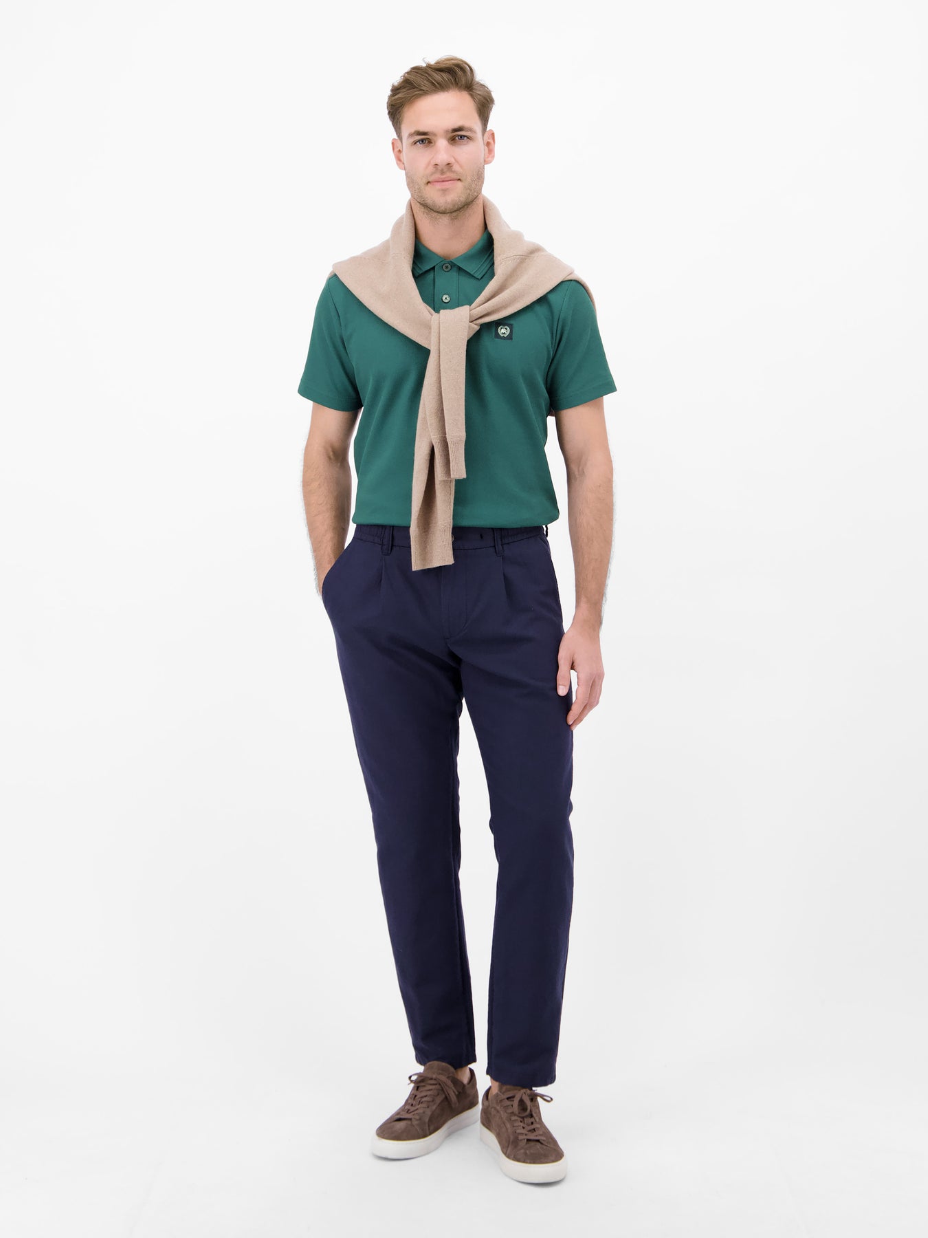 Polo shirt with a waffle knit made from 100% cotton. The LERROS polo shirt impresses with its timeless design and waffle knit, which, thanks to the pure cotton, guarantees exceptional comfort. A flat-knit collar and flexible cuffs ensure a comfortable fit. A LERROS badge on the chest adds a subtle touch. This LERROS polo can be combined with jeans, chinos, or Bermuda shorts, making it ideal for warm days and a polished, confident look.