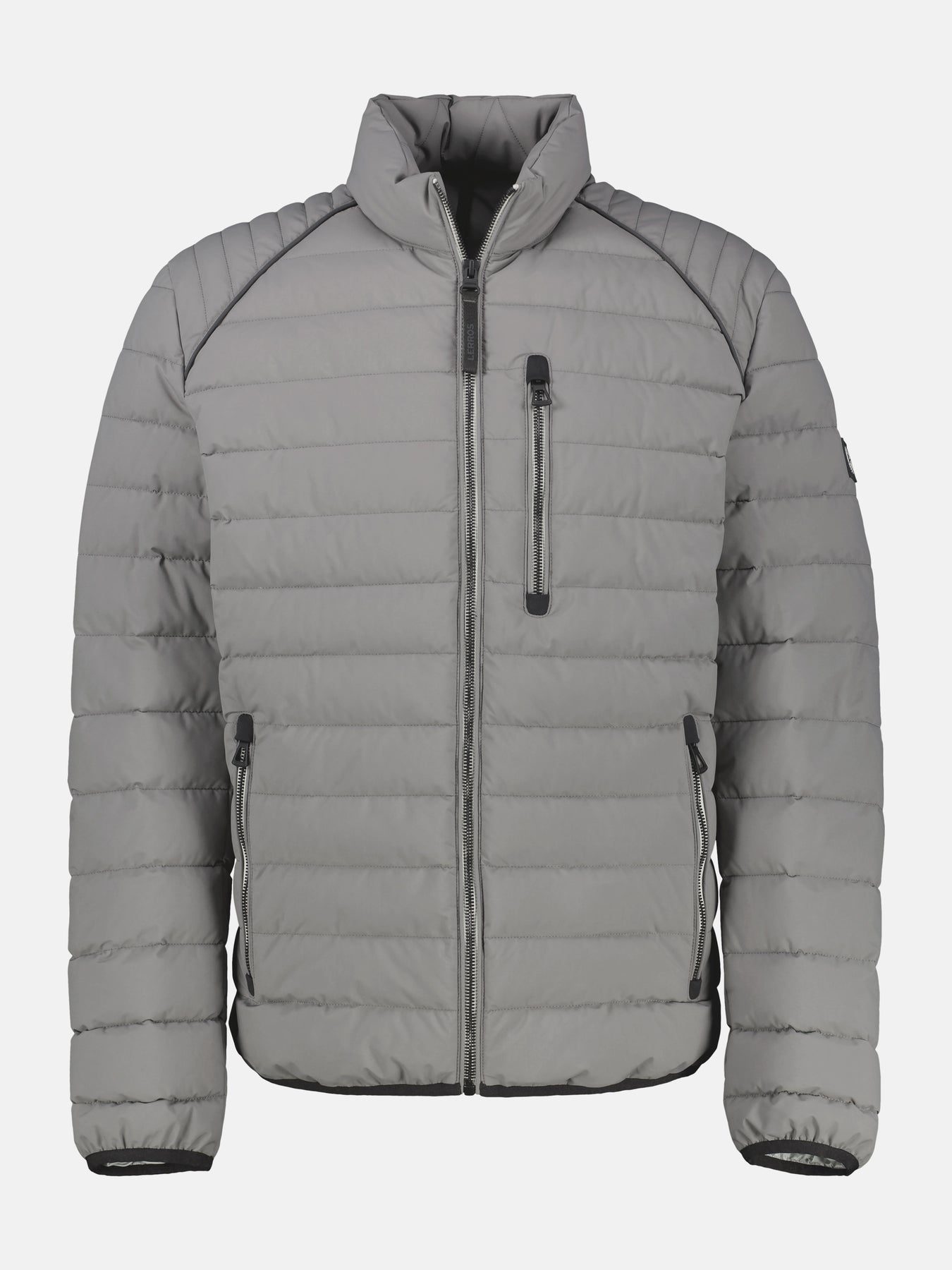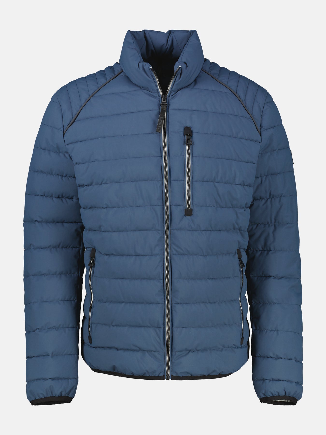 Men's blouson-style quilted jacket, designed as a lightweight outdoor jacket. Wind- and water-resistant, and breathable, it features three zippered pockets, including two side pockets and one chest pocket. This quilted, functional jacket with stretch offers space for keys, a smartphone, and more. The stand-up collar with decorative stitching and elastic, rubberized cuffs ensure a sophisticated look and maximum comfort. An outdoor jacket from LERROS with a sporty touch.Pflege: