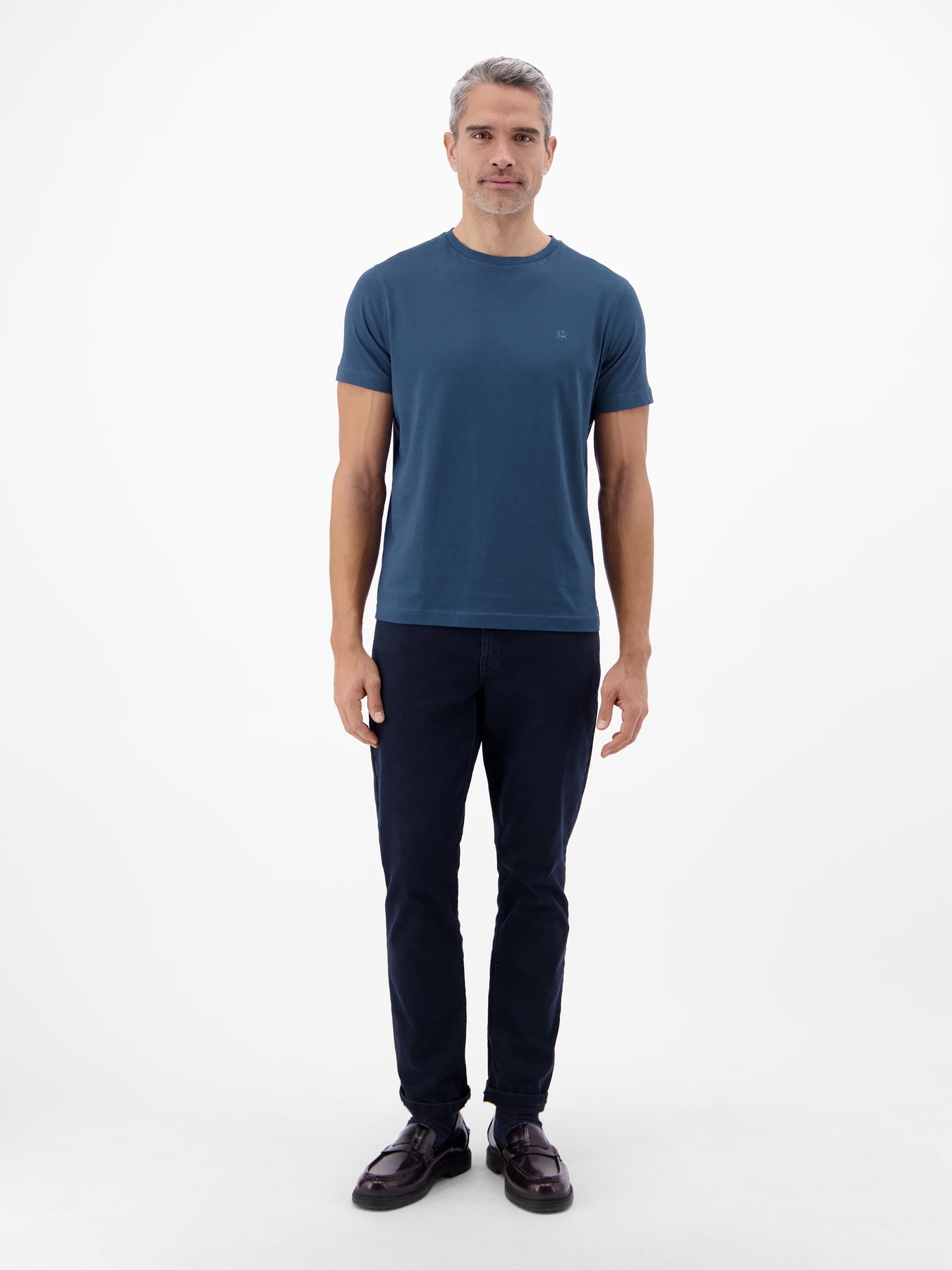 Round-neck T-shirt made of 100% cotton. This jersey-quality T-shirt with half-sleeves is a must-have for every wardrobe. The shirt can be worn solo or layered under a sweatshirt. The cuffs at the neckline are particularly flexible for maximum comfort. The color selection for this shirt leaves nothing to be desired. It's ideal for combining the T-shirt with a variety of outfits.
