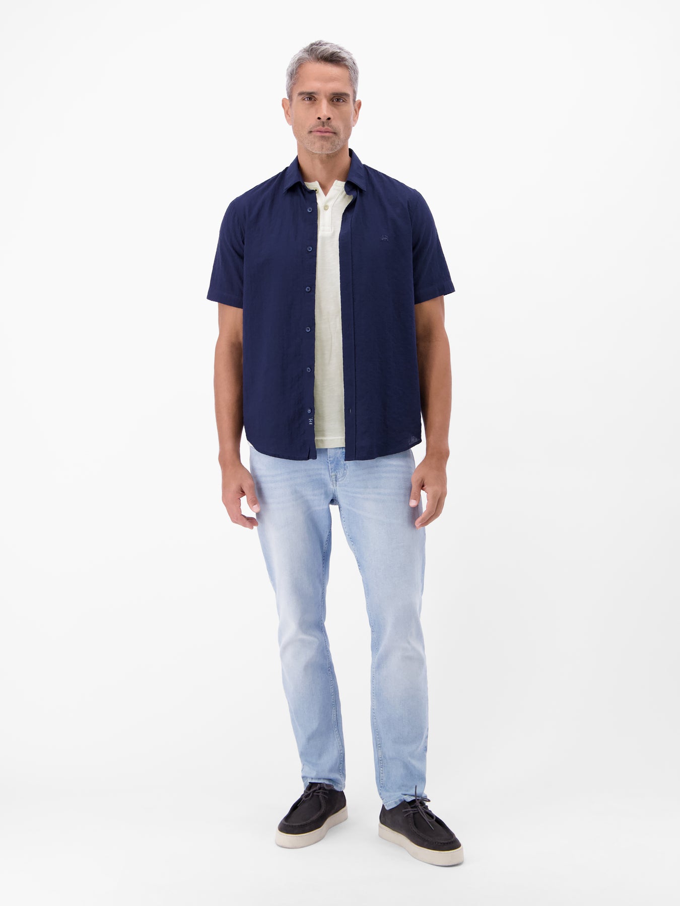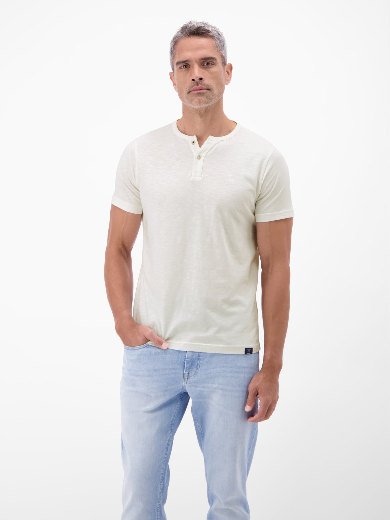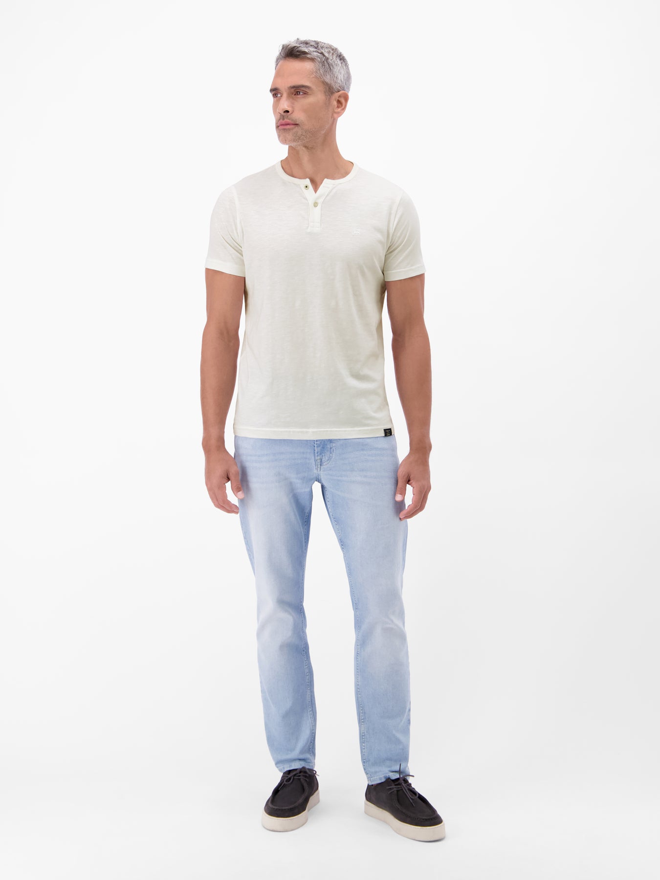 Round neck T-shirt with button placket made from 100% cotton. This solid-color LERROS T-shirt is exceptionally comfortable and a versatile companion for warm days. The soft, skin-friendly collar and practical button placket ensure freedom of movement around the neck. A LERROS logo stitching completes the casual look. Whether worn on its own or combined with a blazer, this T-shirt is an essential wardrobe must-have.Care: