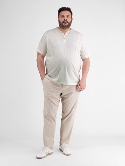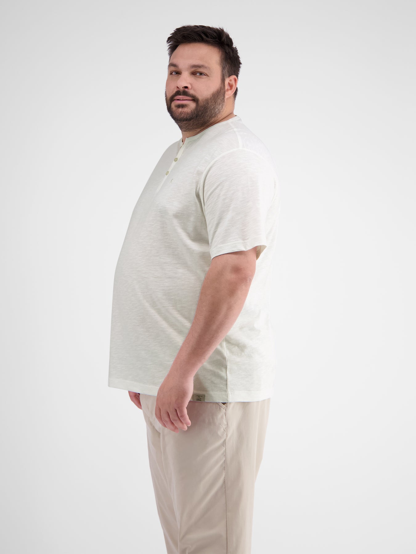 LERROS Henley shirt with short sleeves! The serafino collar with button placket and the soft, structured cotton quality characterize this style FOR EVERY DAY. The logo embroidery on the chest skilfully rounds off the plain-colored must-have classic - here in plus sizes.Care: