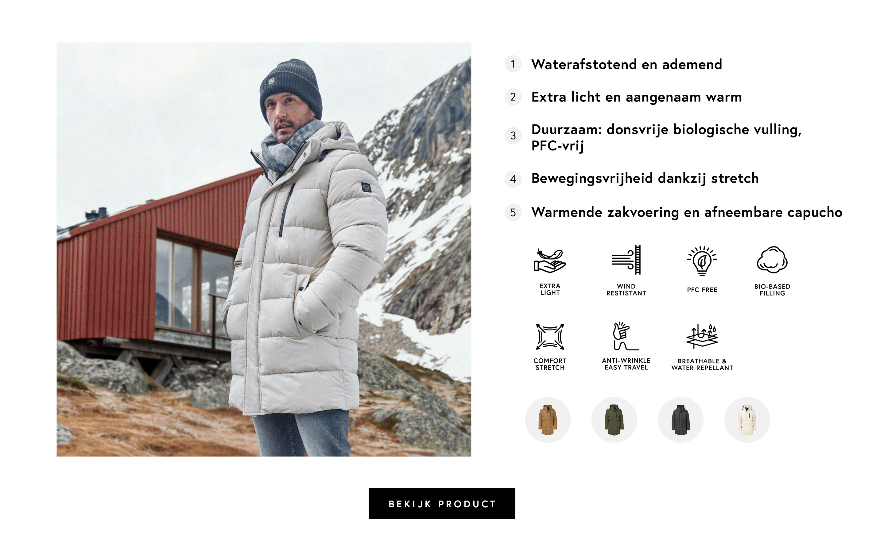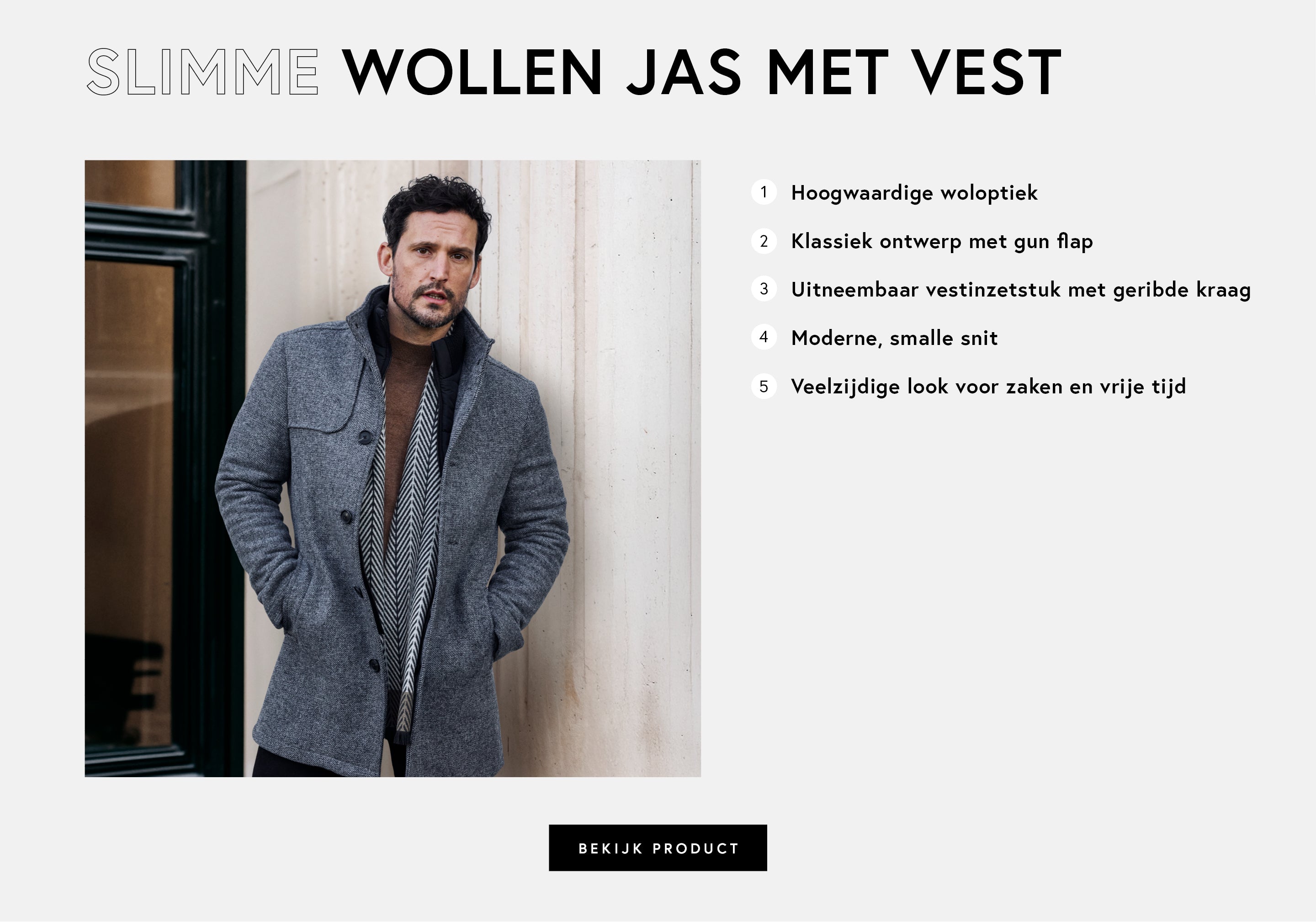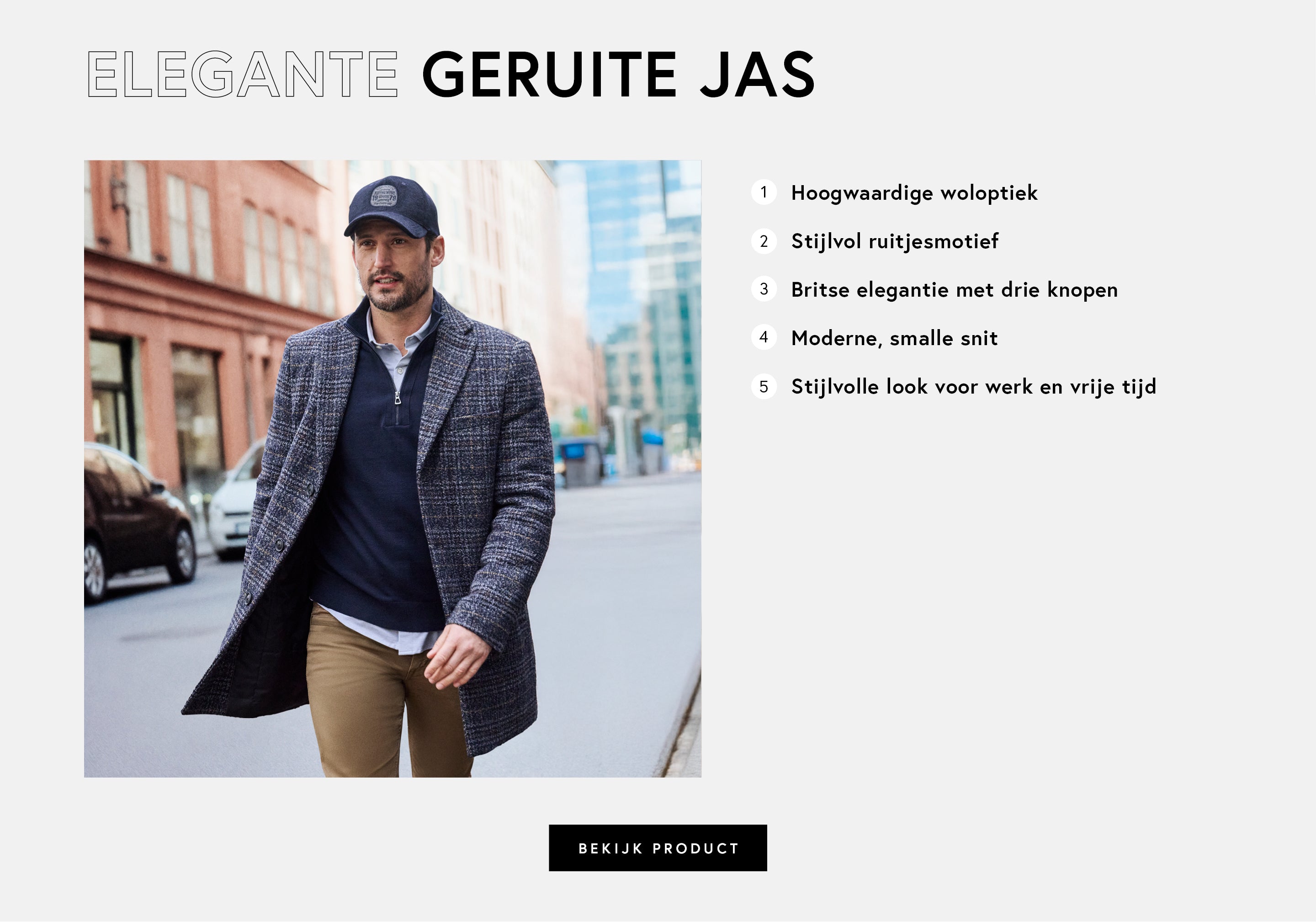 Of het nu voor dagelijks gebruik, zakelijk of outdoor is – hier vind je de juiste jas voor elke gelegenheid.
