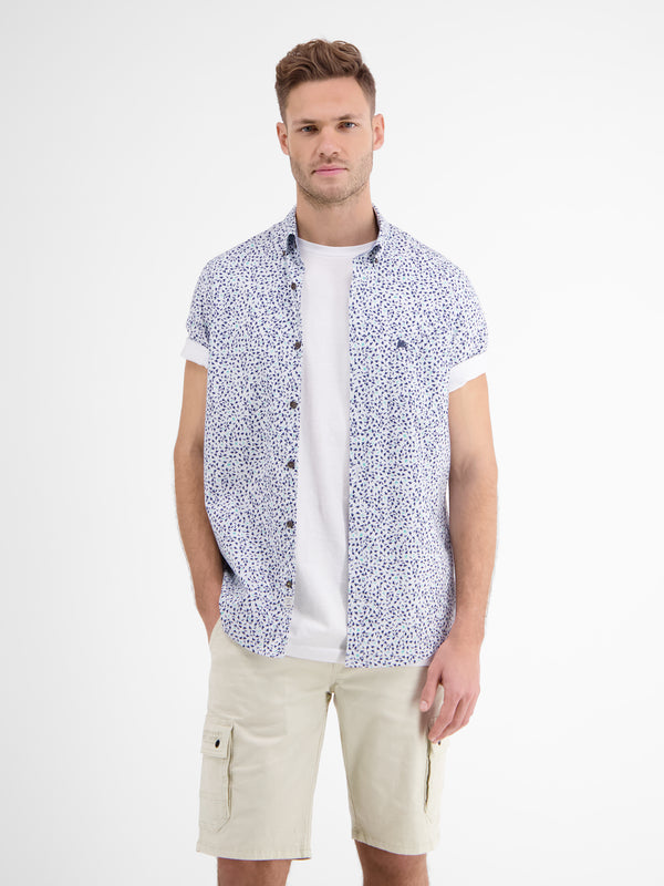 LERROS overhemd met korte mouwen in zachte stretchkatoenkwaliteit met all-over print, button-down kraag en borstzak. Een casual, zomerse overhemdstijl *voor elke dag* om je goed te voelen.