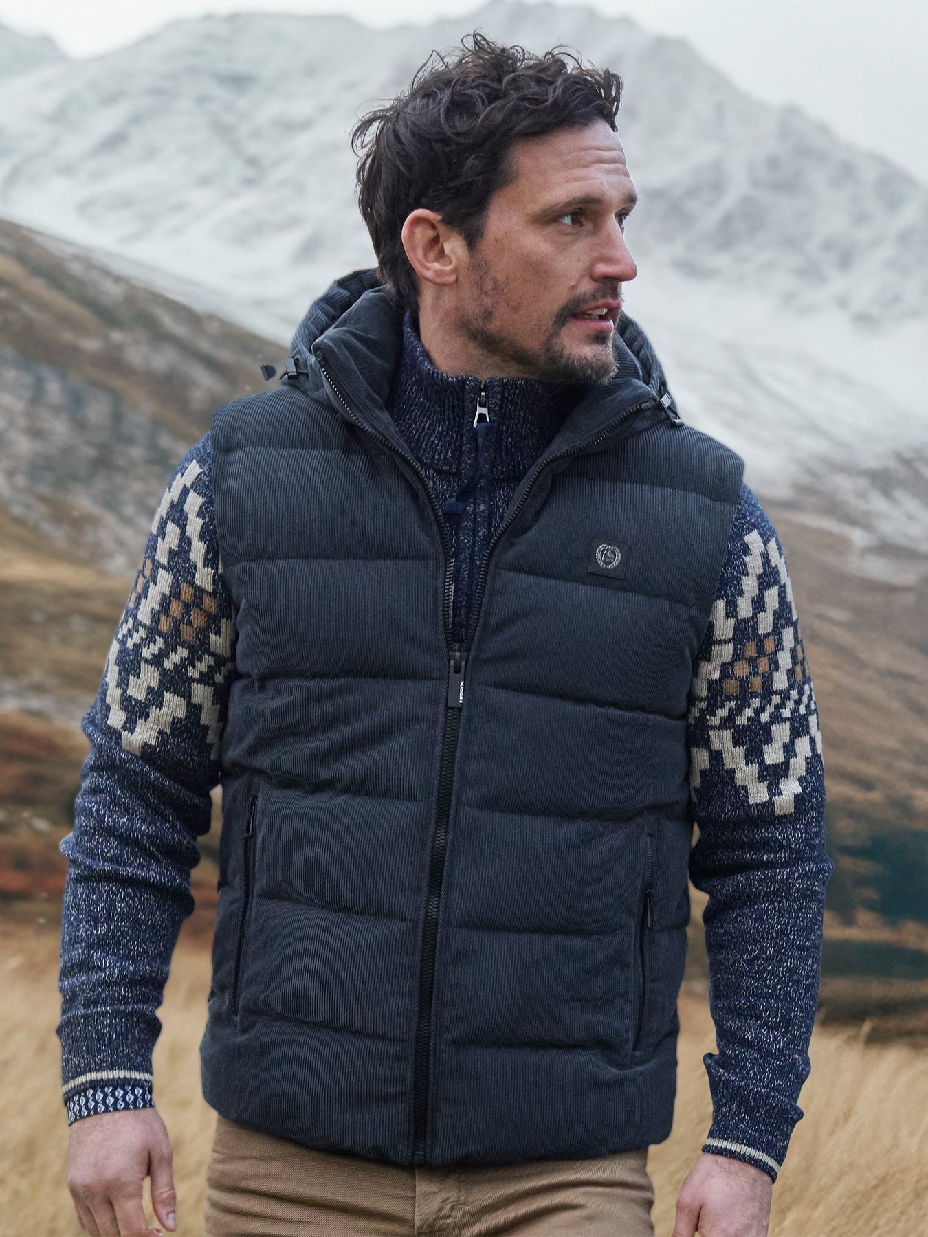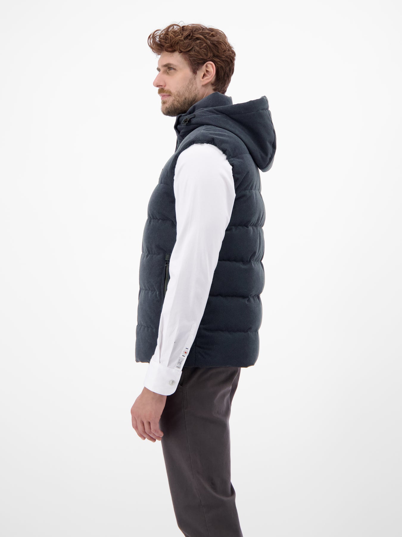 Dit hoogwaardige gewatteerde herenvest in corduroylook is niet alleen stijlvol, maar biedt ook praktische eigenschappen die u bij alle weersomstandigheden ondersteunen. Het ademend vermogen zorgt voor een comfortabele pasvorm zonder dat u zweet. Dankzij de wind- en waterafstotende eigenschappen blijf je droog en beschermd. De warme voering in de zakken zorgt voor optimaal draagcomfort, net als de grote zakopeningen van dit hoogwaardige LERROS corduroy vest met zijn robuuste look.
