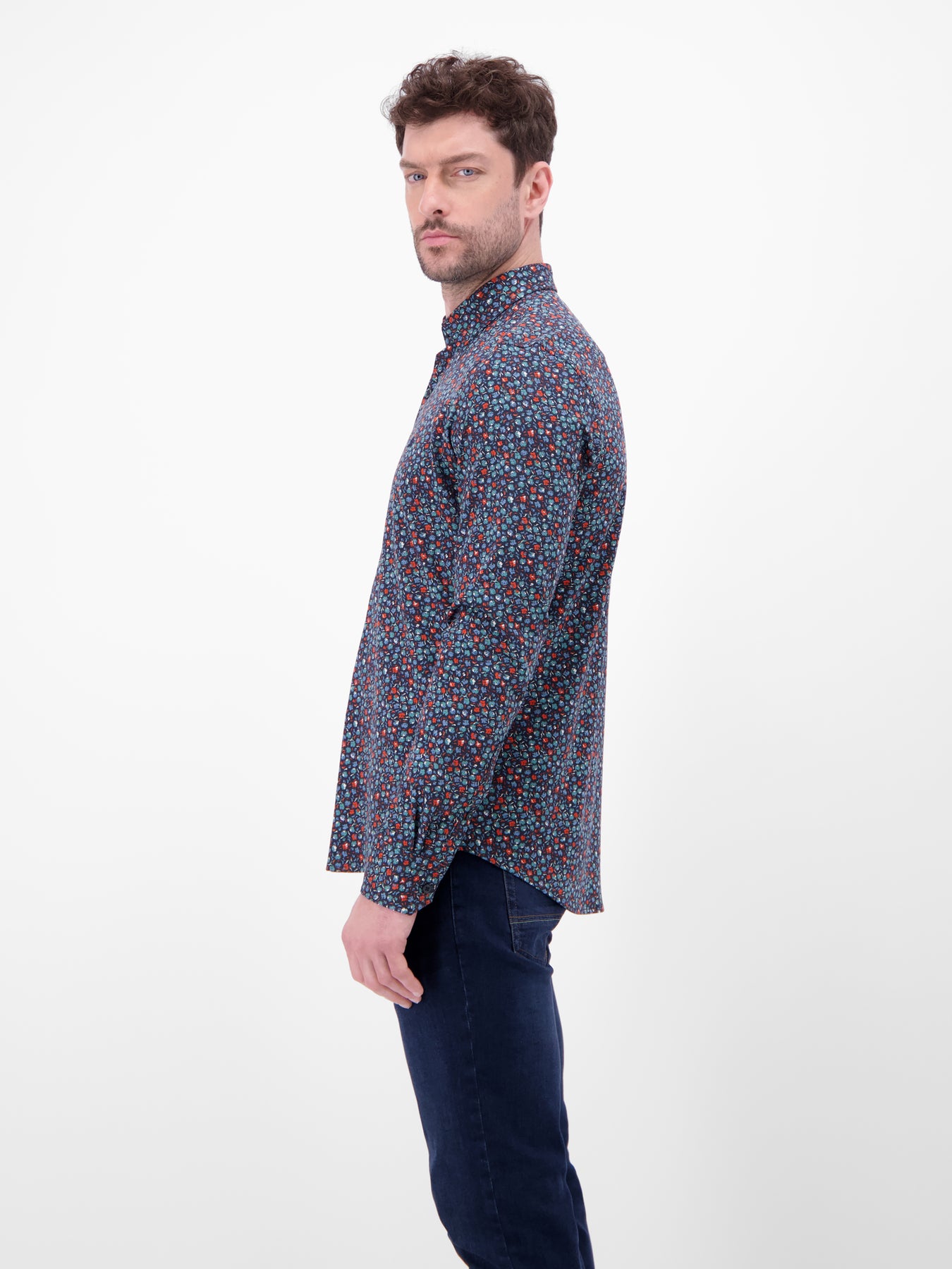 Jersey overhemd met cutaway kraag en all-over print. Dit klassiek ogende overhemd heeft een normale pasvorm en een geborduurd logo op de borst. De praktische manchetten met twee knopen voor een verstelbare manchetbreedte geven dit overhemd met lange mouwen een dynamische look. De 100% katoenen stof van hoogwaardige, robuuste single jersey zorgt voor een comfortabele pasvorm. Zorg: