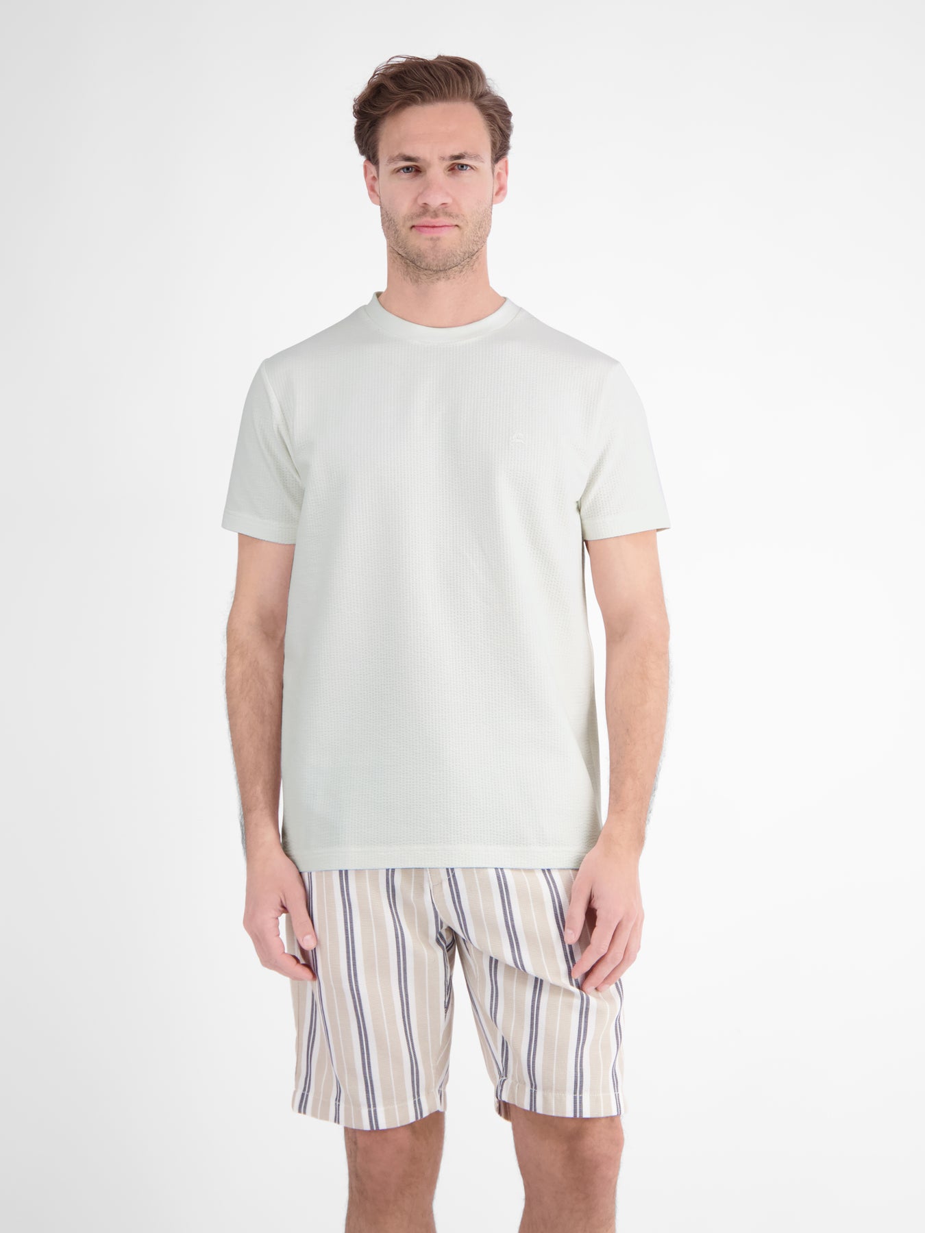 T-shirt van zachte seersucker met comfortabele ronde hals
